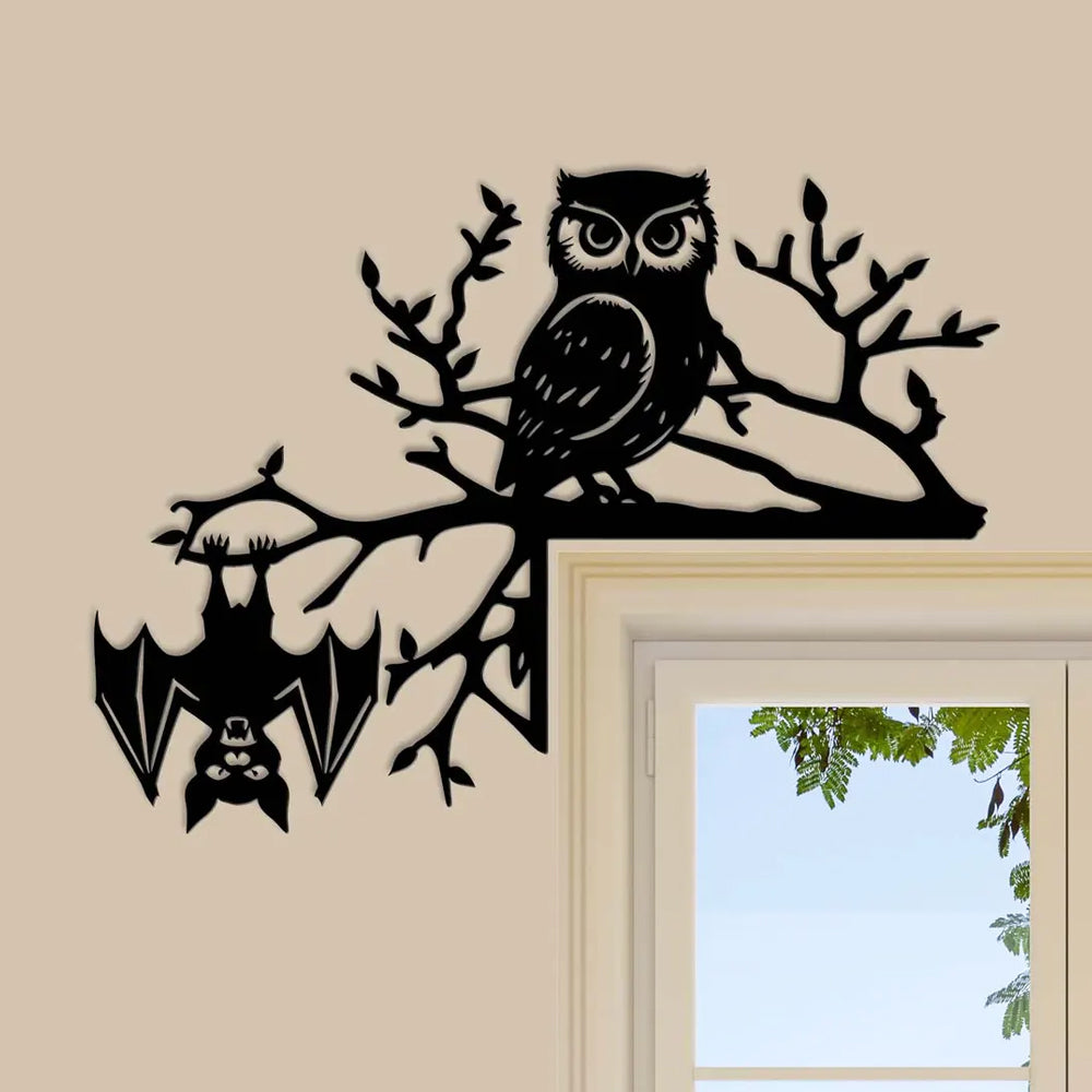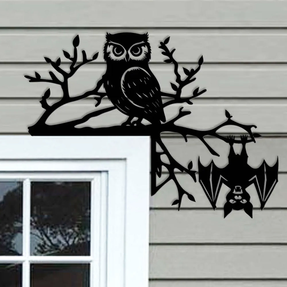 Halloween Owl Bat Metal Door Corner Sign
