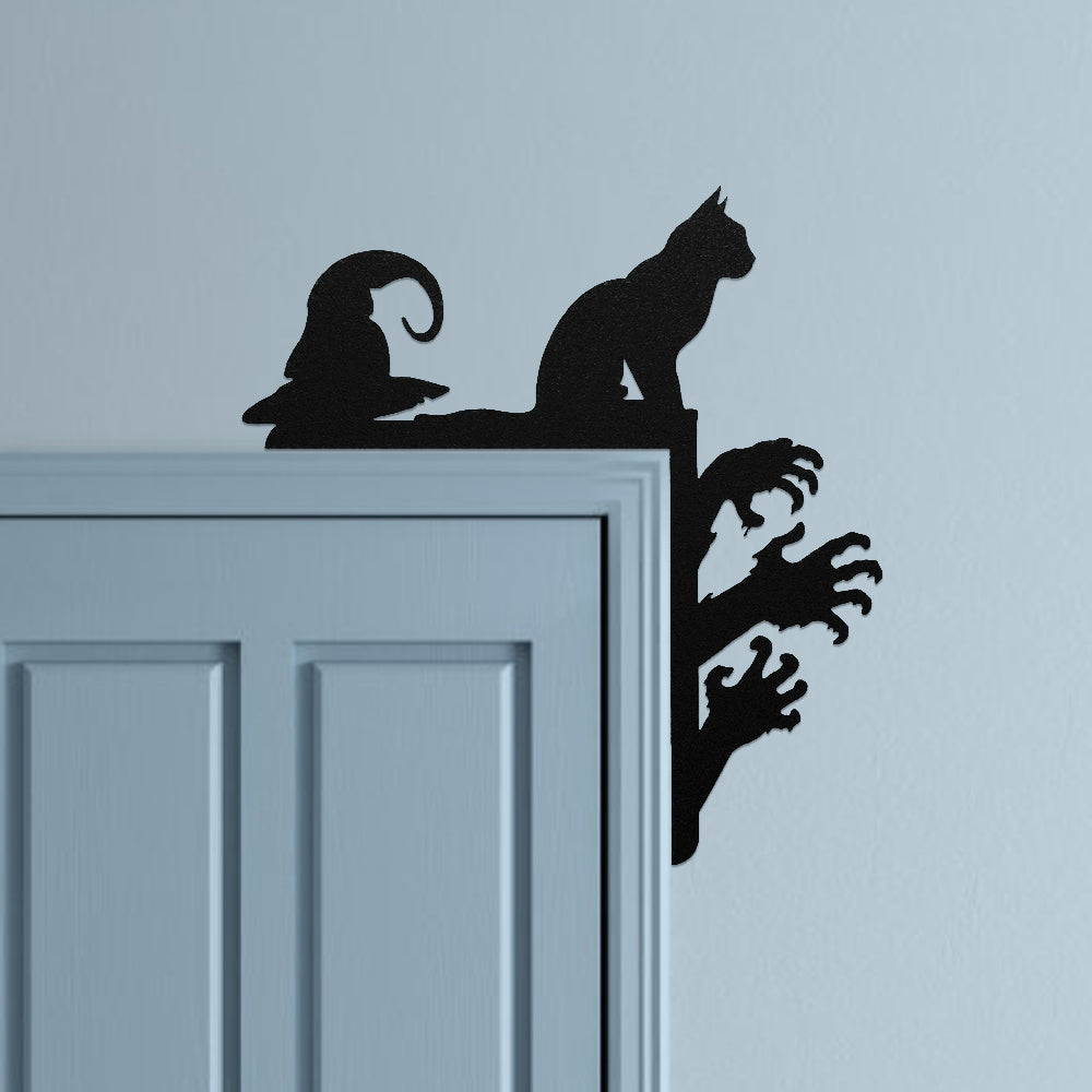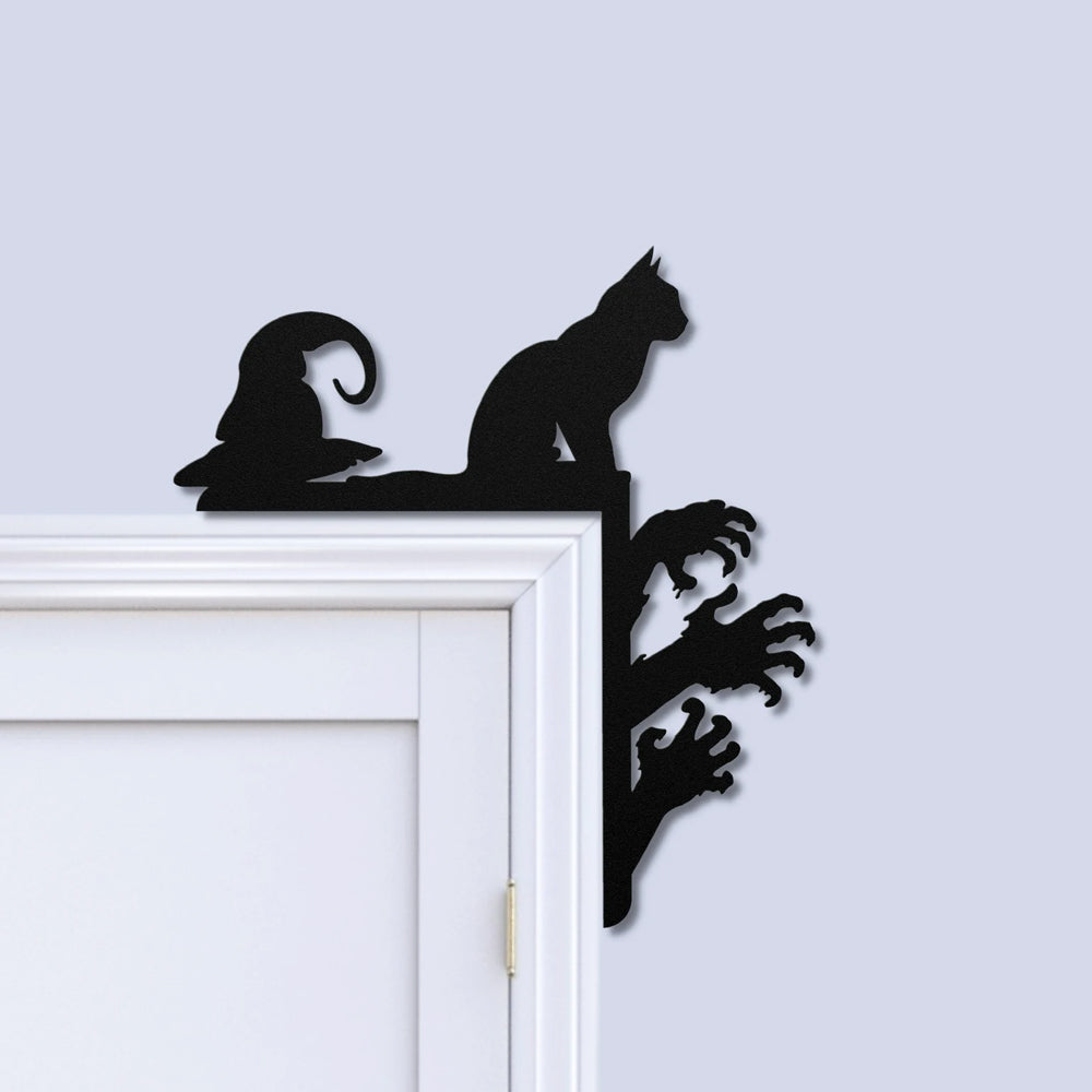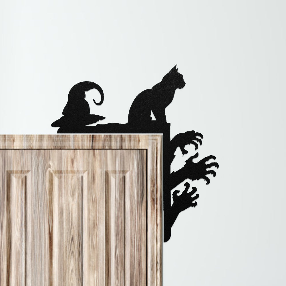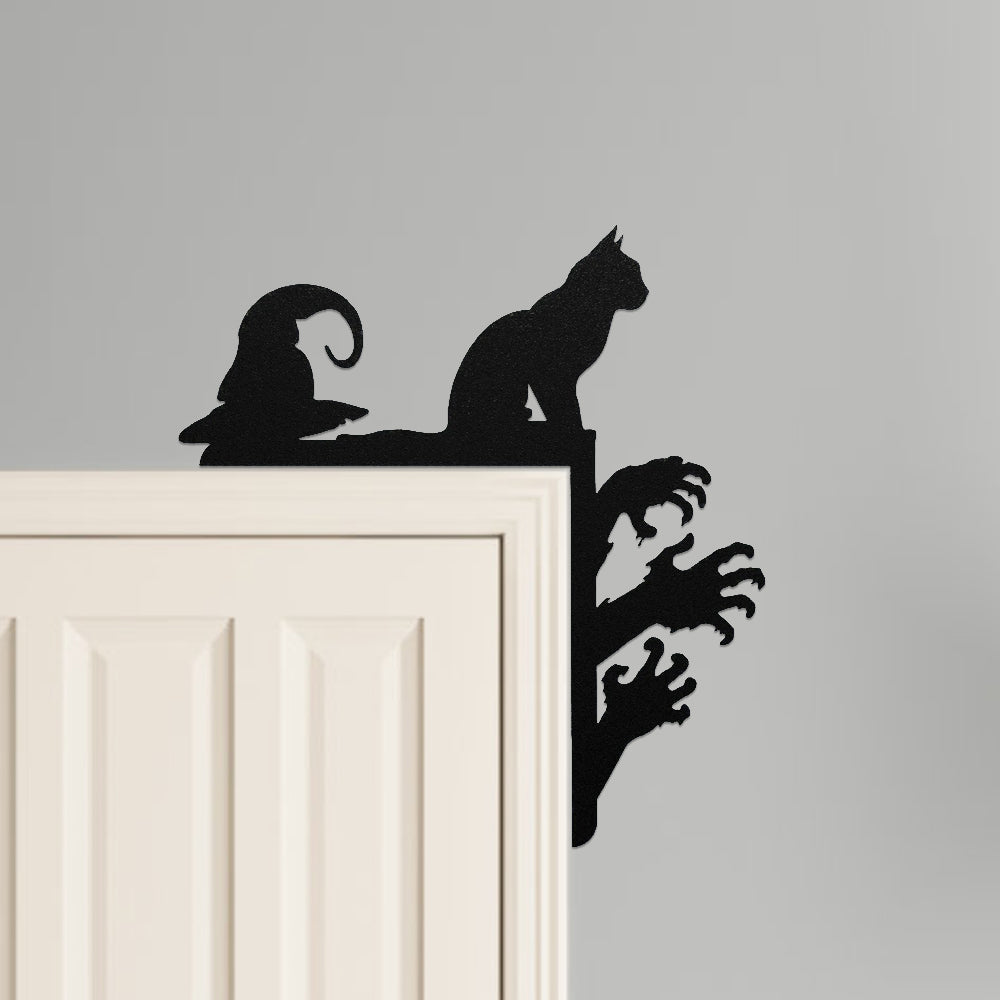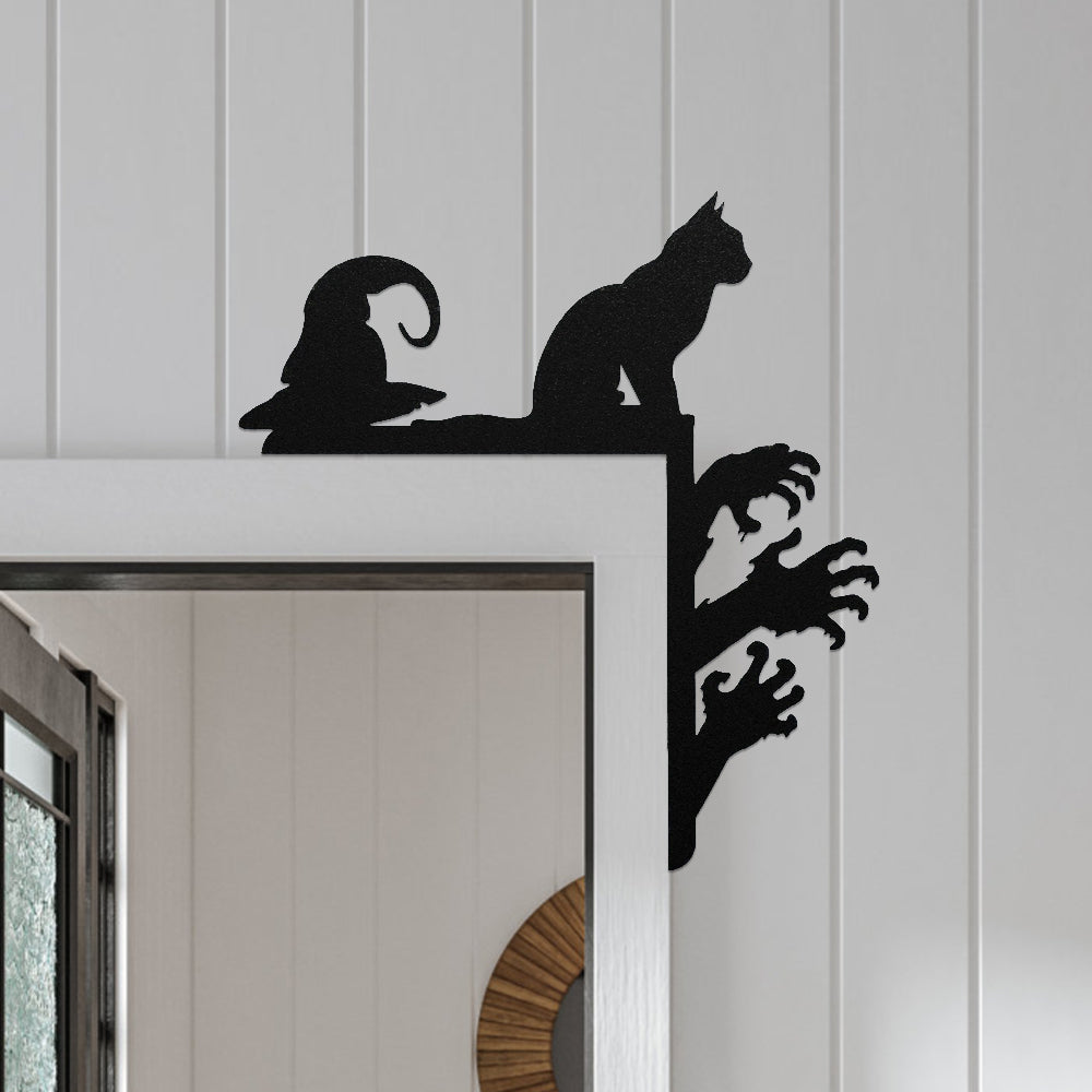 Halloween Personalized Cat and Hat Metal Door Corner Sign