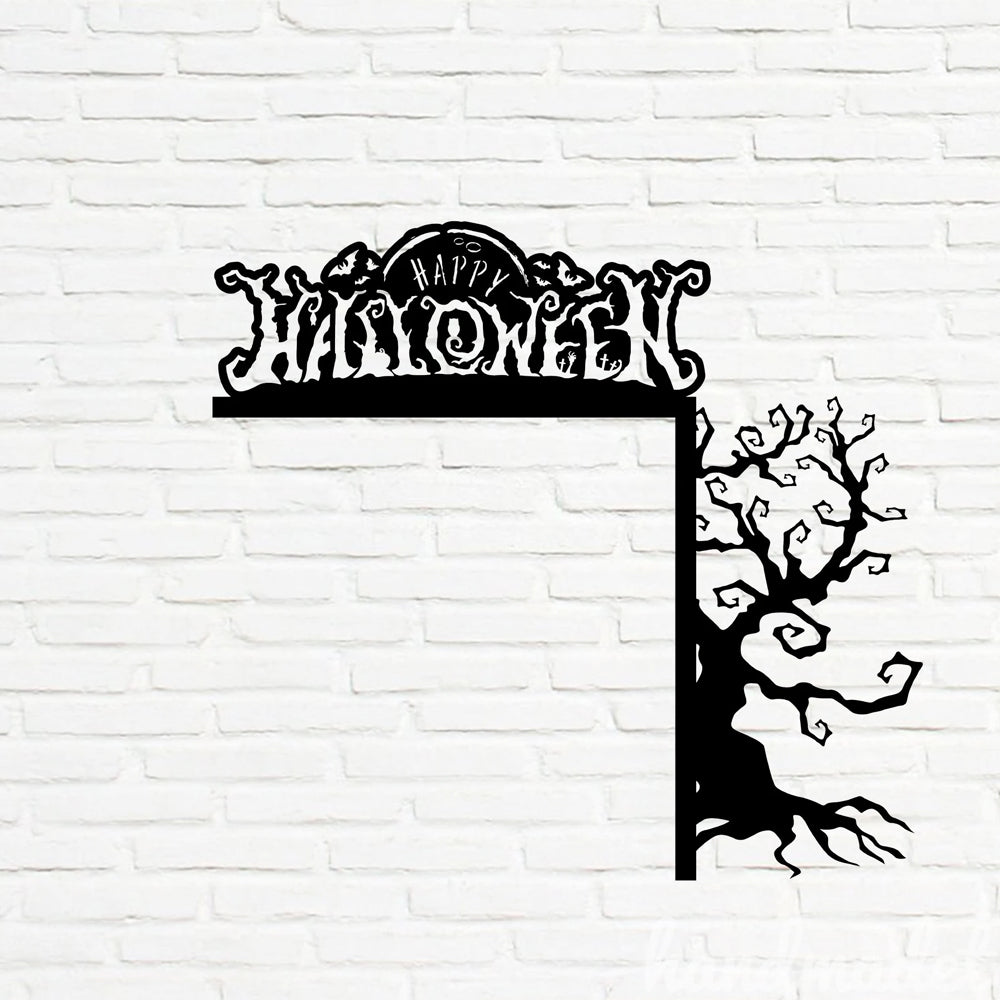 Happy Halloween Withered Tree Metal Door Corner Sign