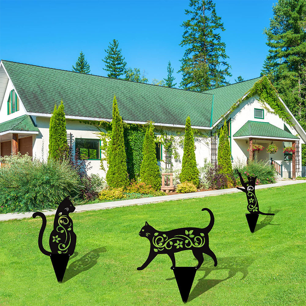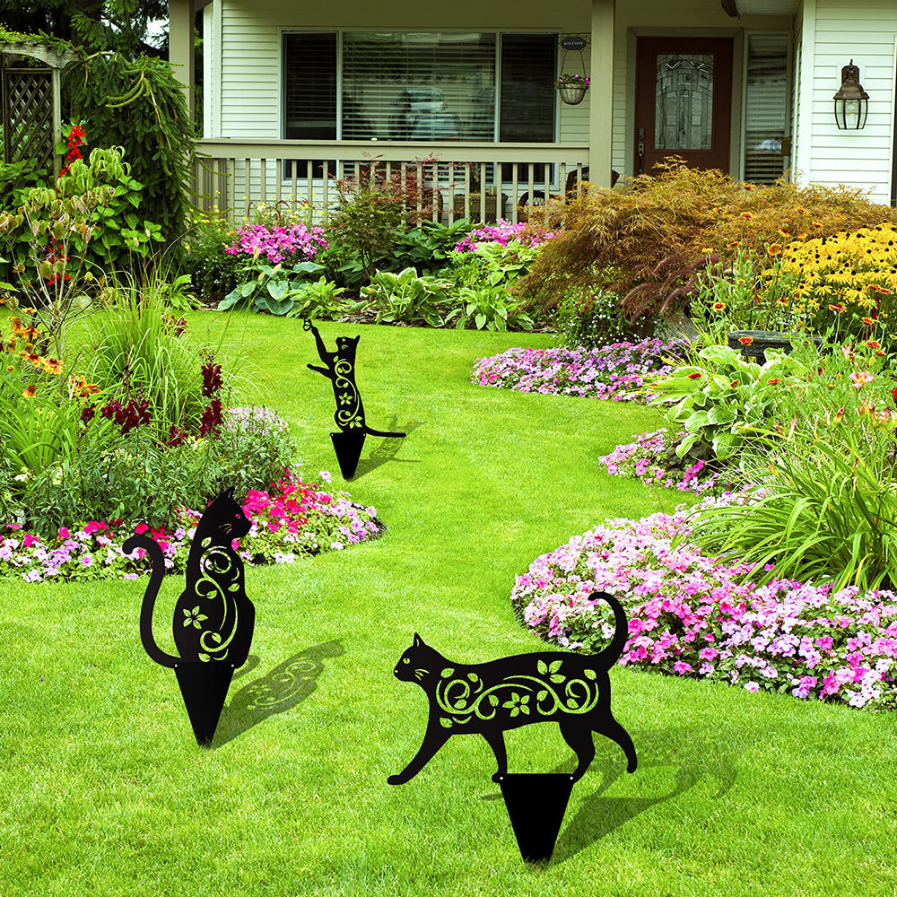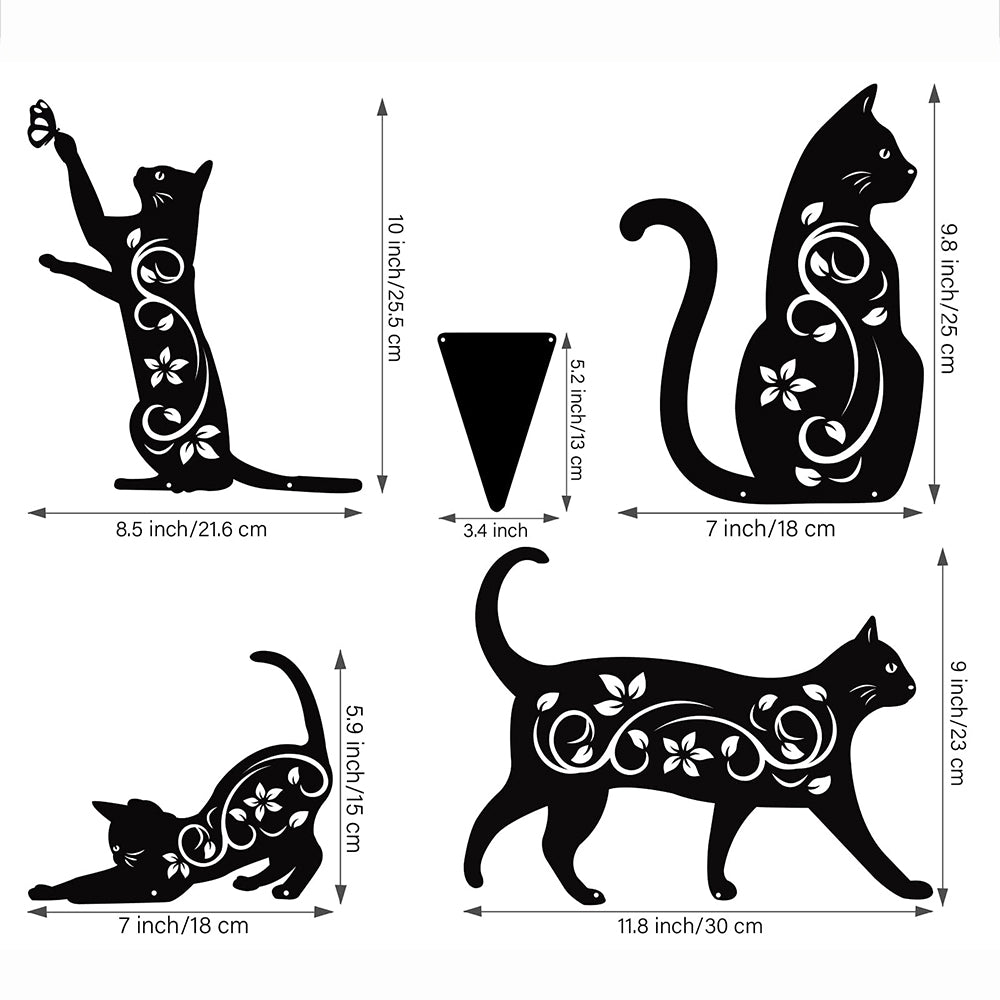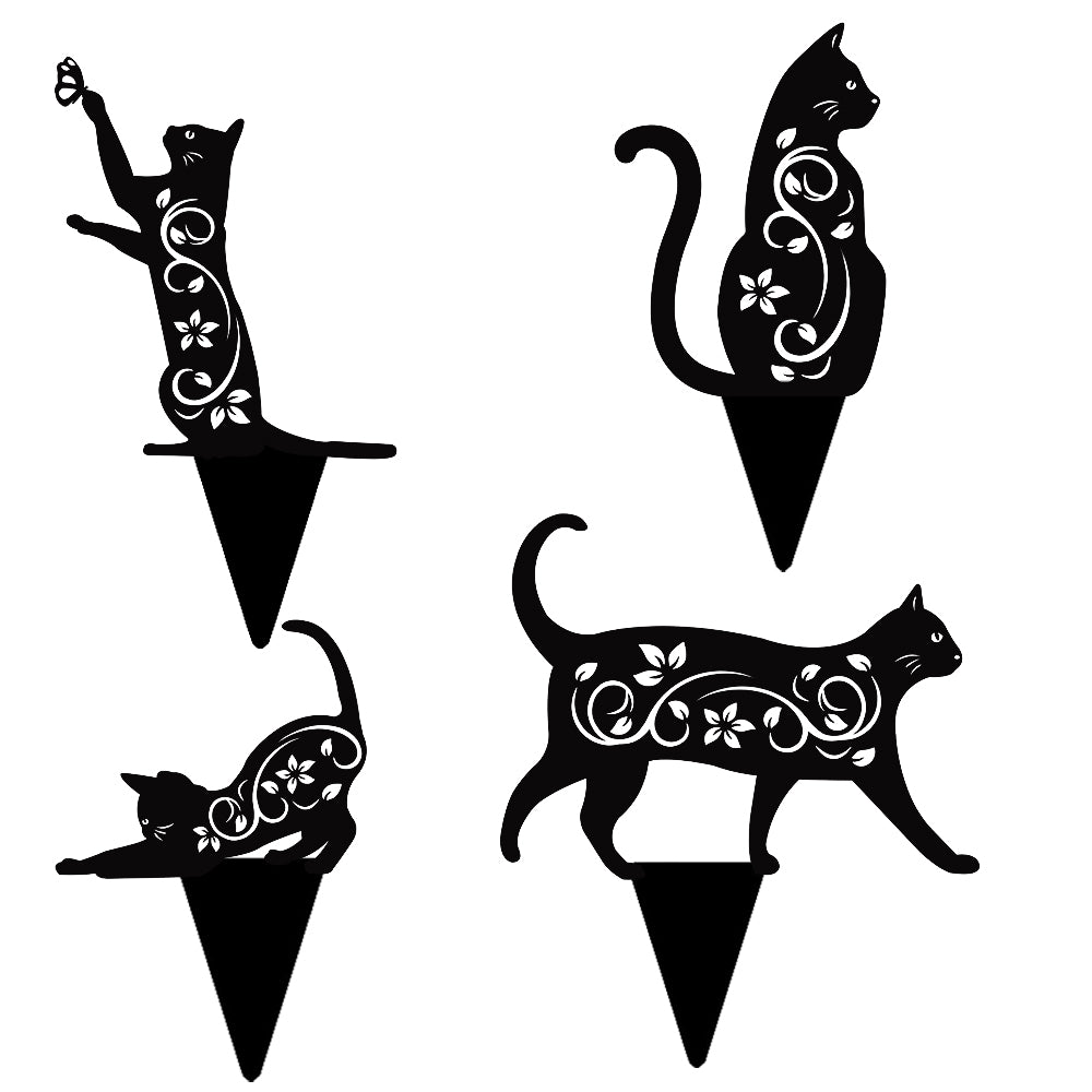 Black Cat Animals 4 Pack Outdoor Metal Garden Markers