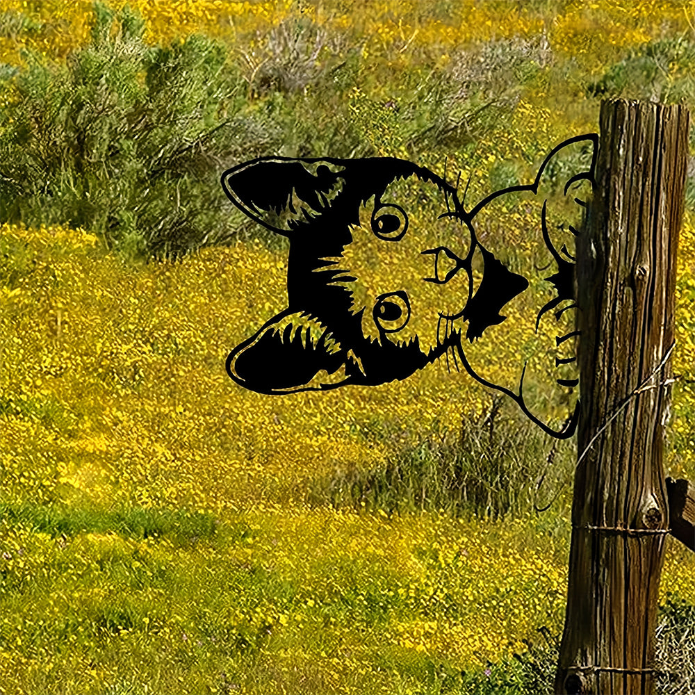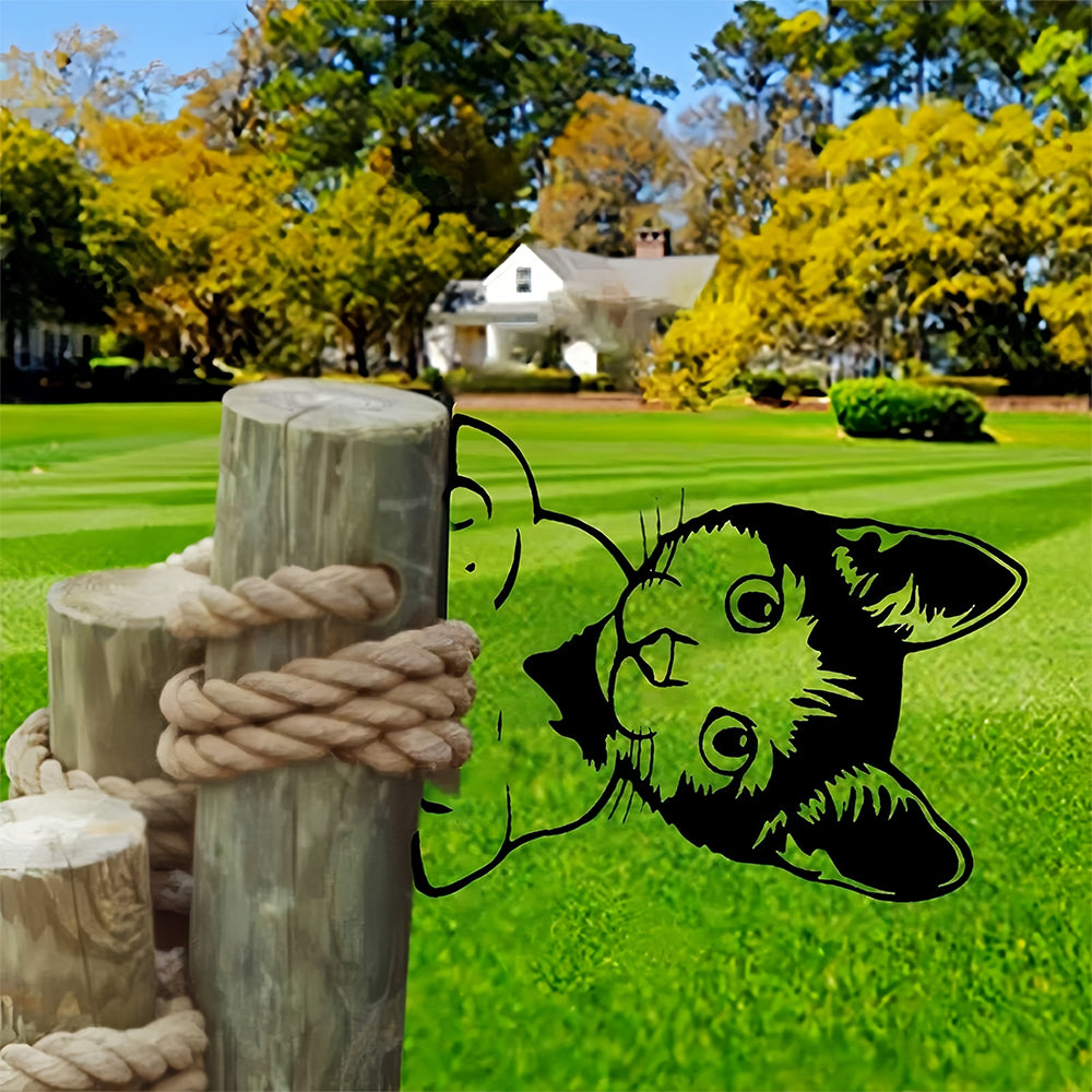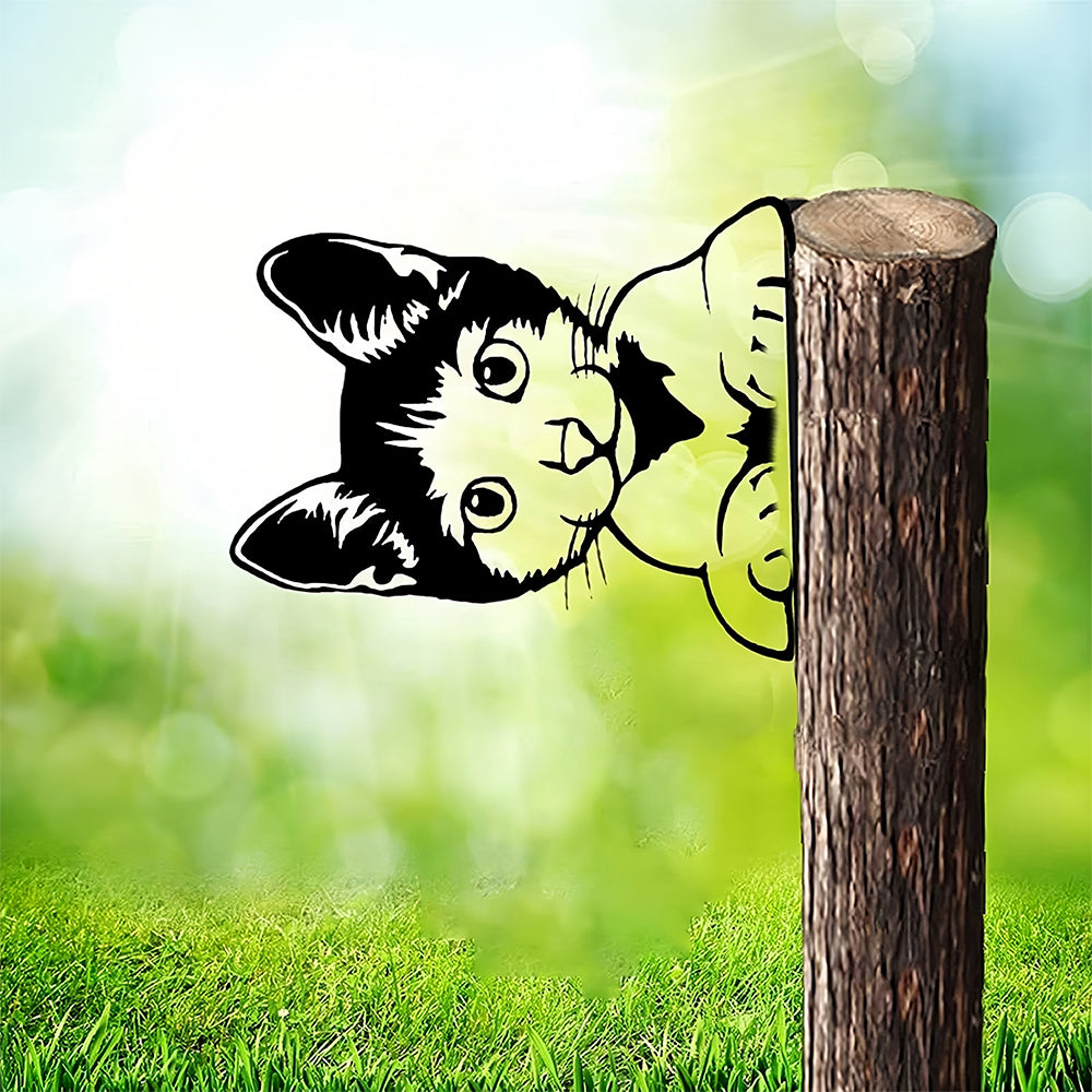 Cute Cat Peeping Animal Outdoor Metal Garden Art