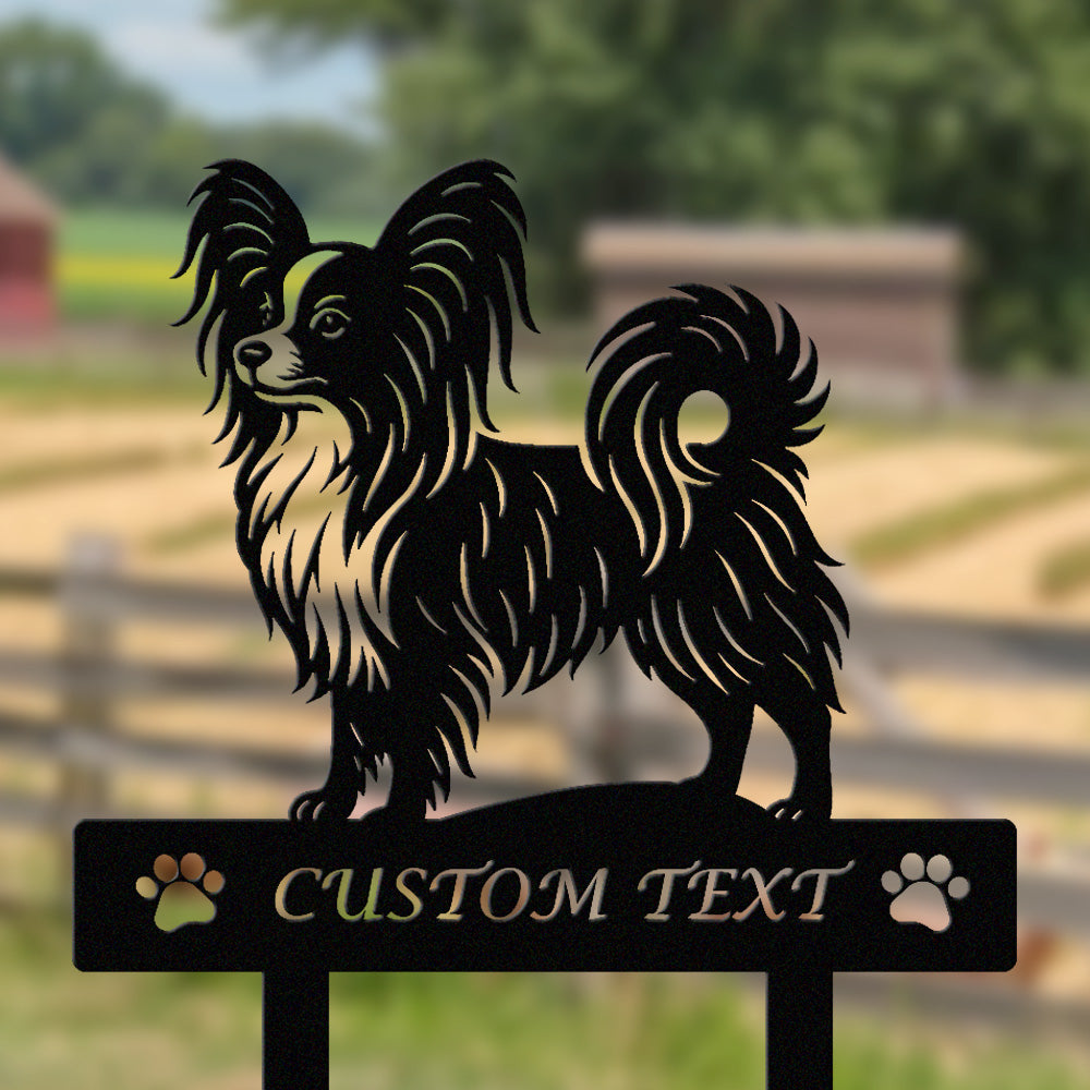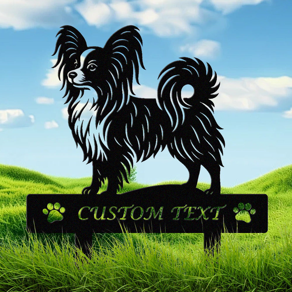 Papillon Custom Dog Silhouette Metal Yard Stake
