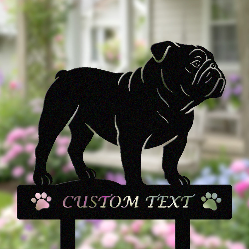 English Bulldog Custom Dog Silhouette Metal Yard Stake