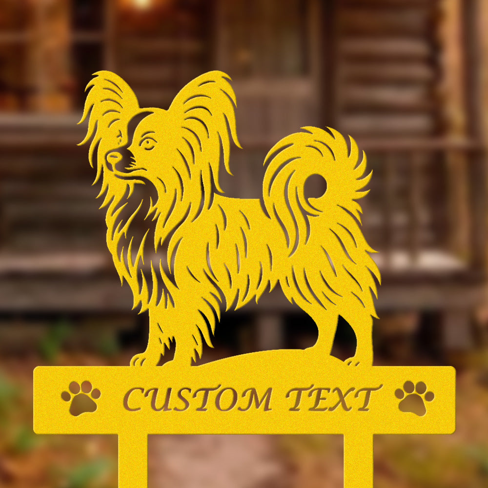 Papillon Custom Dog Silhouette Metal Yard Stake