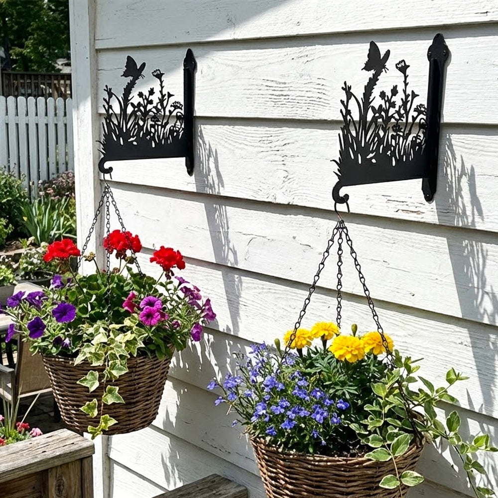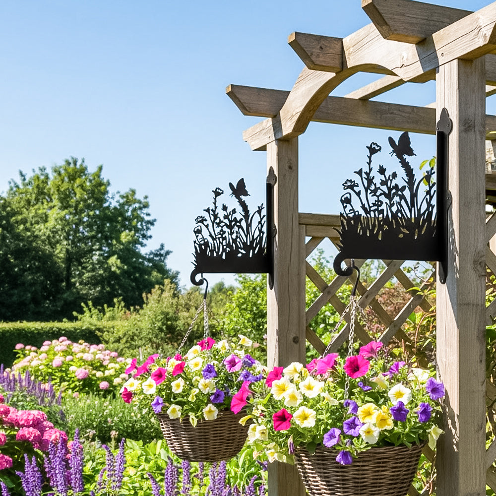 Beautiful Floral Meadow Metal Hanging Bracket Plant Stand