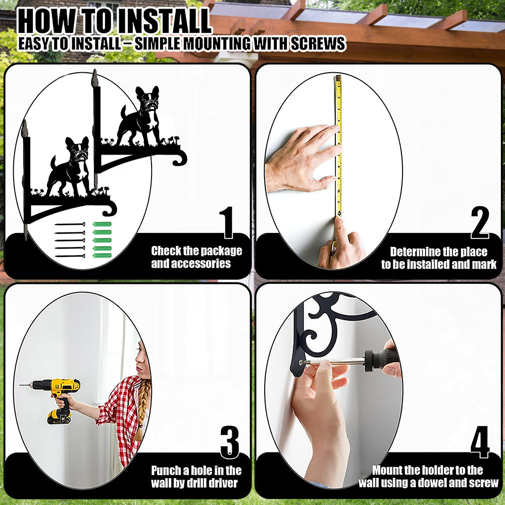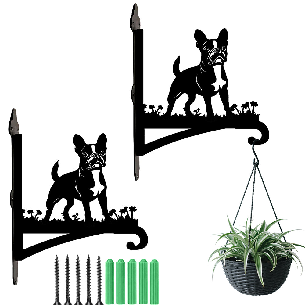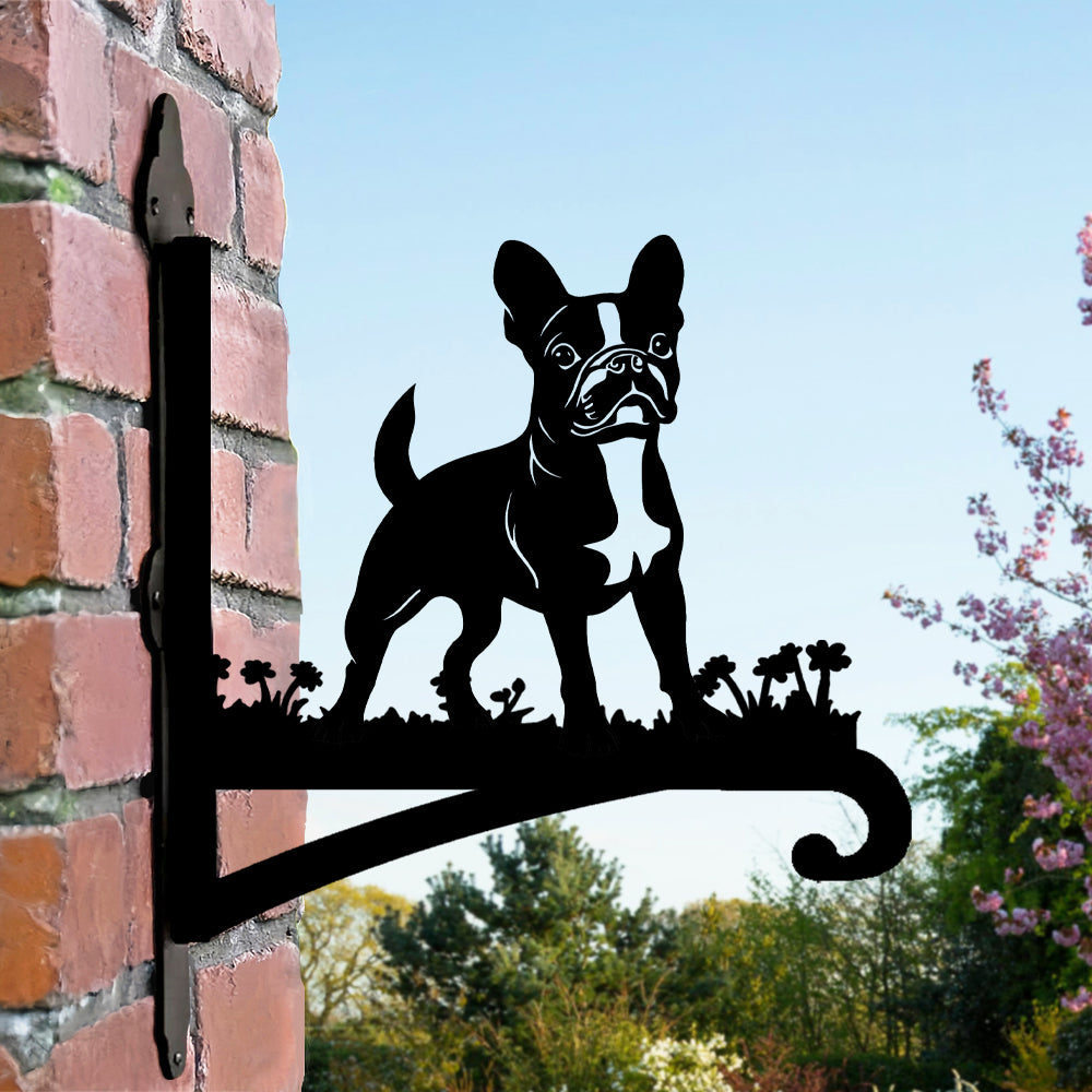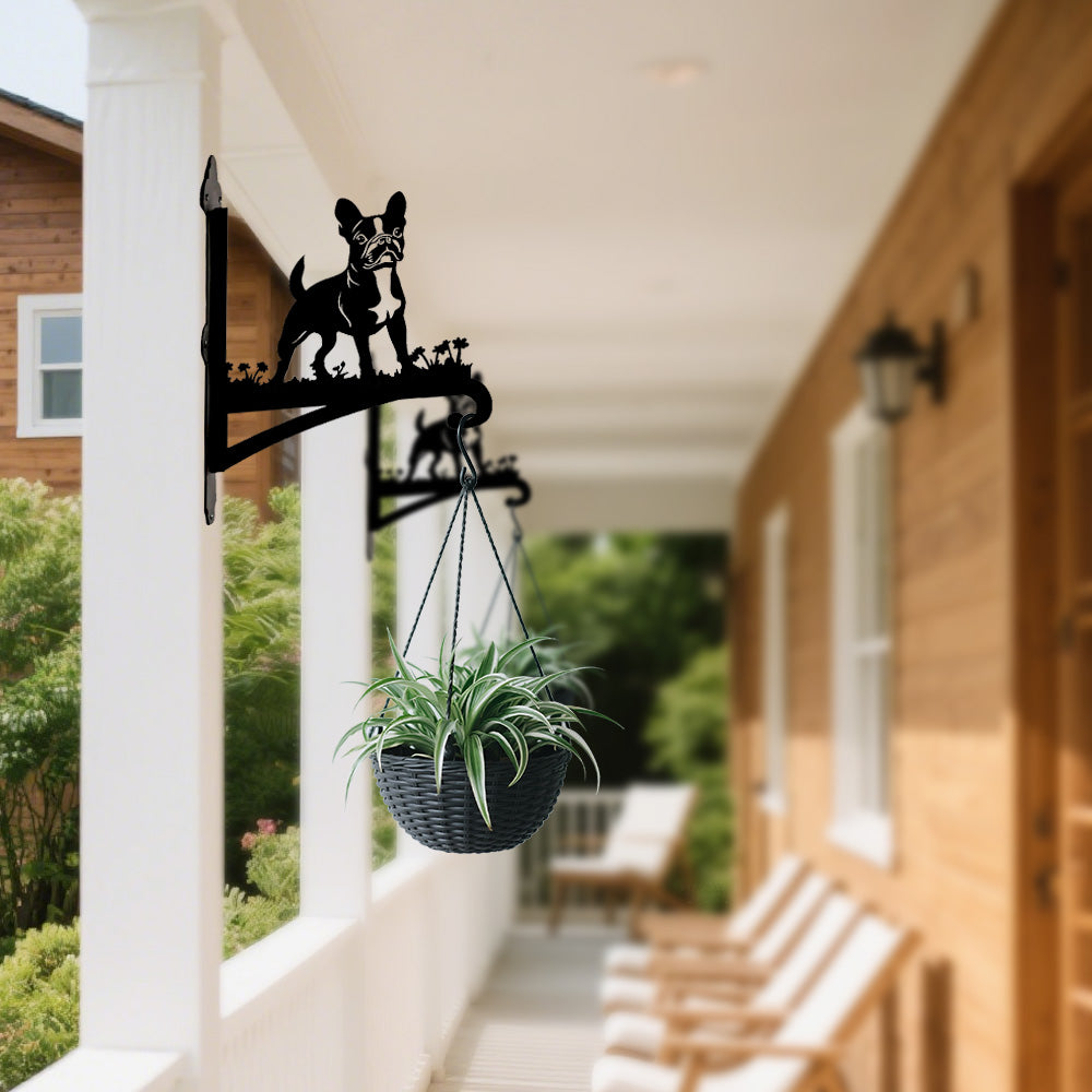 Boston Terrier Detailed Metal Hanging Bracket Plant Stand