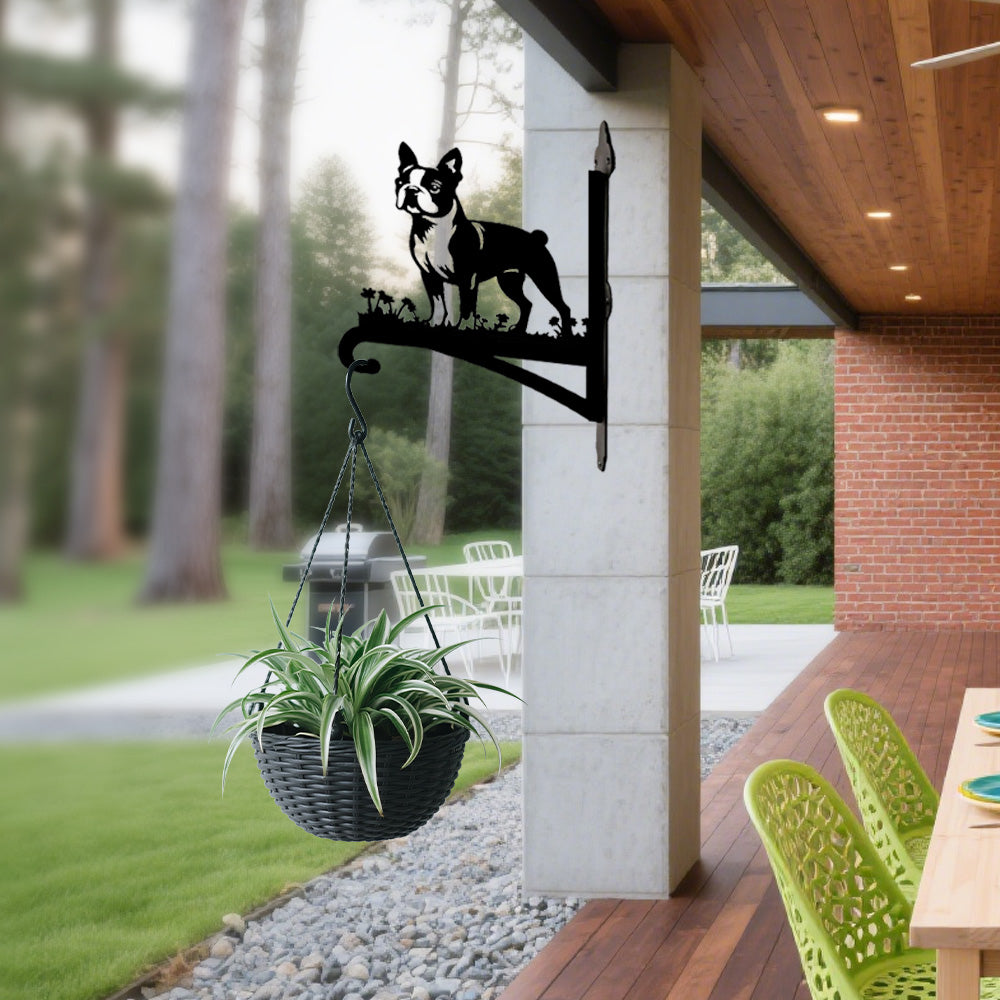 Boston Terrier Metal Hanging Bracket Plant Stand