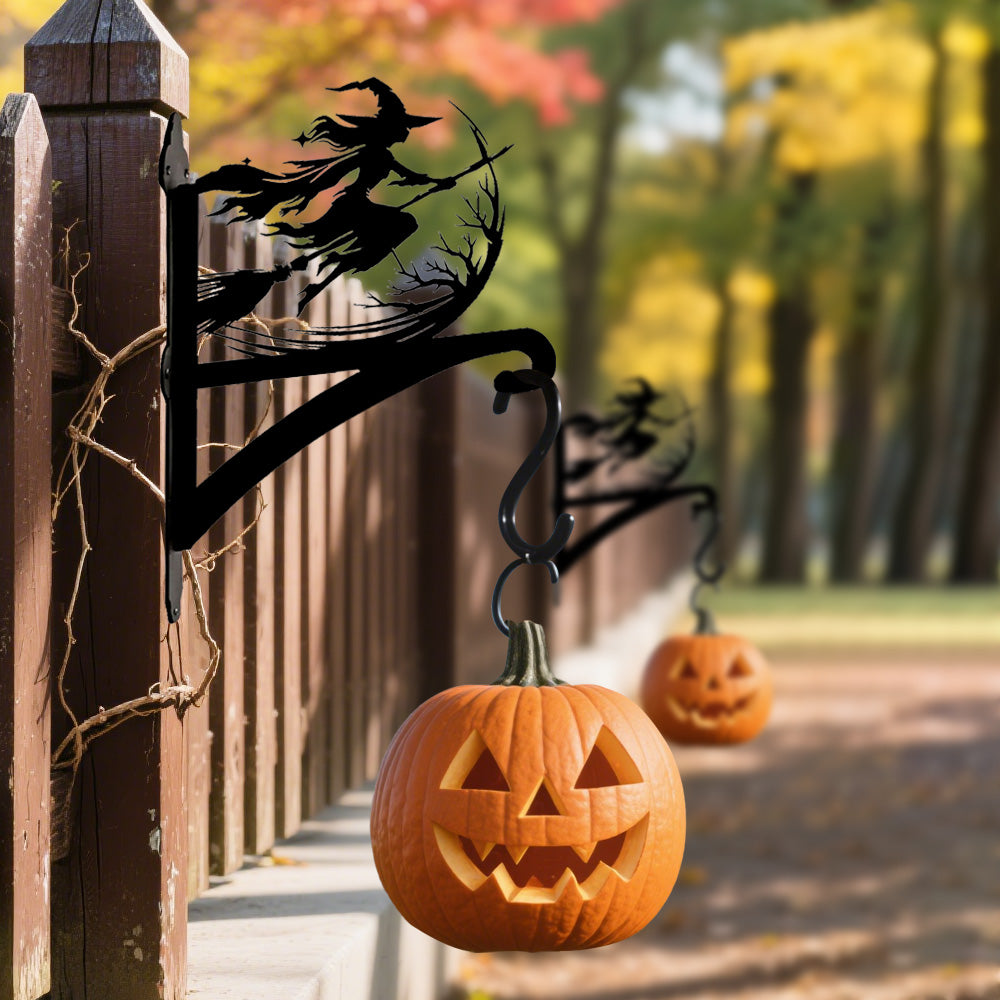 Witch on Broomstick Metal Hanging Bracket Plant Stand