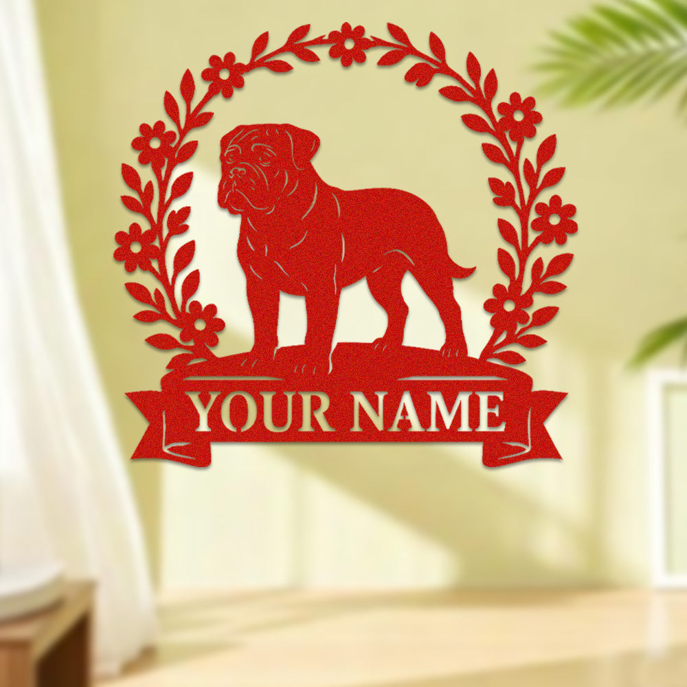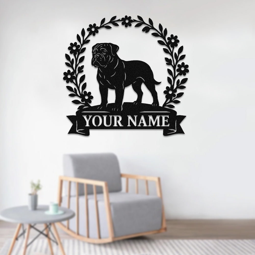 Bullmastiff Wreath Metal Wall Art Dog Lover Personalized Memorial Metal Sign