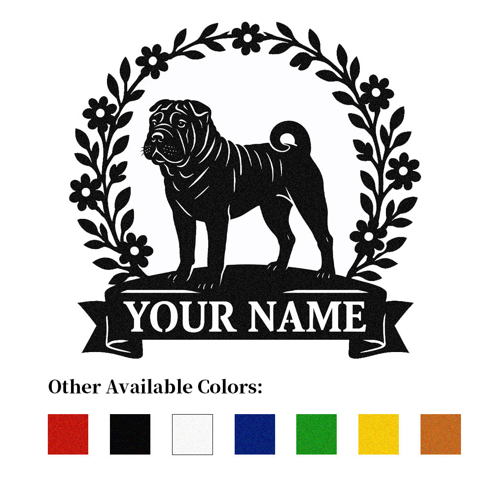 Chinese Shar-Pei Wreath Metal Wall Art Dog Lover Personalized Memorial Metal Sign