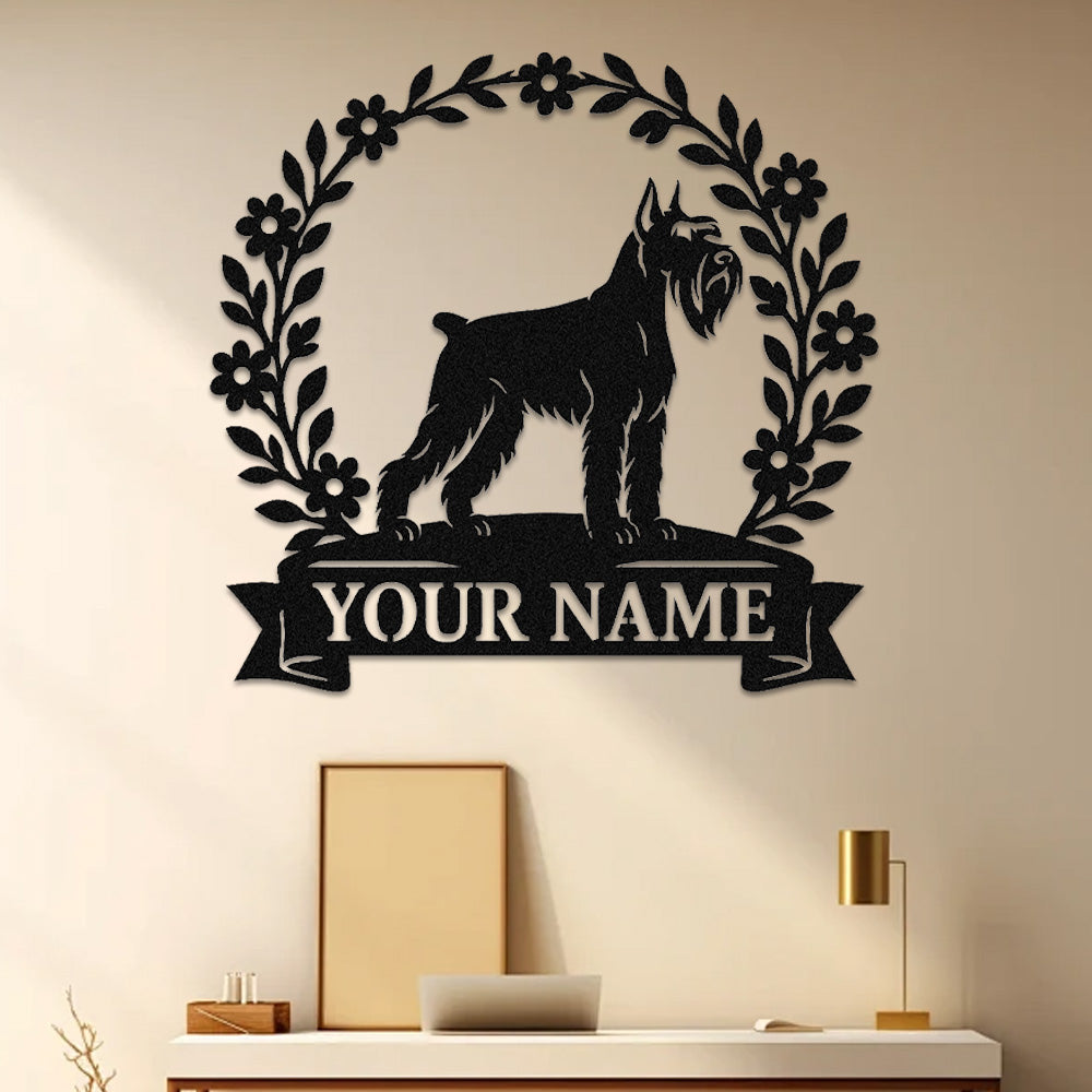 Giant Schnauzer Wreath Metal Wall Art Dog Lover Personalized Memorial Metal Sign