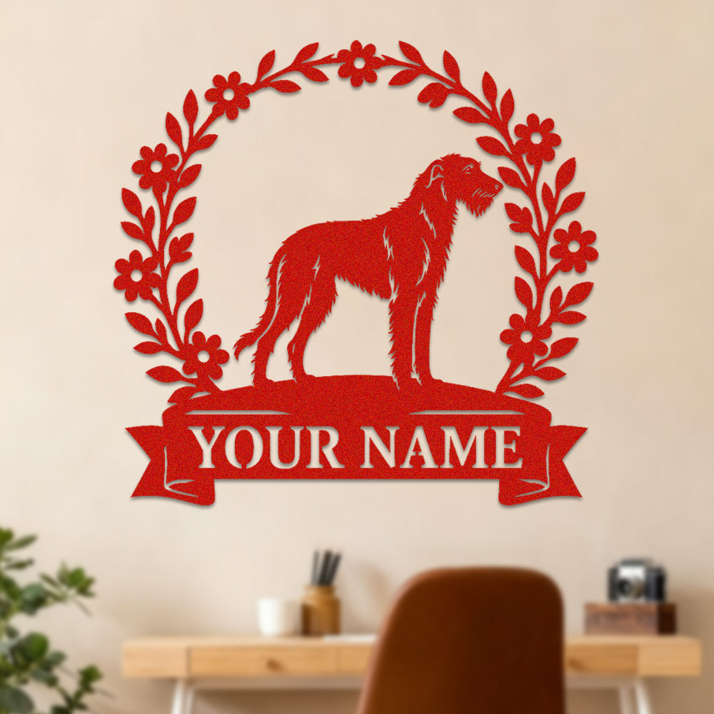 Irish Wolfhound Wreath Metal Wall Art Dog Lover Personalized Memorial Metal Sign