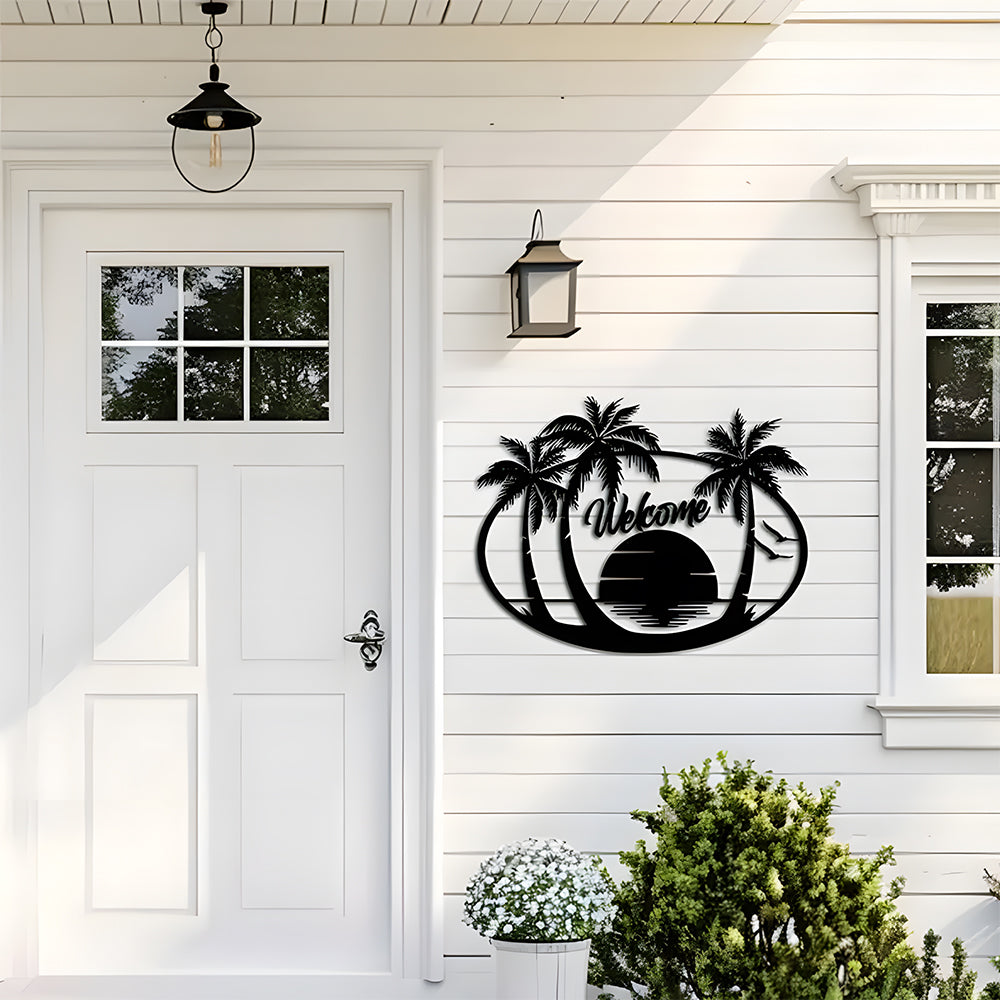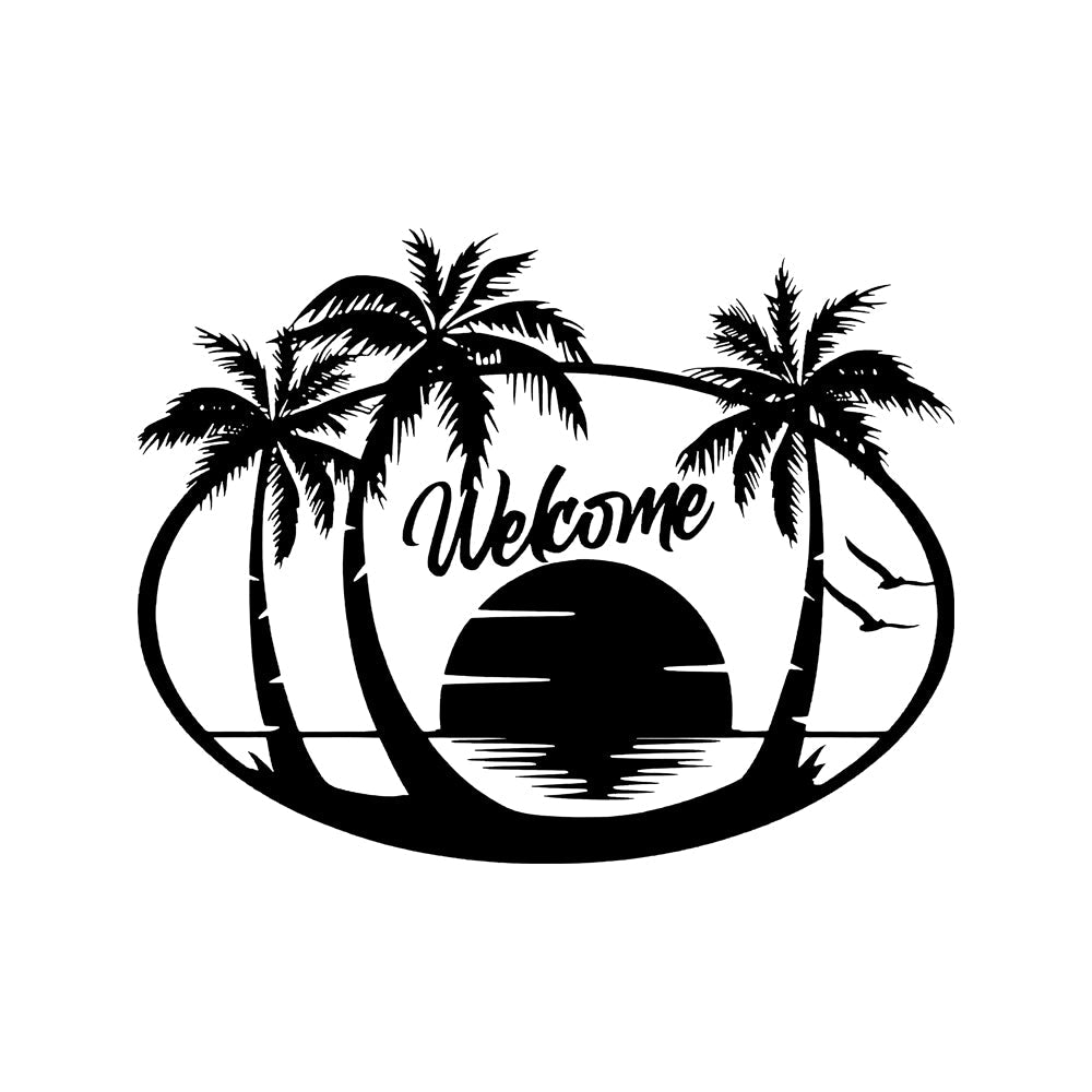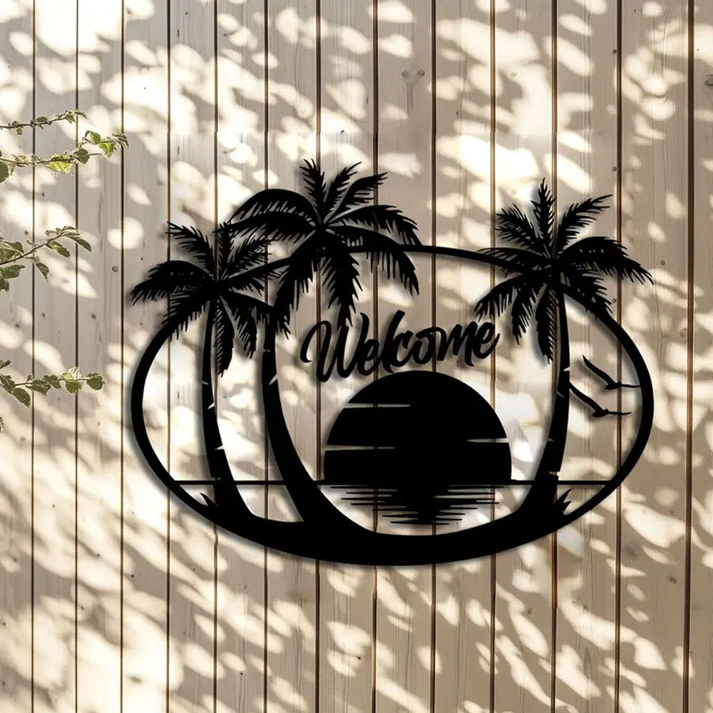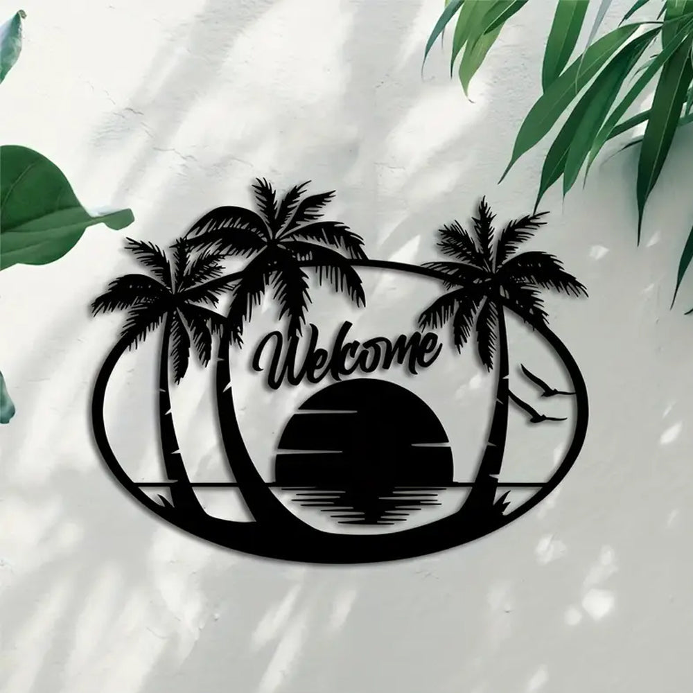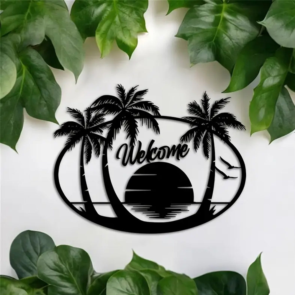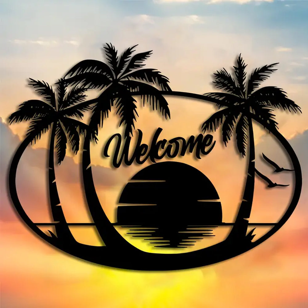 Tropical Beach Welcome Sign Metal Wall Art Decoration