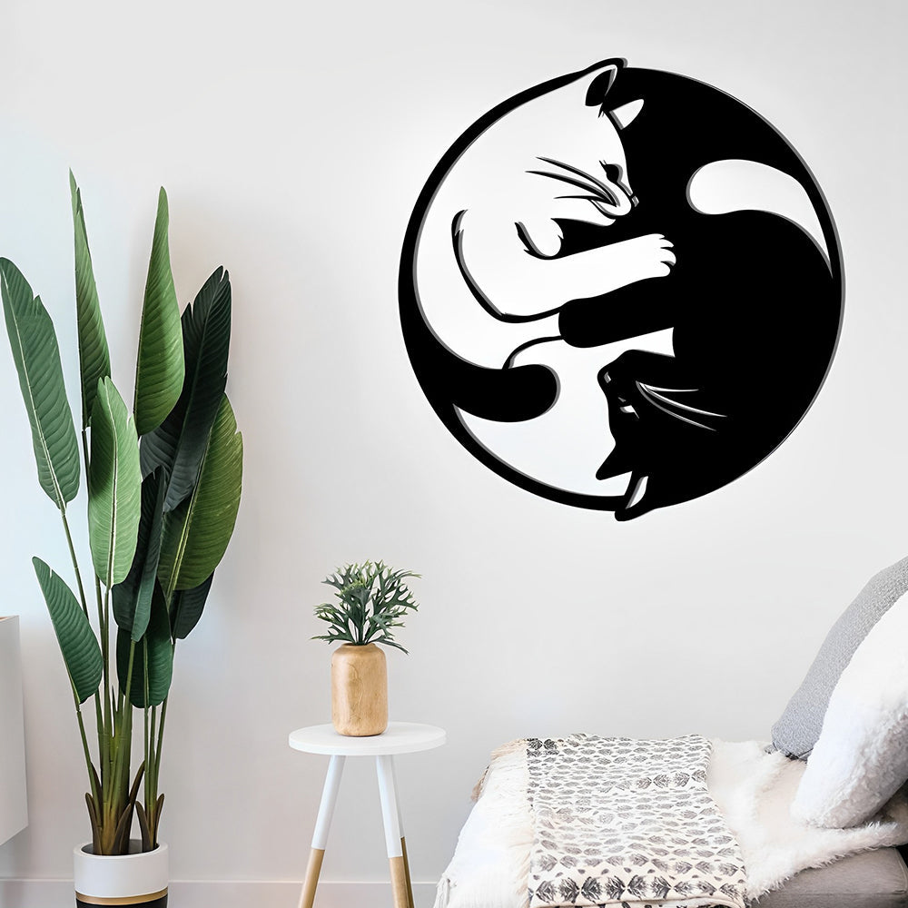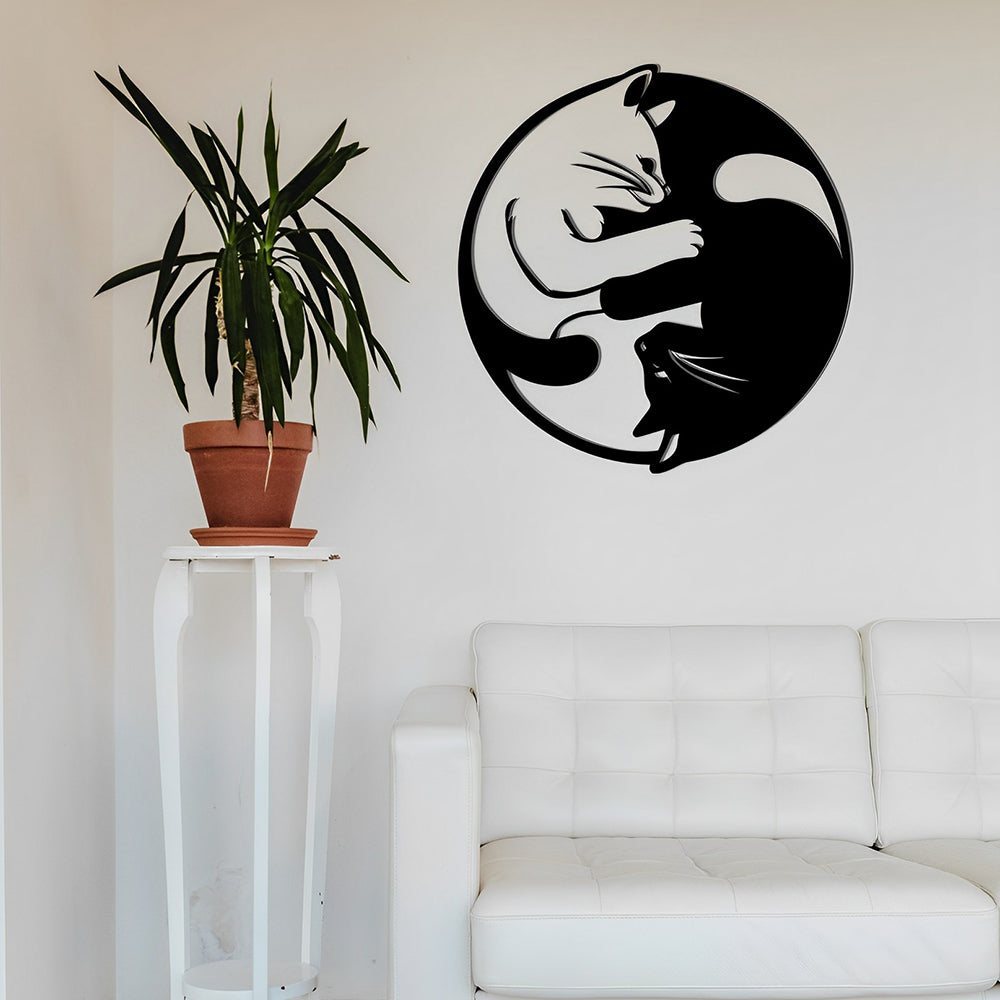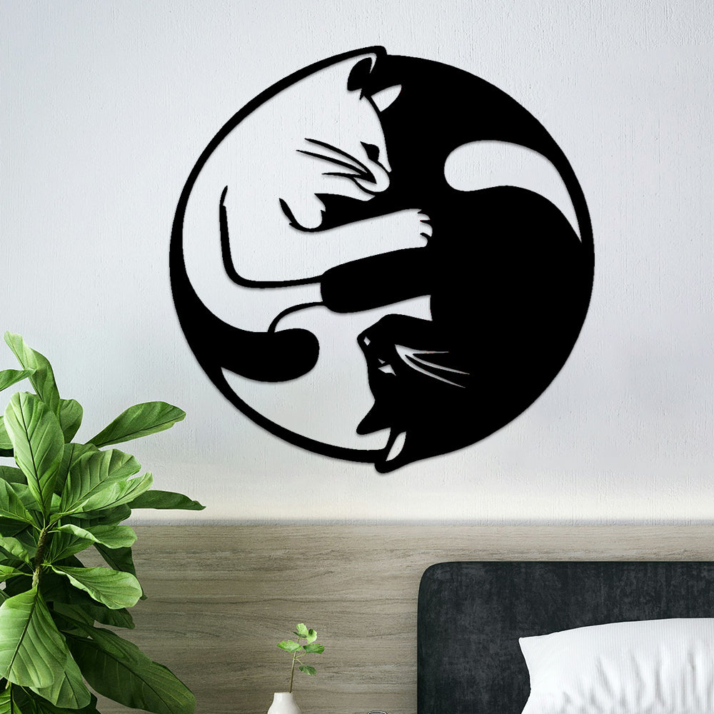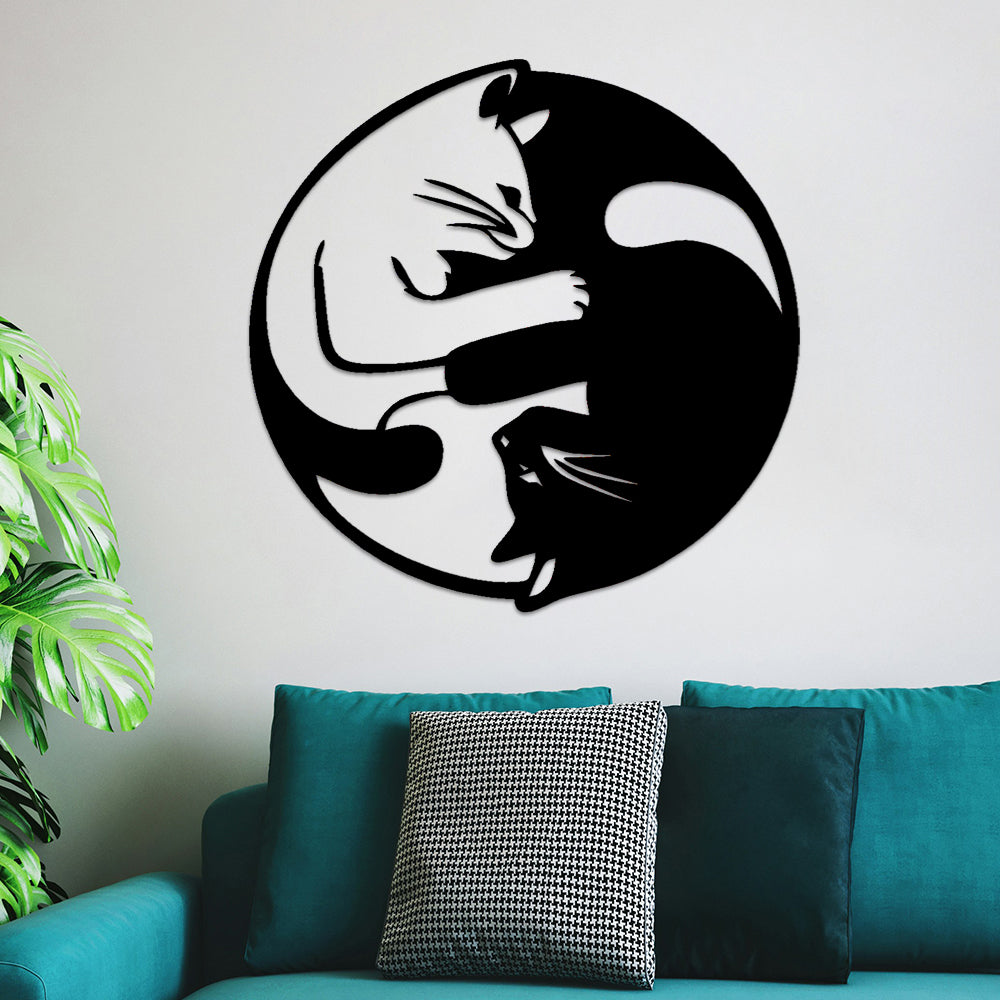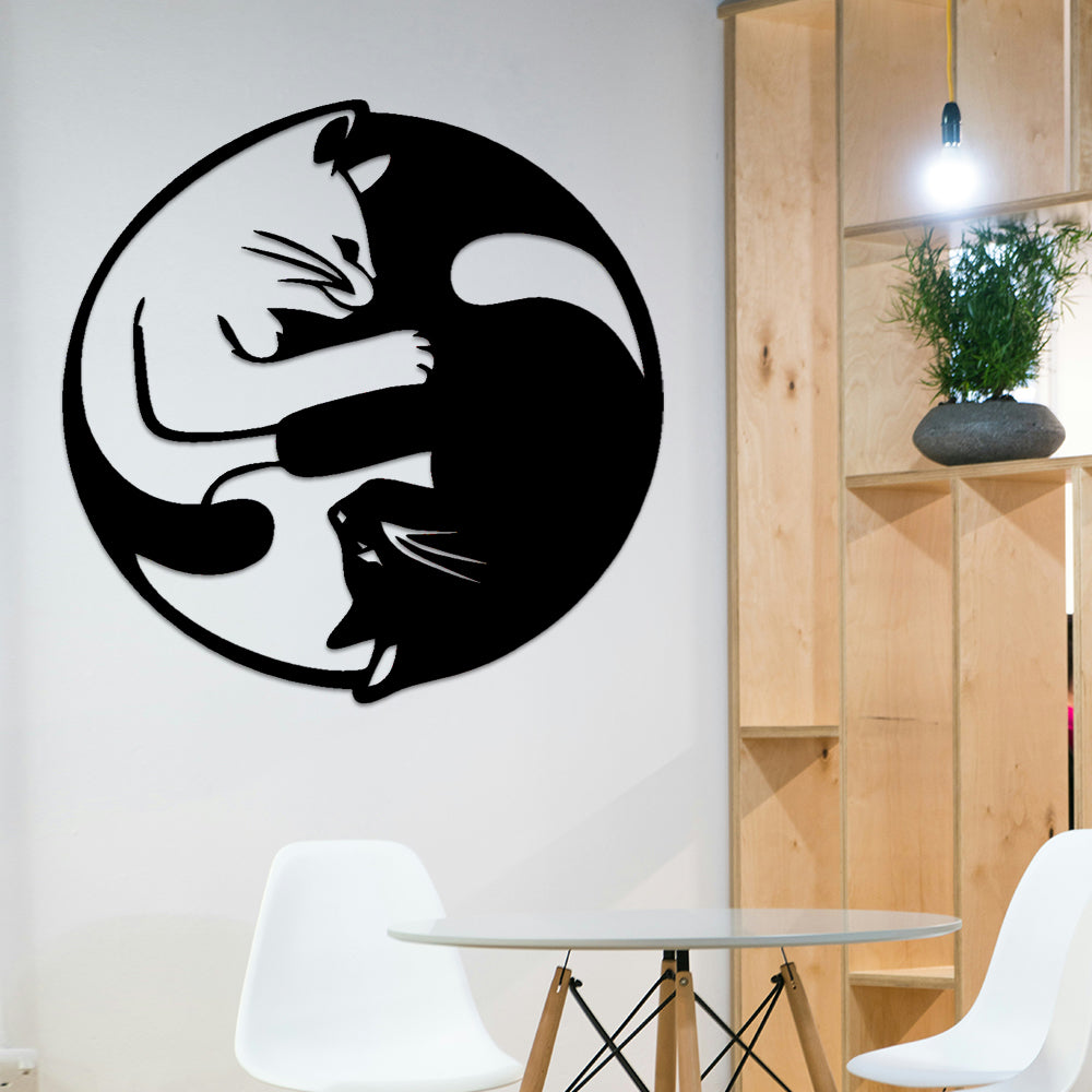 Yin Yang Tai Chi Cats Metal Wall Art