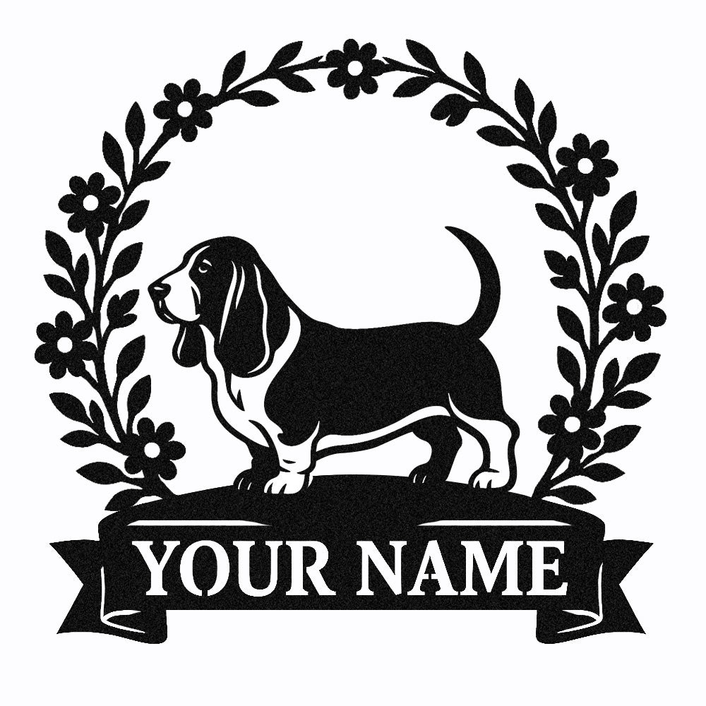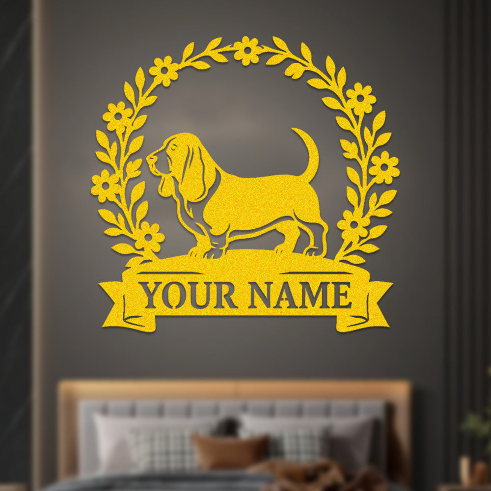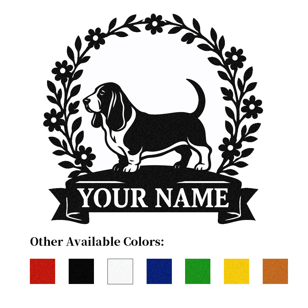 Basset Hound Wreath Metal Wall Art Dog Lover Personalized Memorial Metal Sign