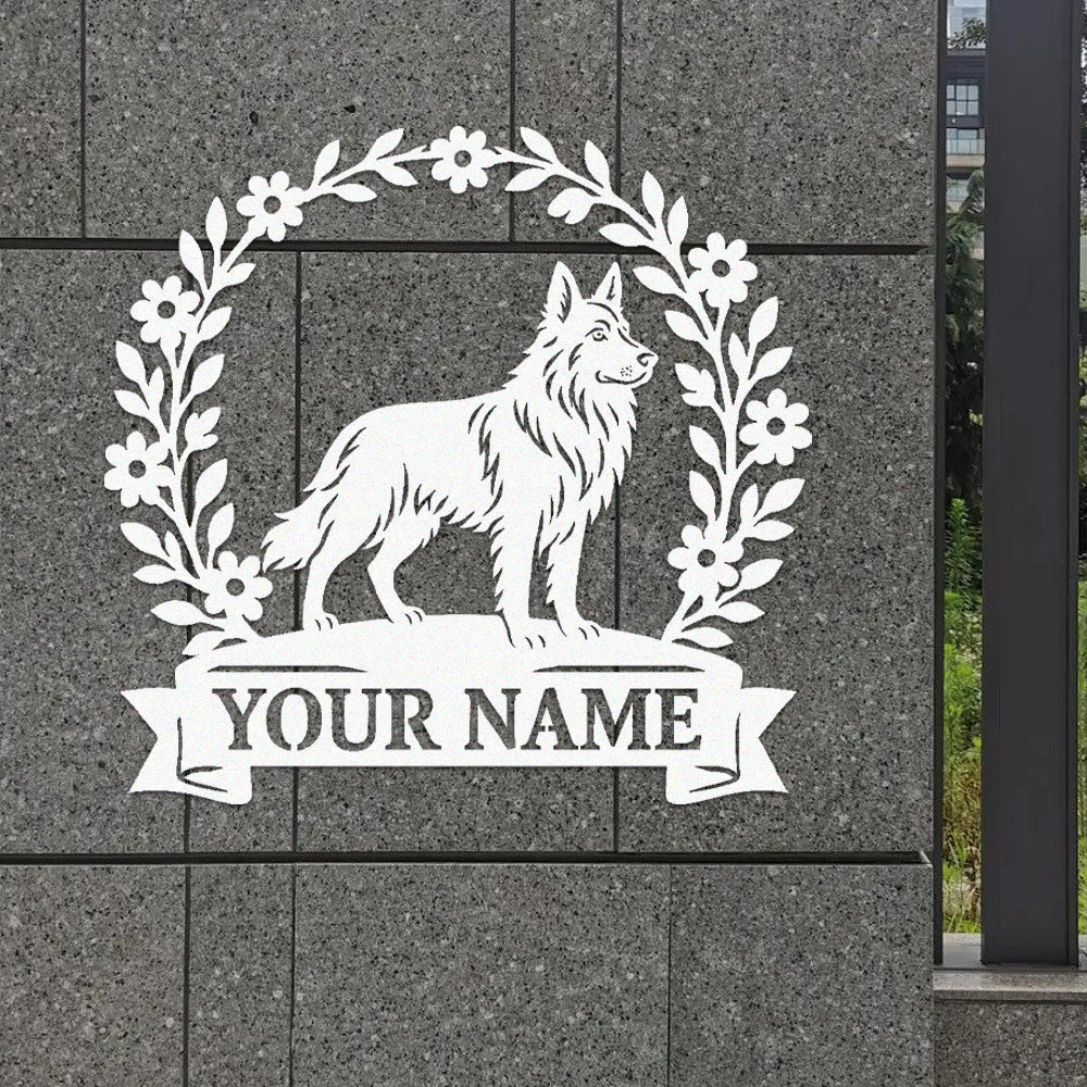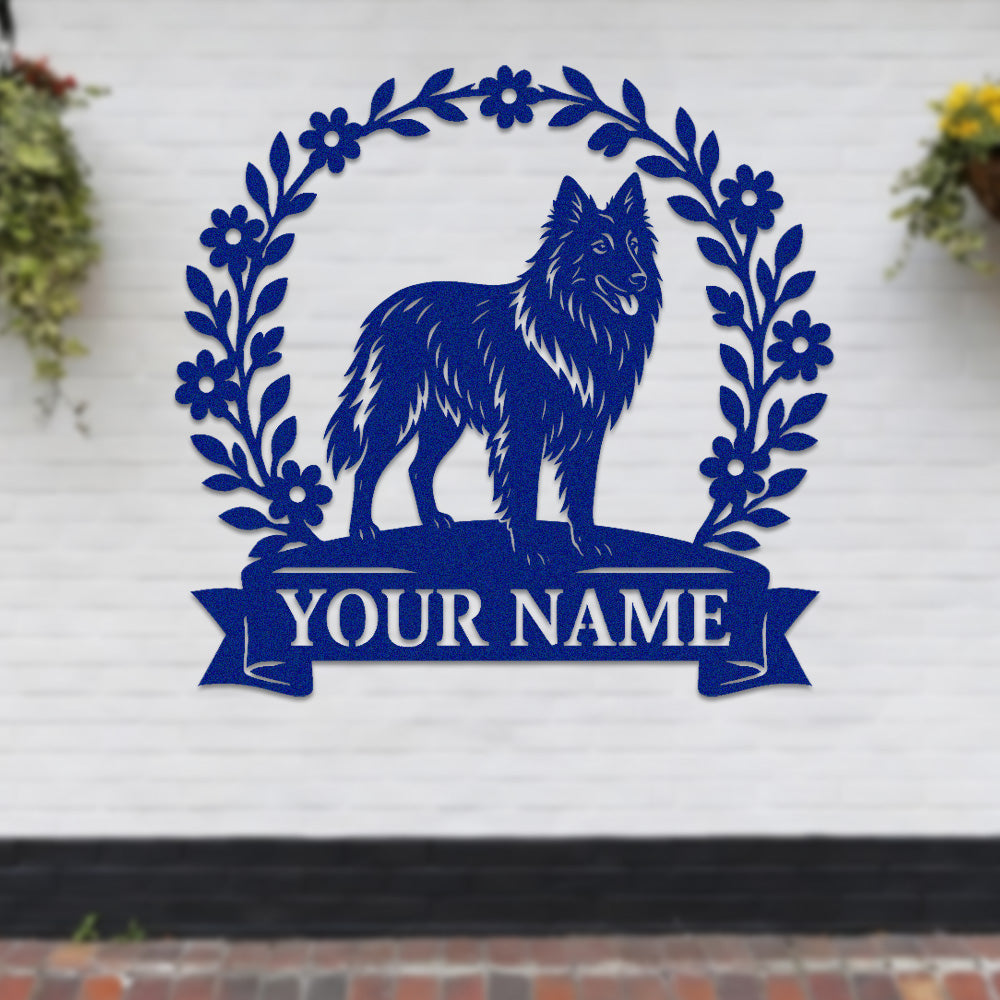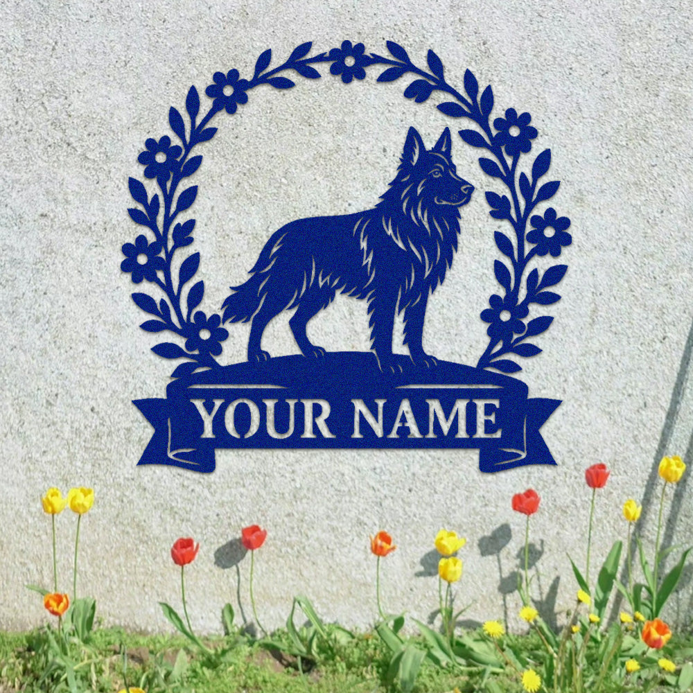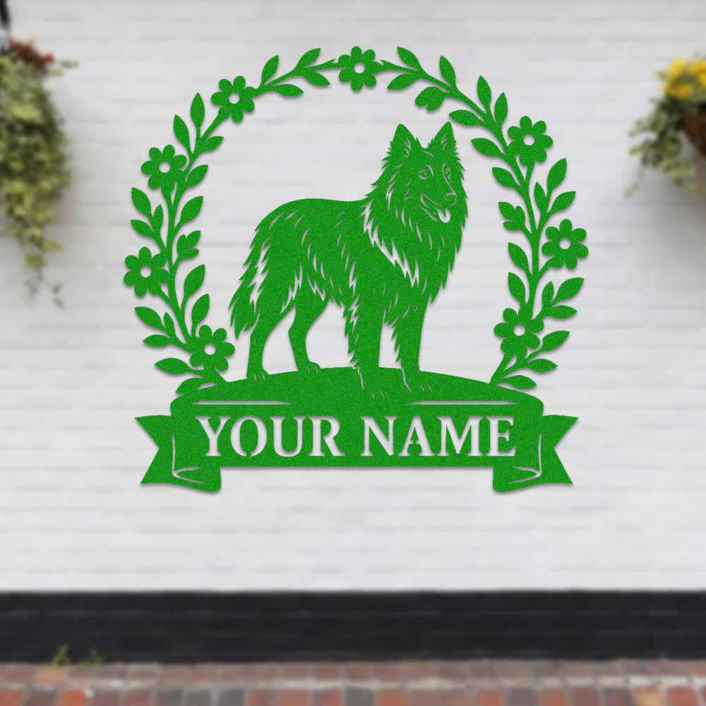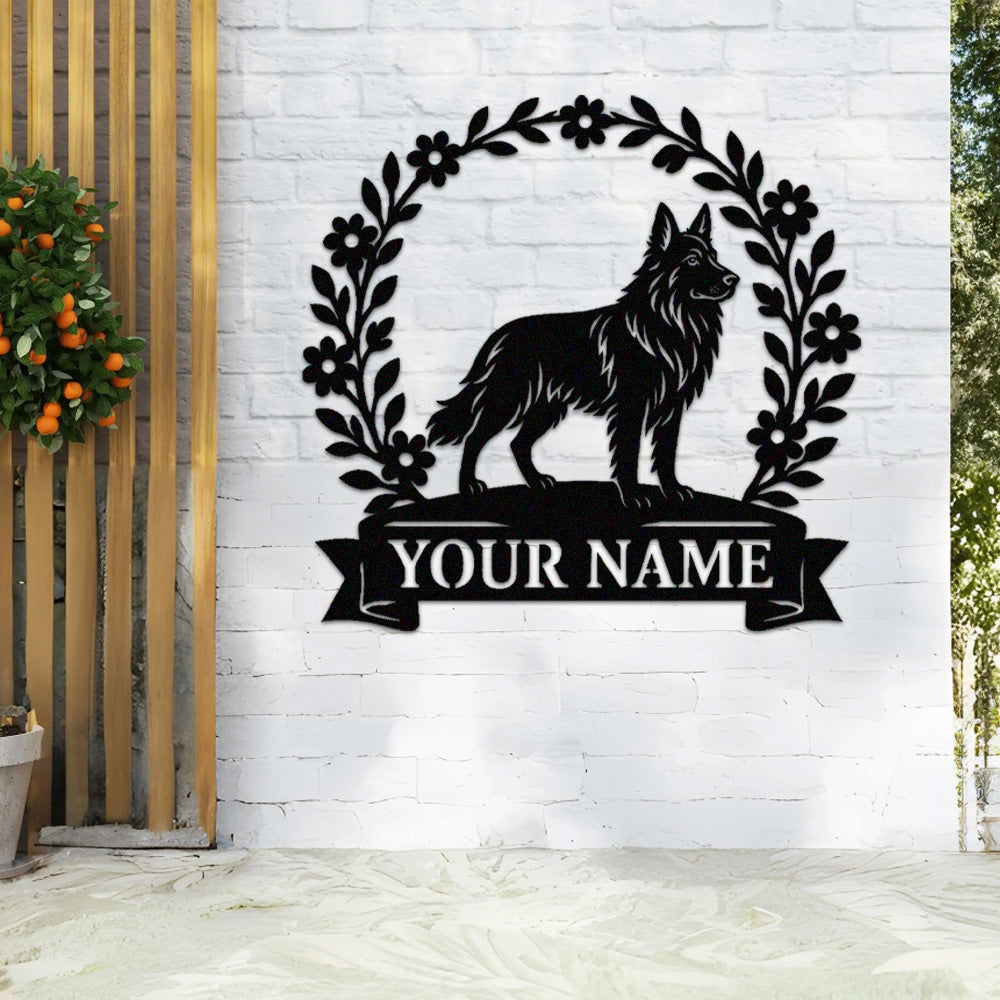 Belgian Sheepdog Wreath Metal Wall Art Dog Lover Personalized Memorial Metal Sign