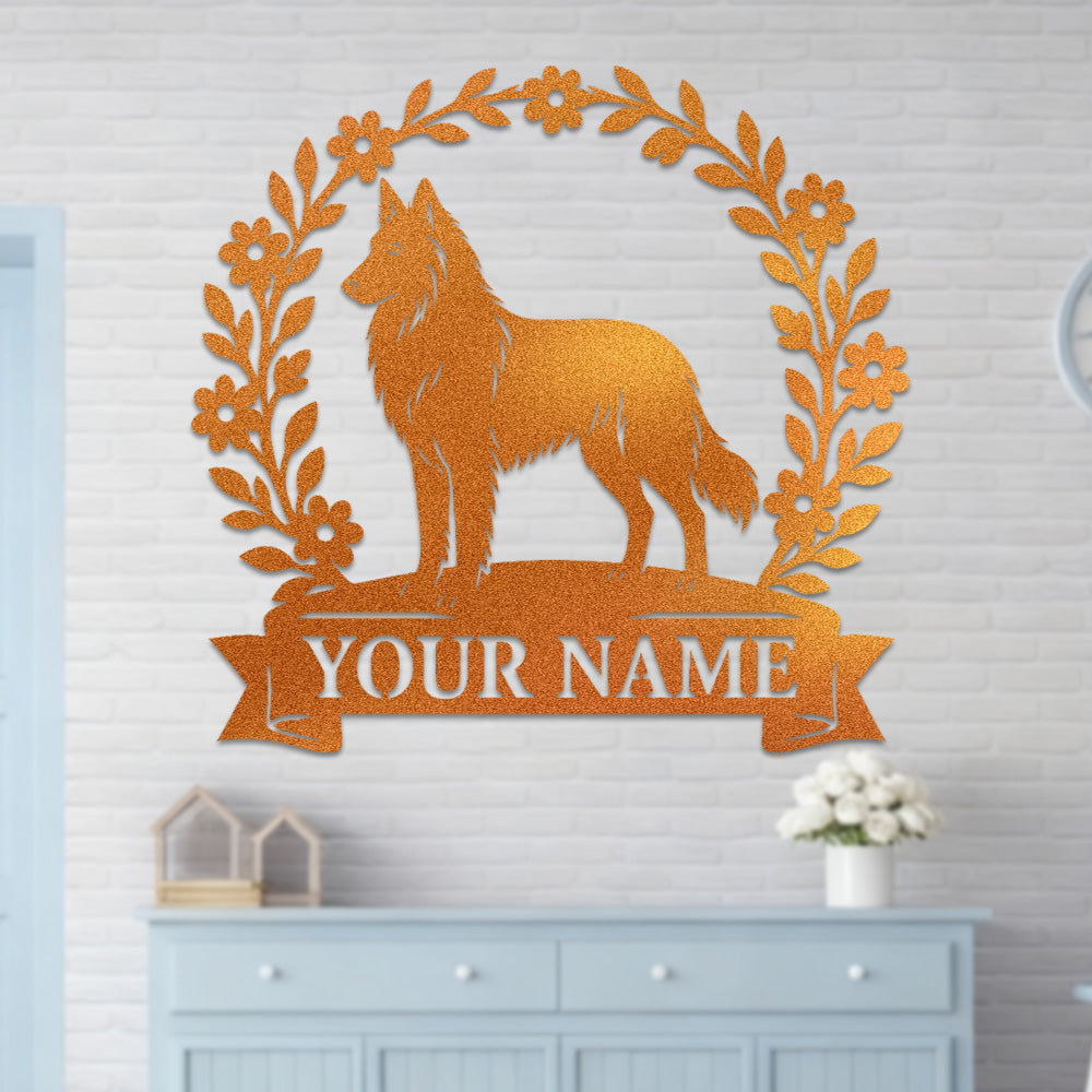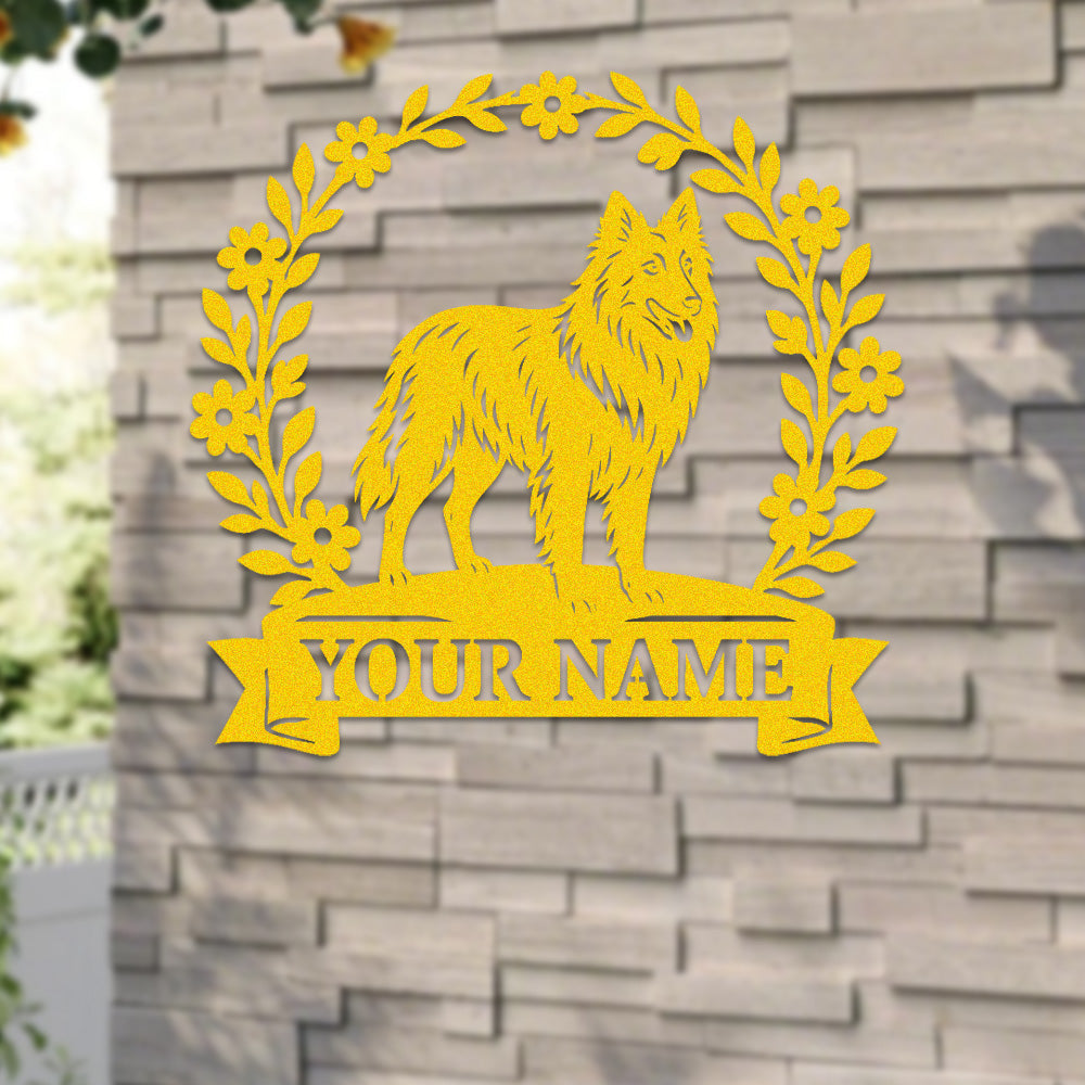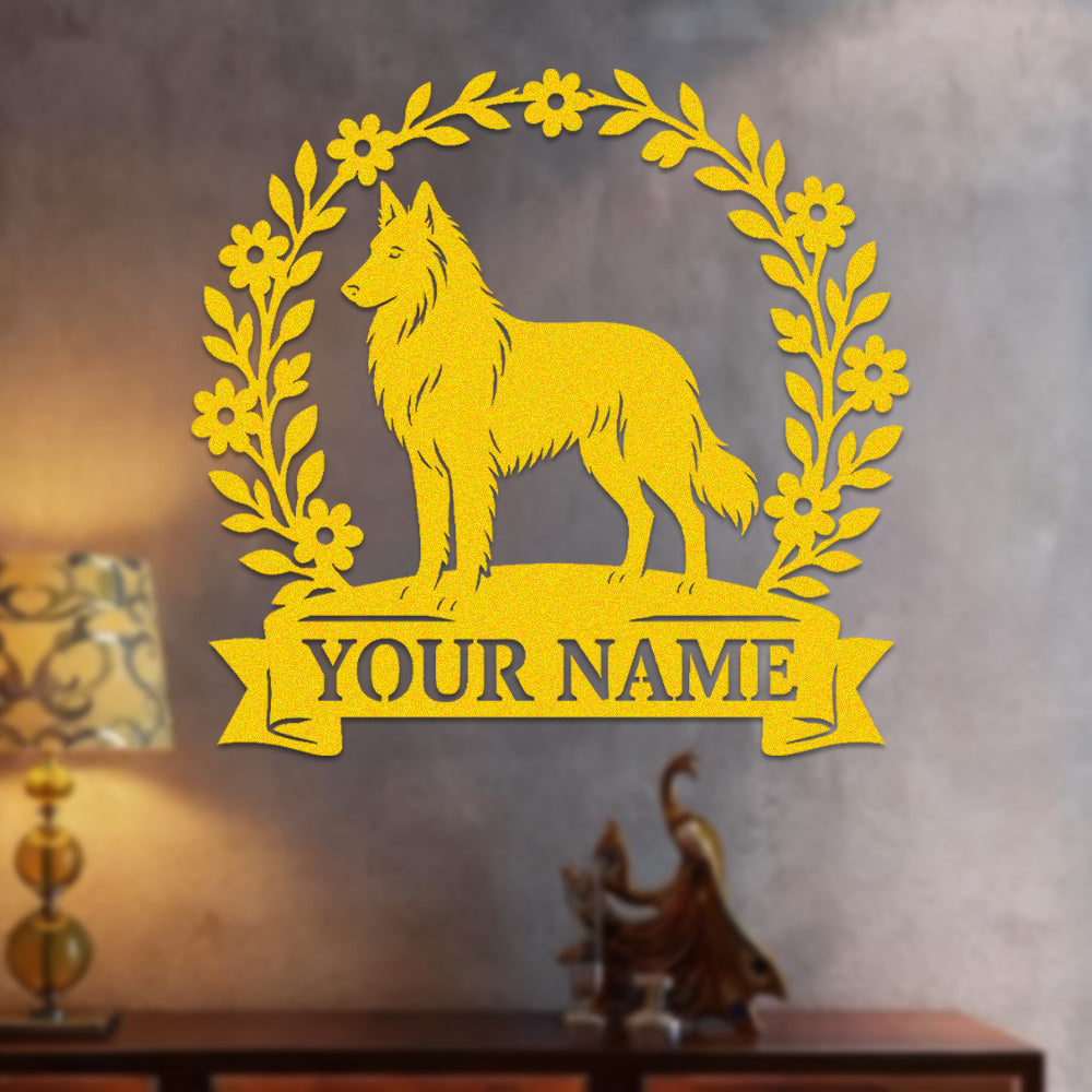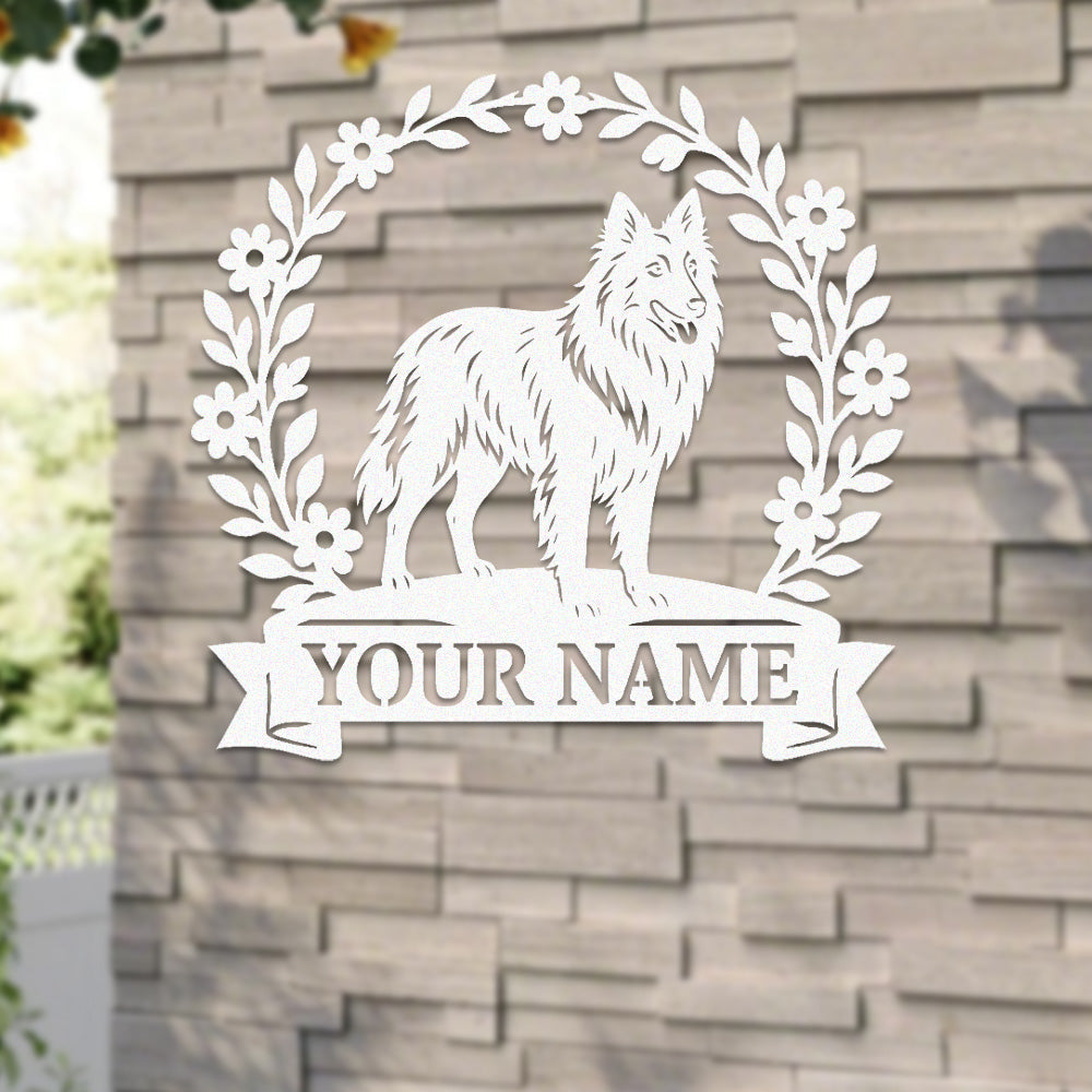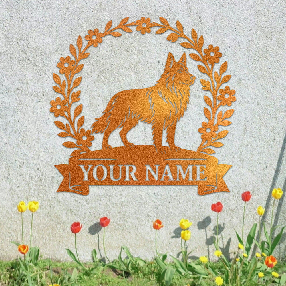 Belgian Sheepdog Wreath Metal Wall Art Dog Lover Personalized Memorial Metal Sign
