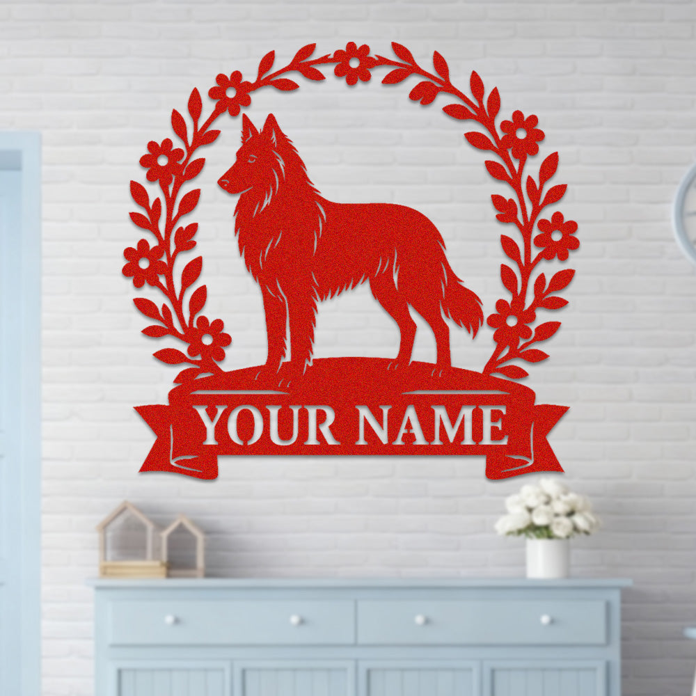 Belgian Tervuren Wreath Metal Wall Art Dog Lover Personalized Memorial Metal Sign