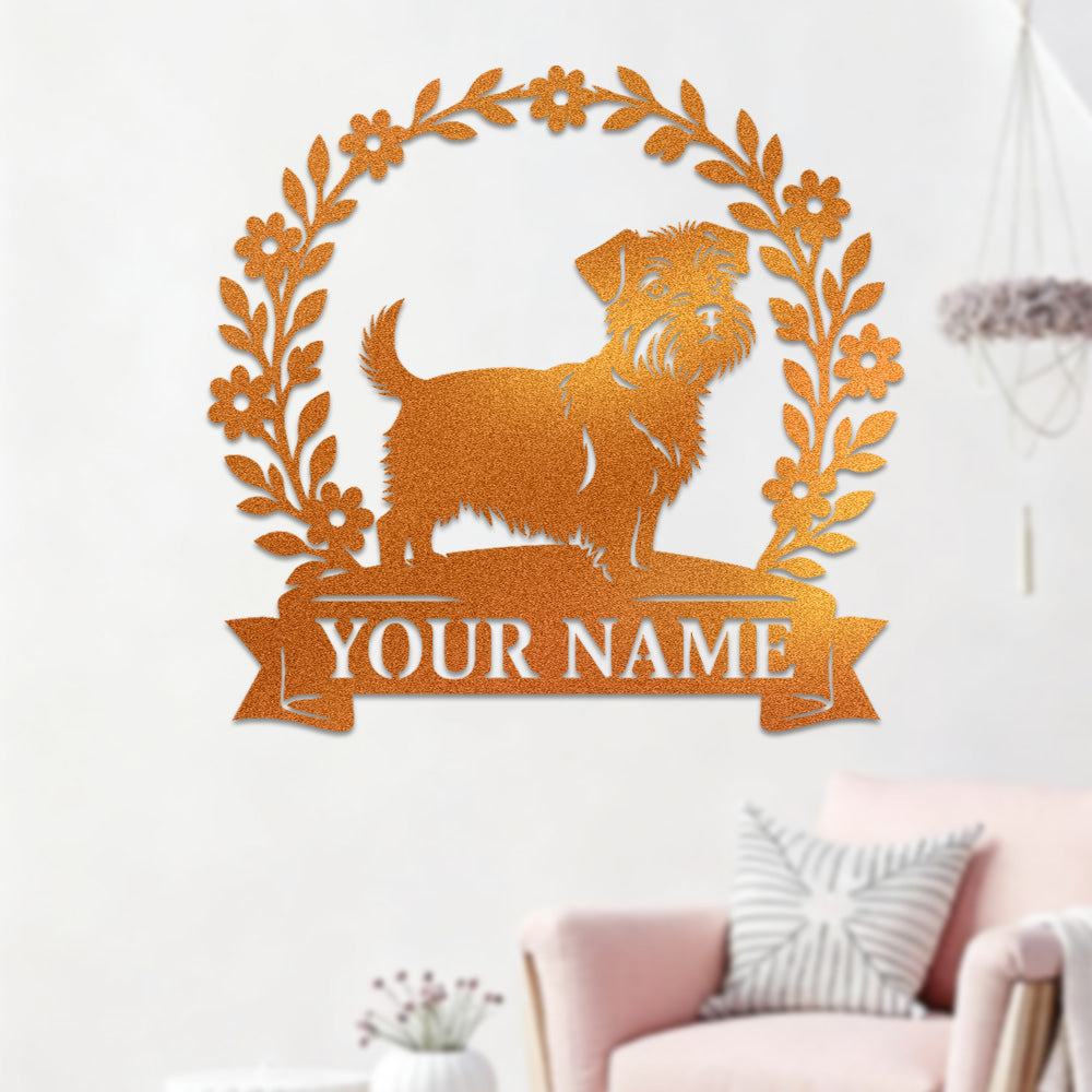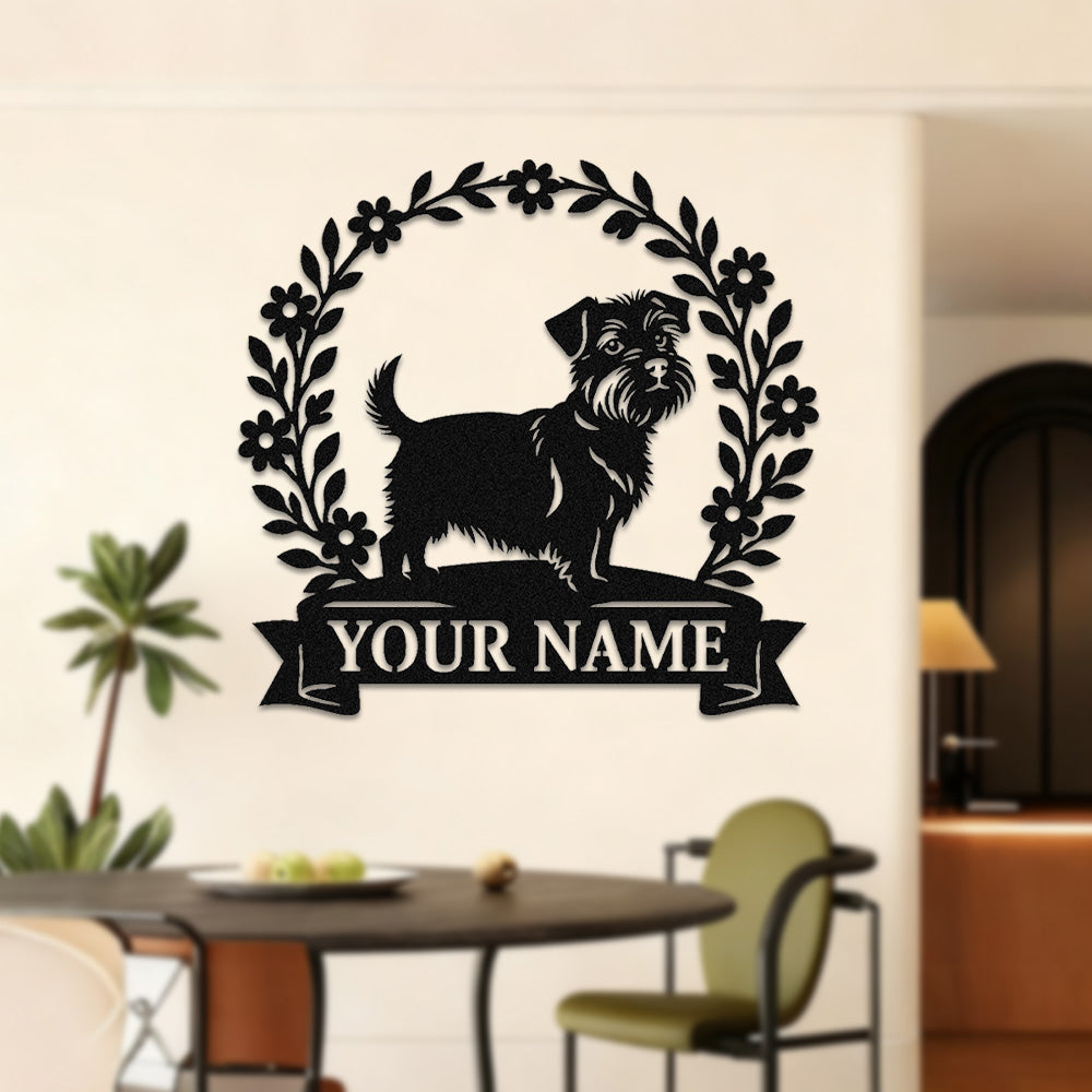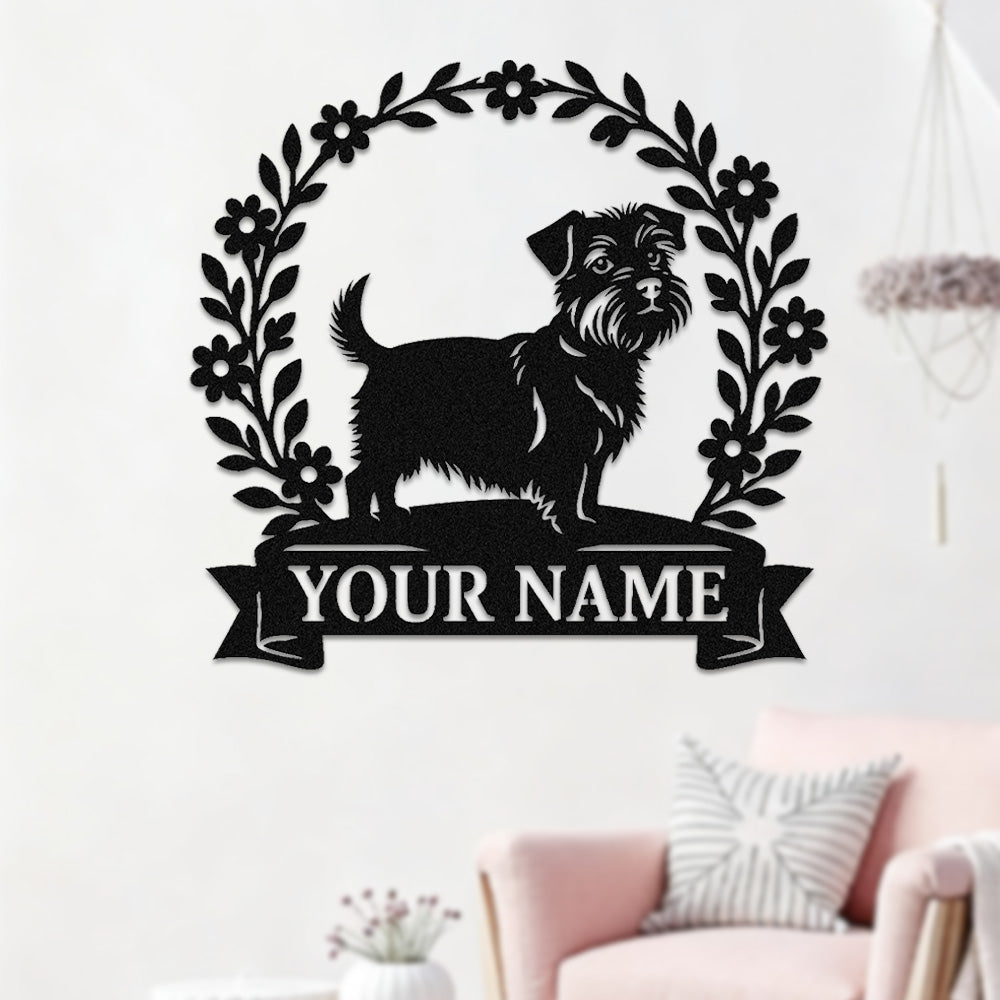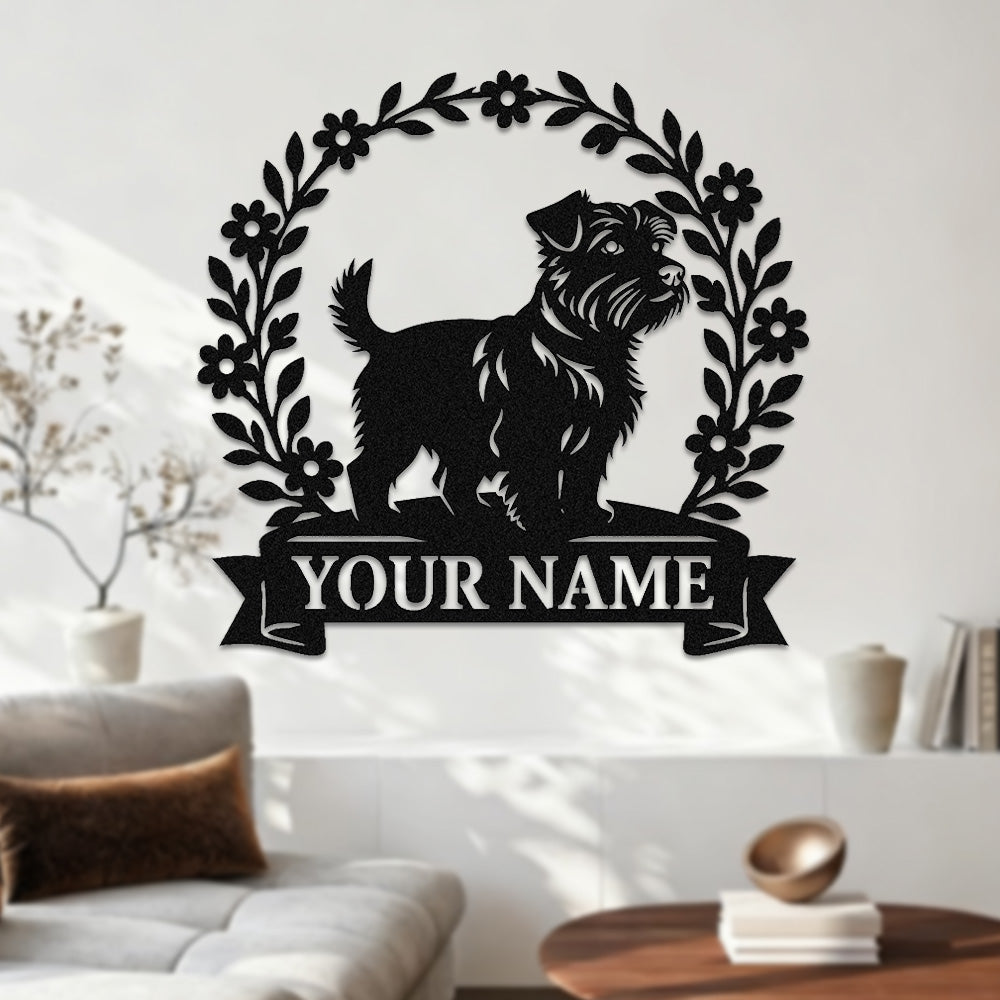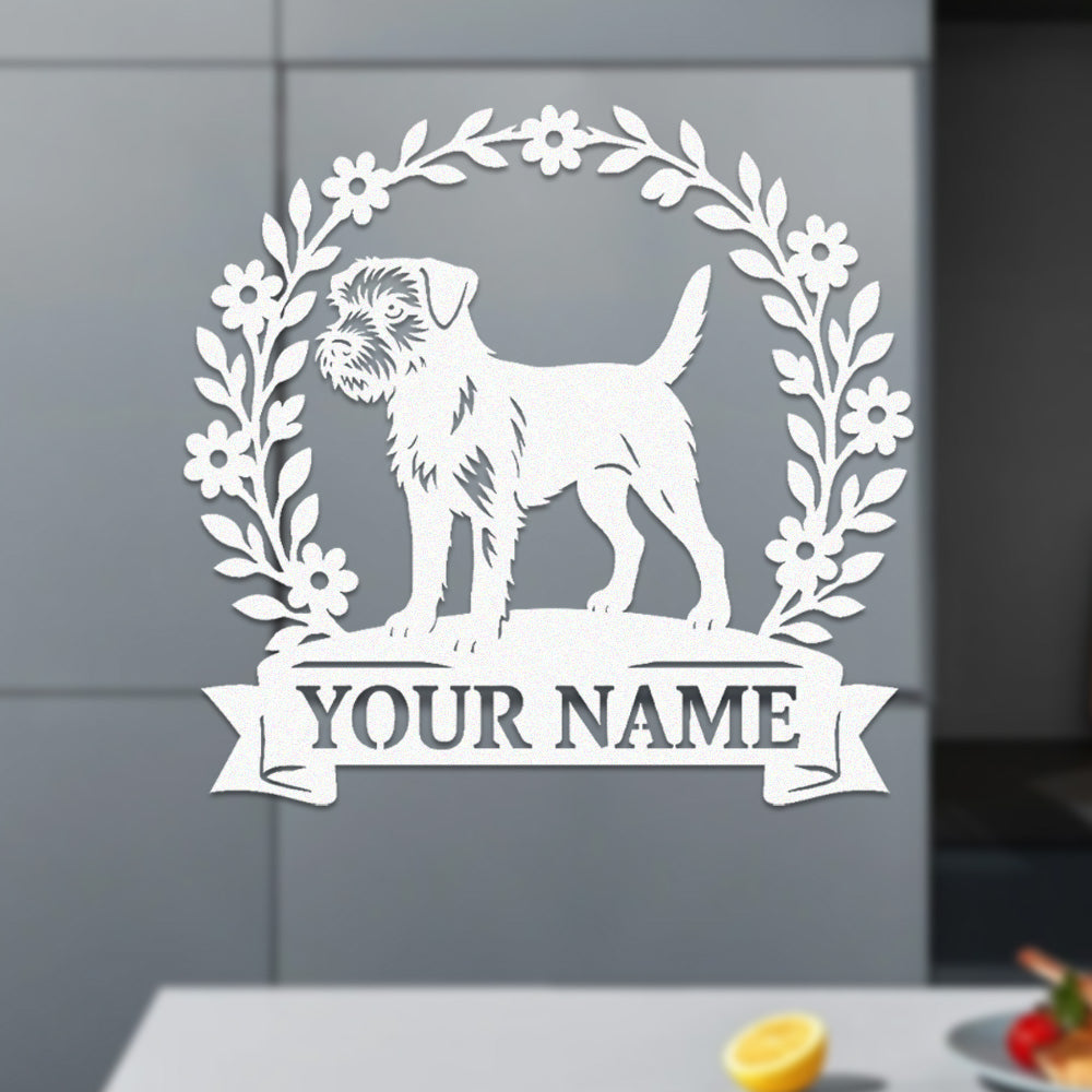 Border Terrier Wreath Metal Wall Art Dog Lover Personalized Memorial Metal Sign