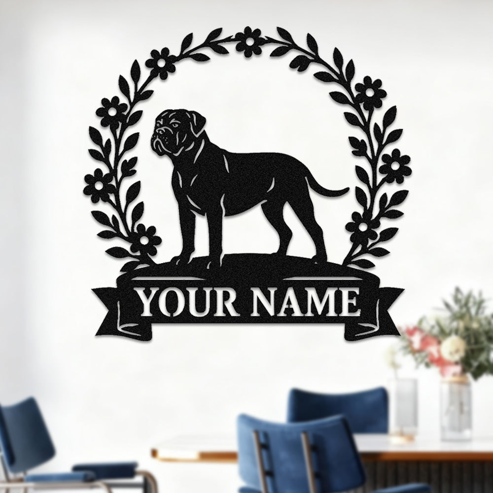 Boerboel Wreath Metal Wall Art Dog Lover Personalized Memorial Metal Sign