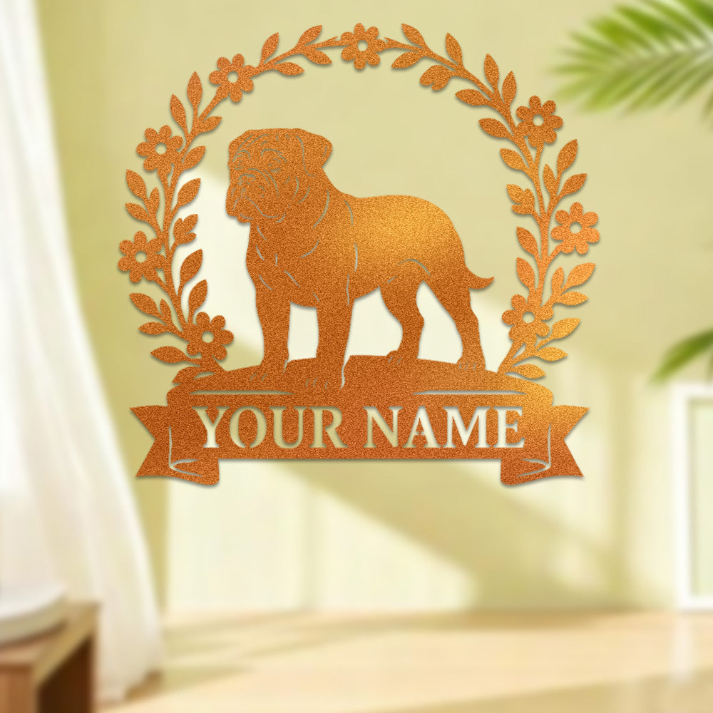 Bullmastiff Wreath Metal Wall Art Dog Lover Personalized Memorial Metal Sign