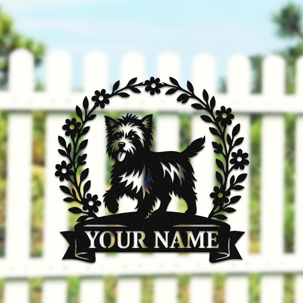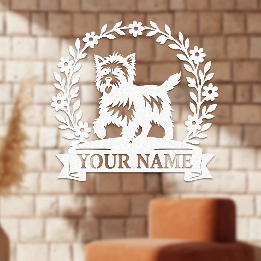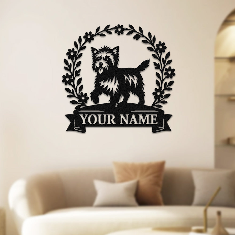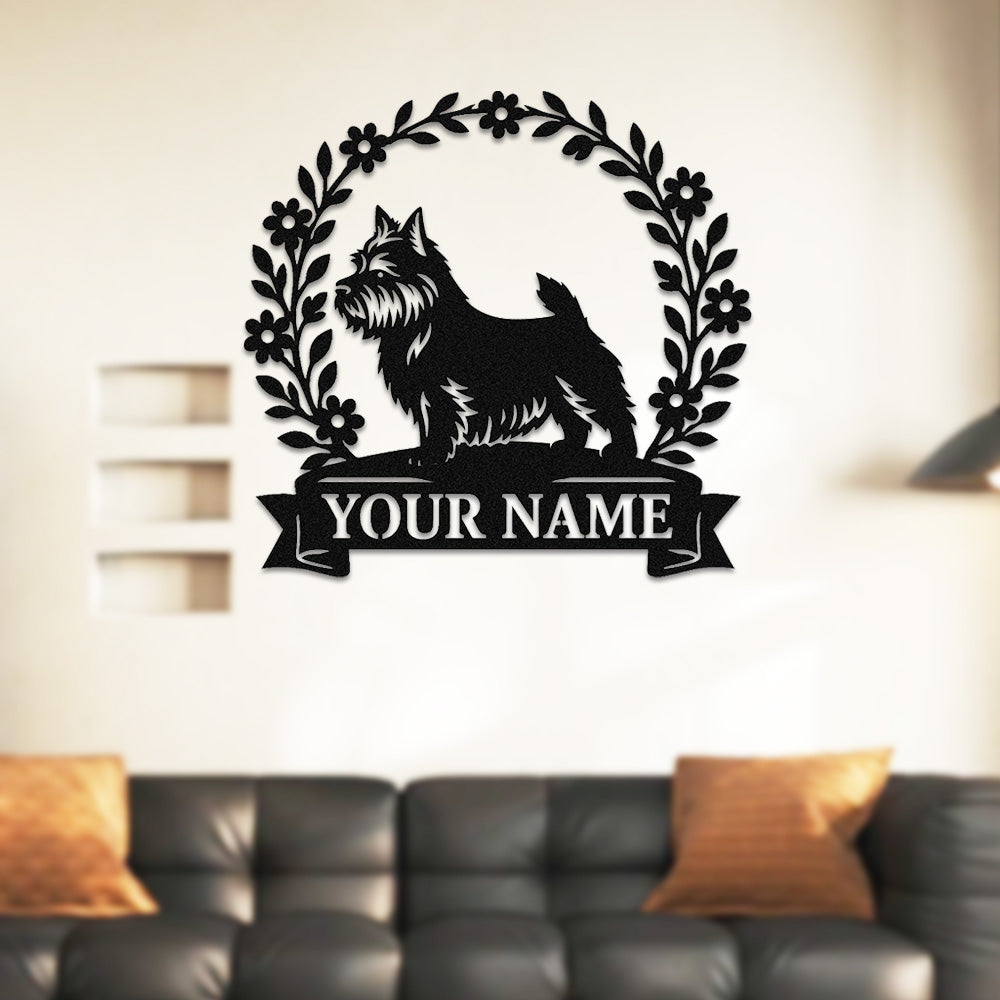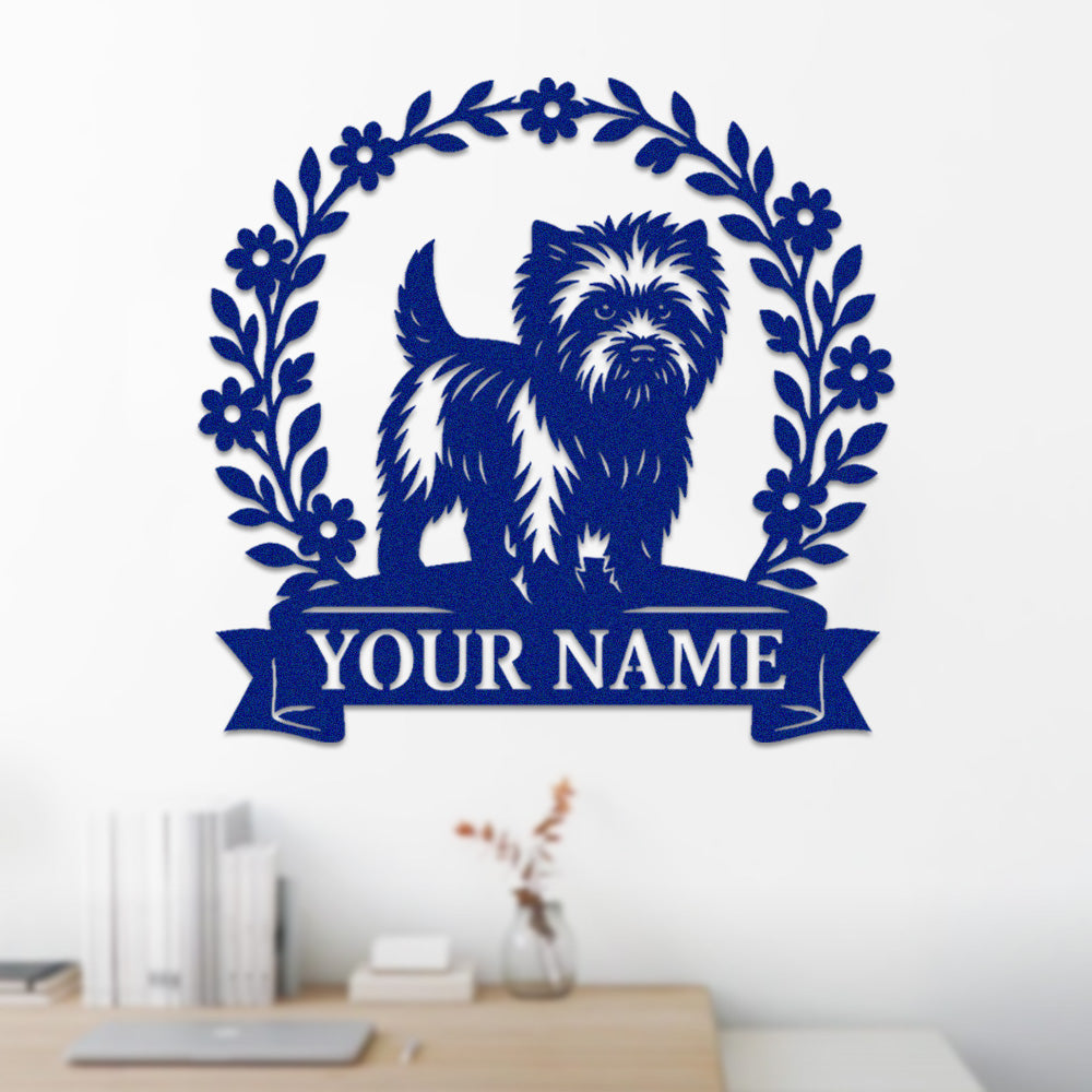 Cairn Terrier Wreath Metal Wall Art Dog Lover Personalized Memorial Metal Sign