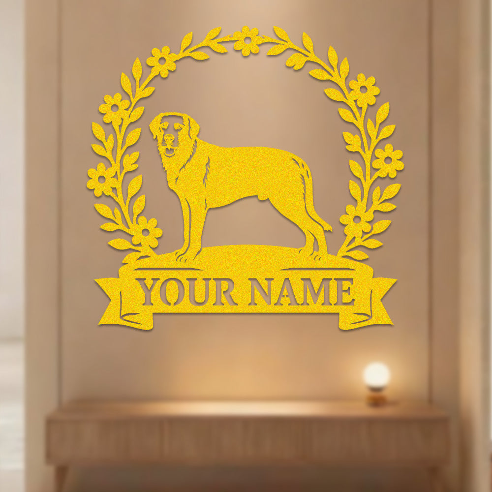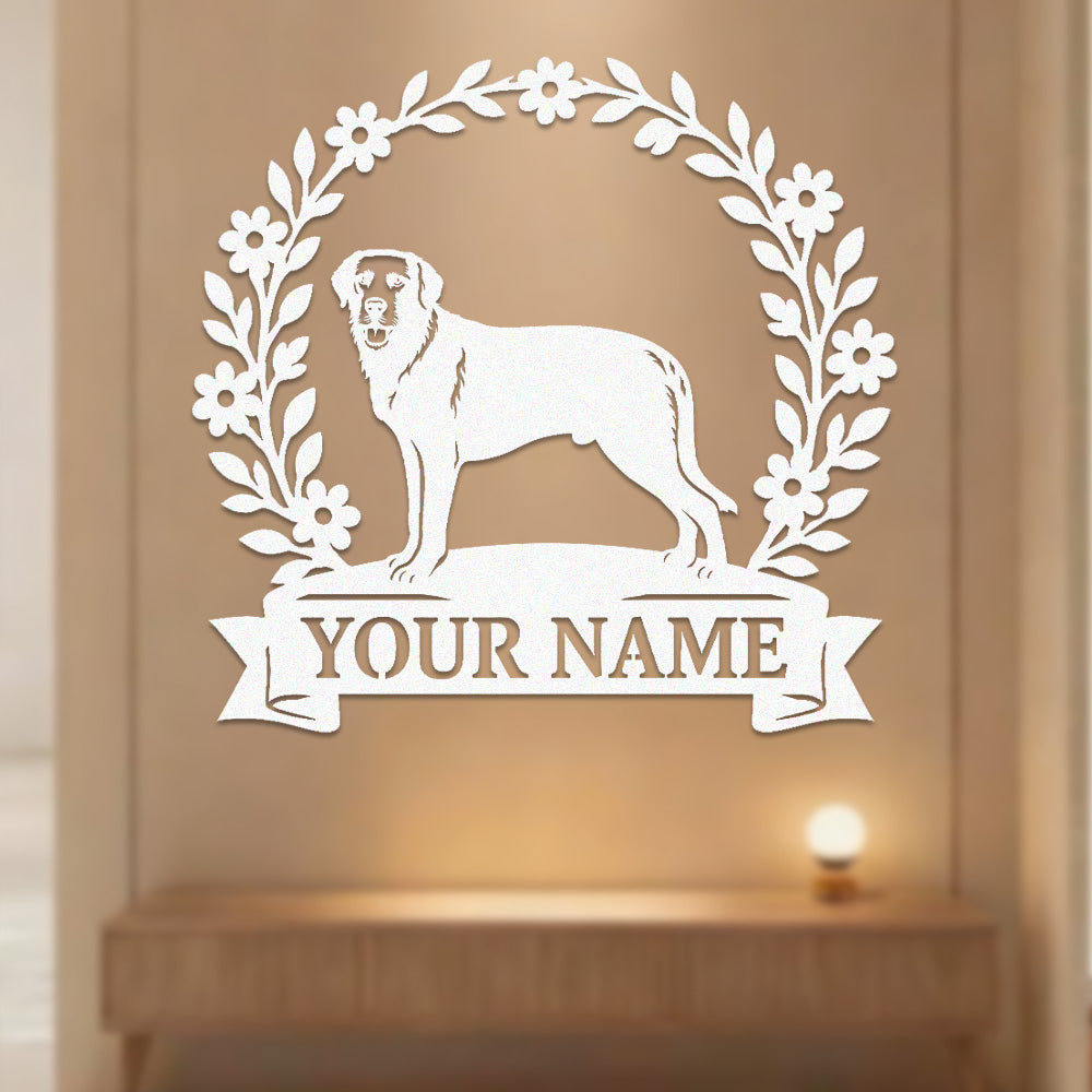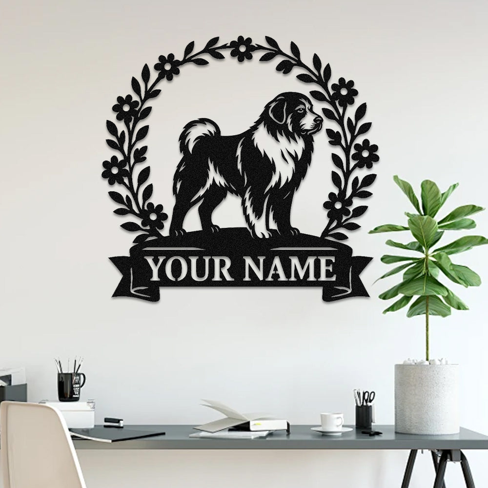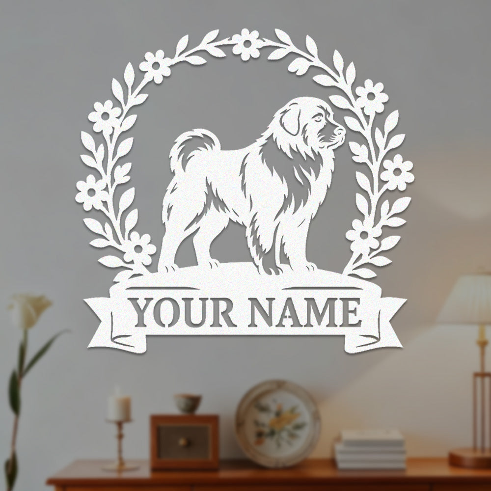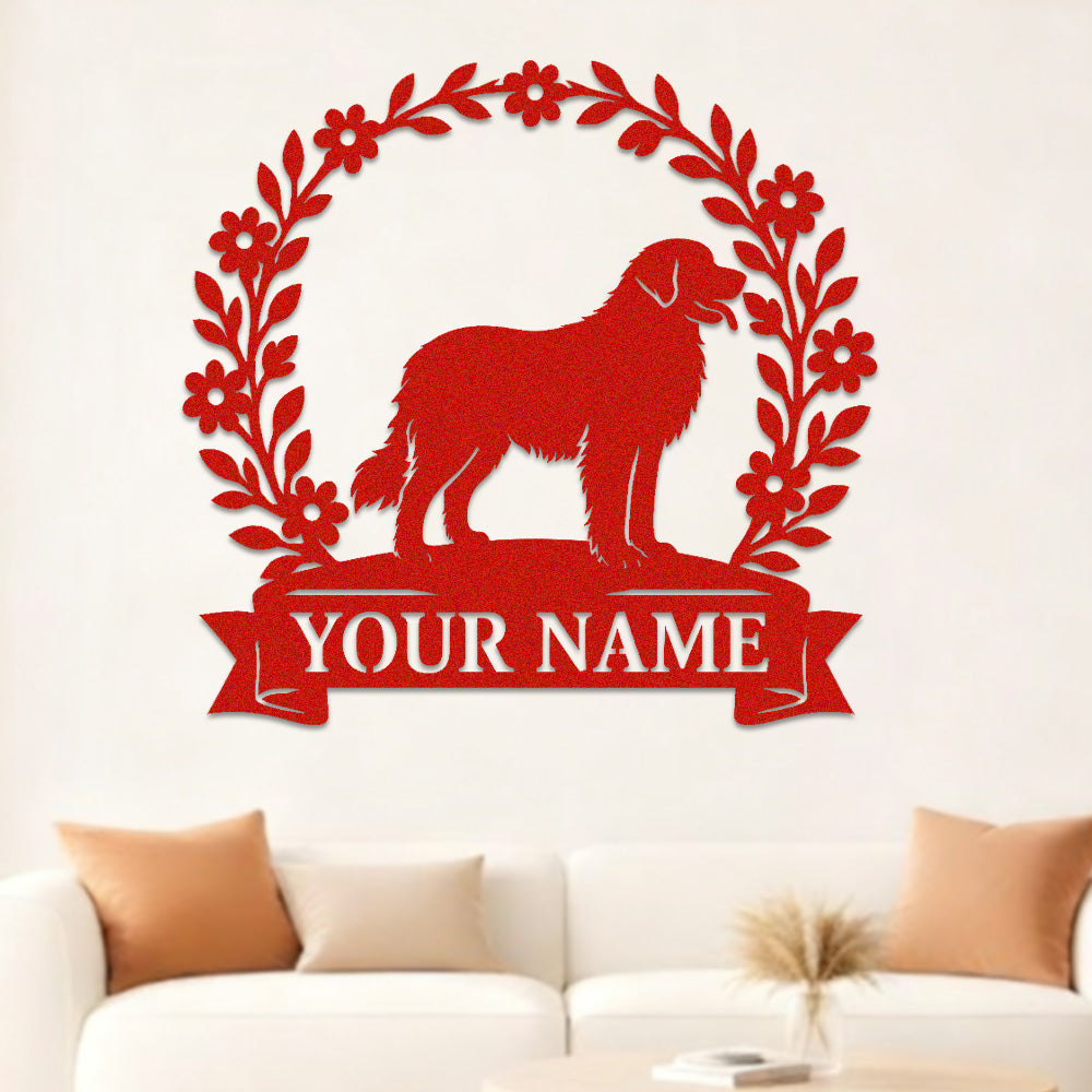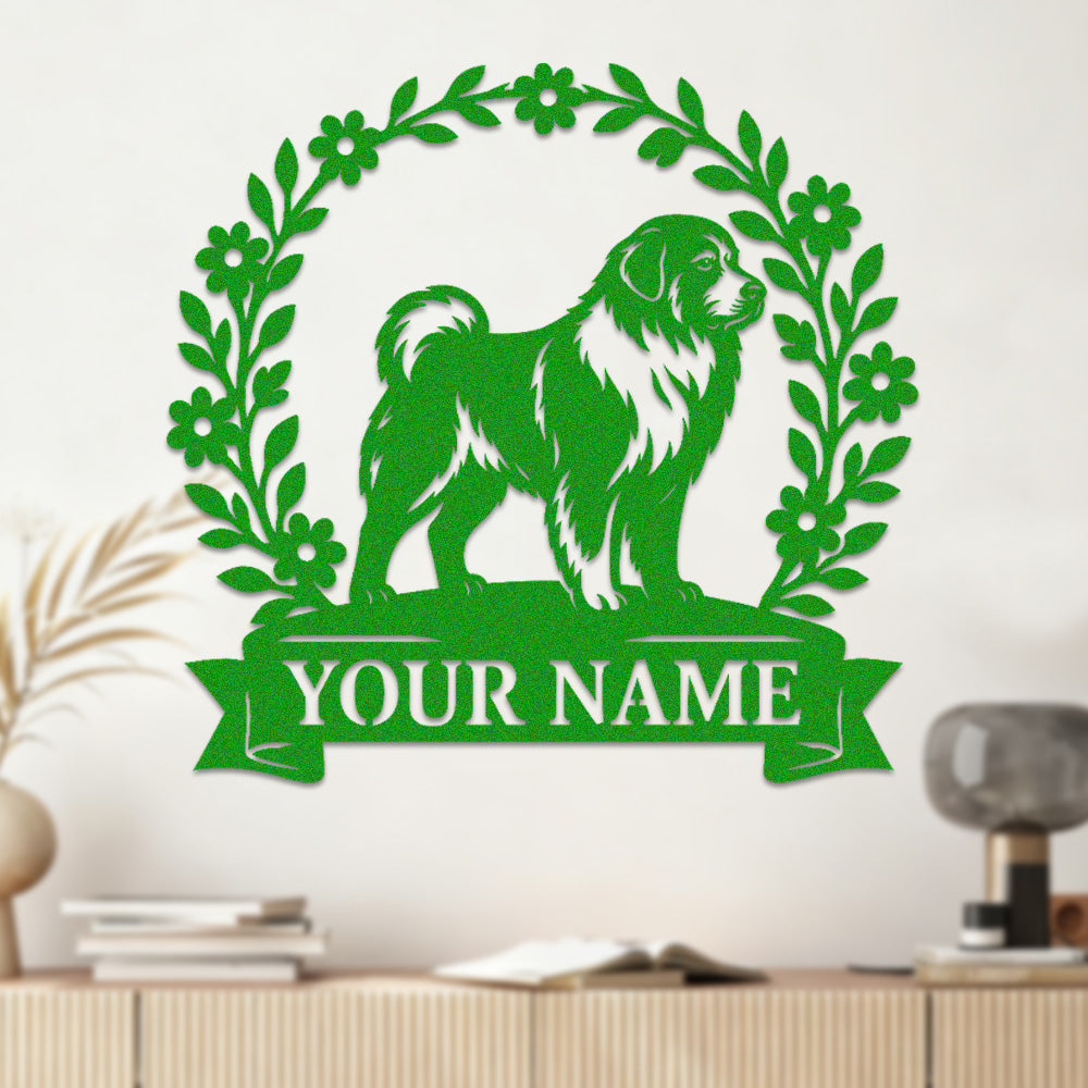 Leonberger Wreath Metal Wall Art Dog Lover Personalized Memorial Metal Sign