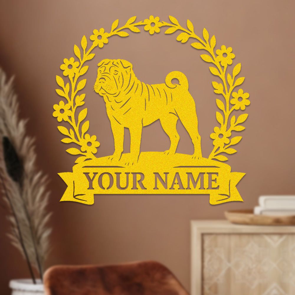 Chinese Shar-Pei Wreath Metal Wall Art Dog Lover Personalized Memorial Metal Sign