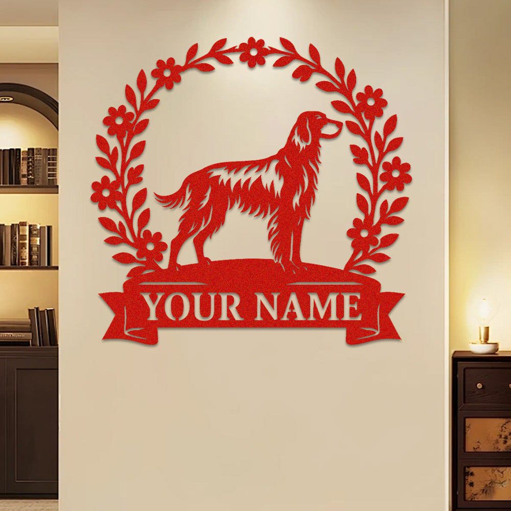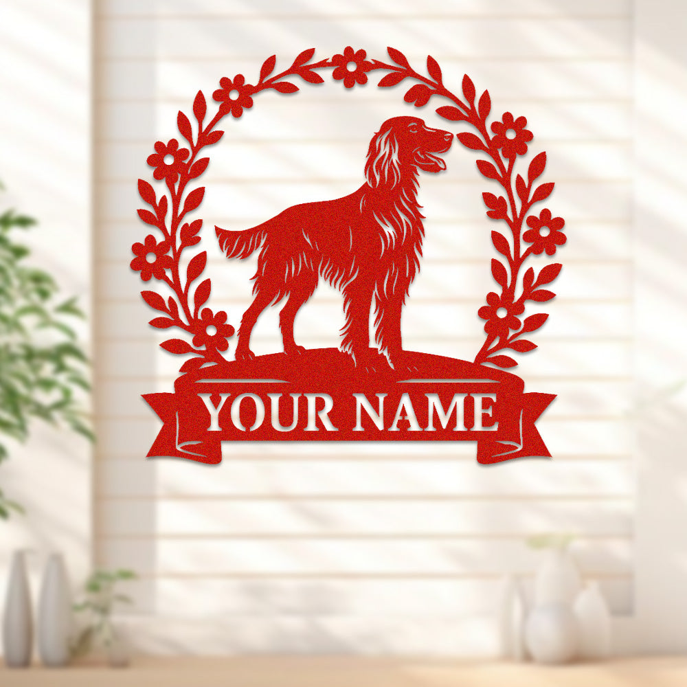 Irish Setter Wreath Metal Wall Art Dog Lover Personalized Memorial Metal Sign