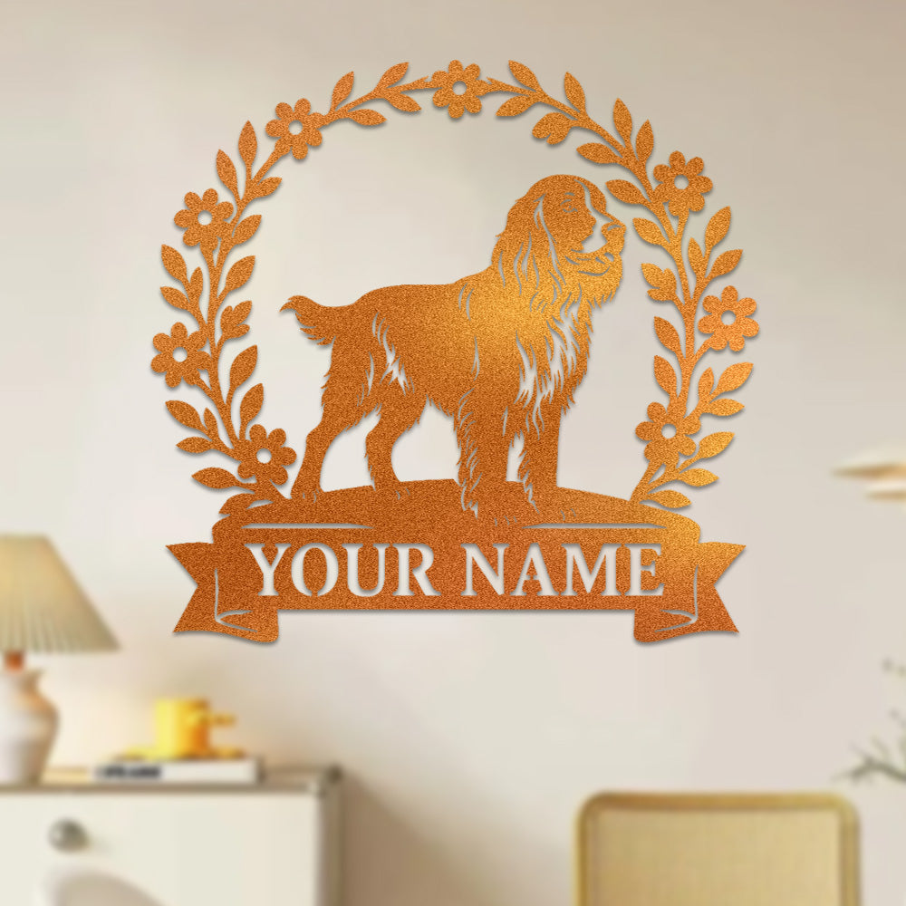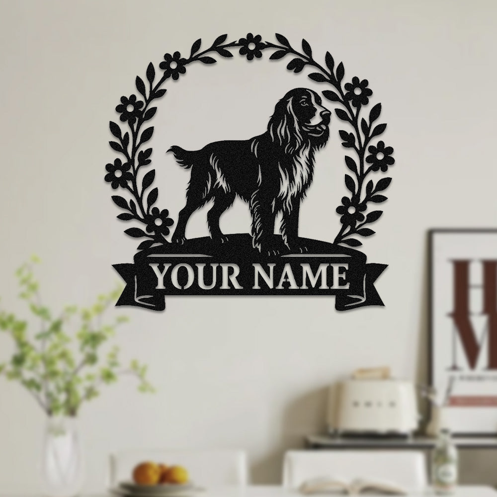 Field Spaniel Wreath Metal Wall Art Dog Lover Personalized Memorial Metal Sign