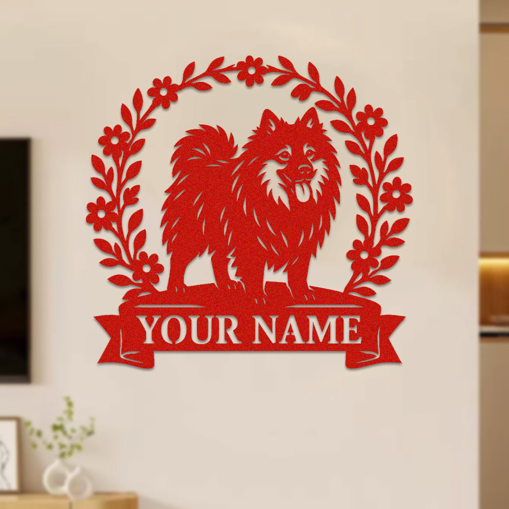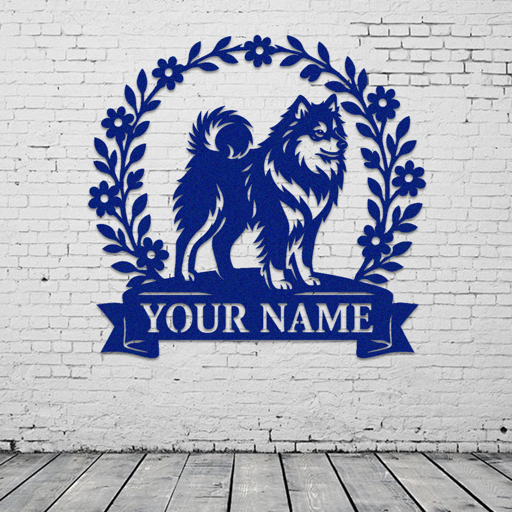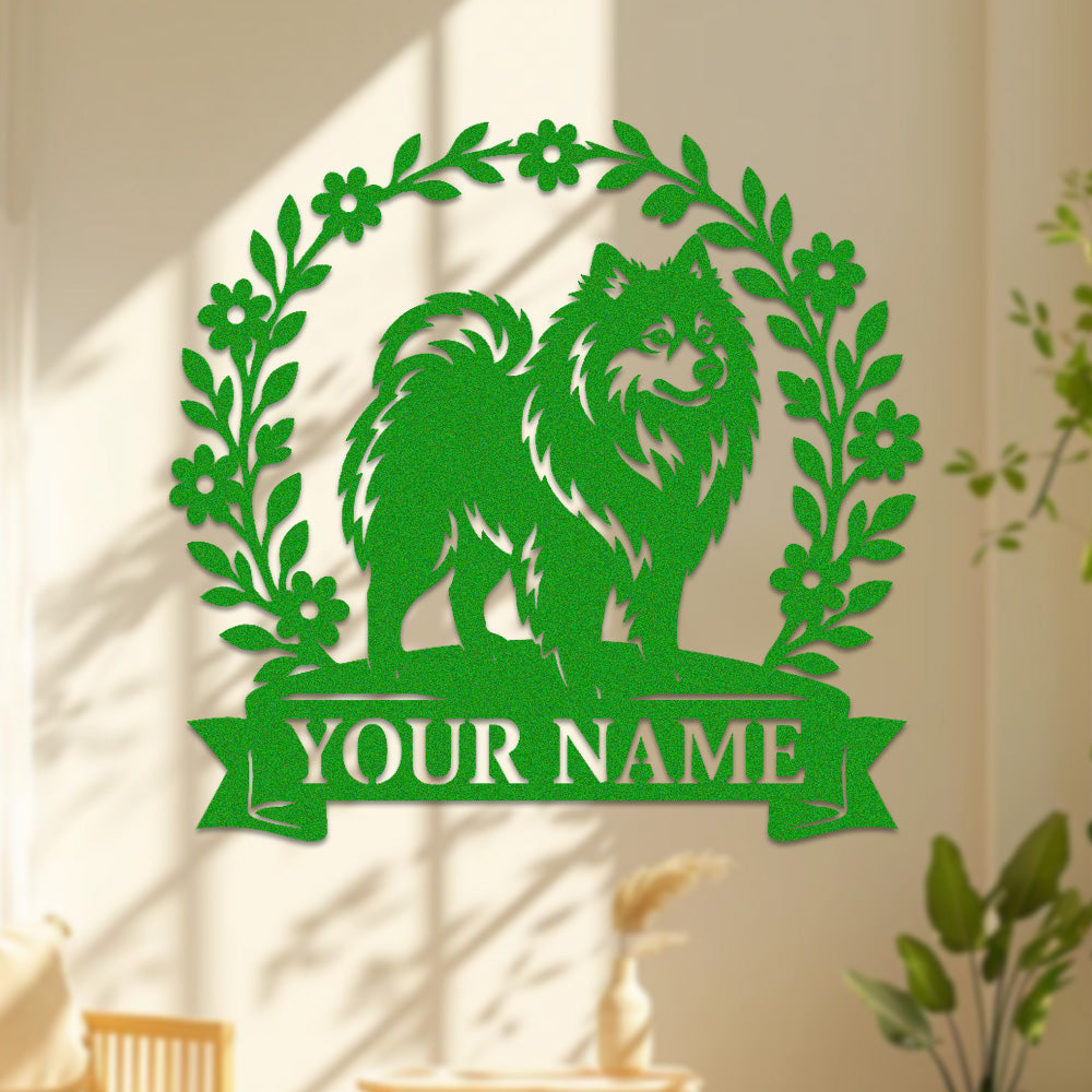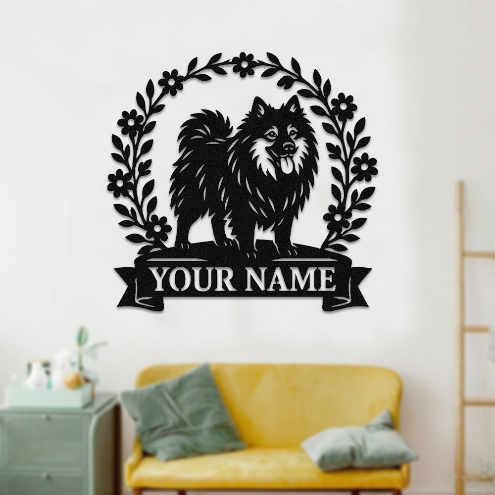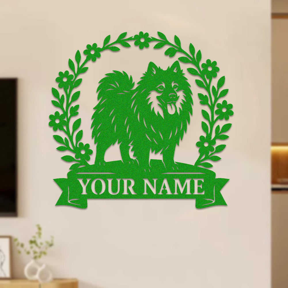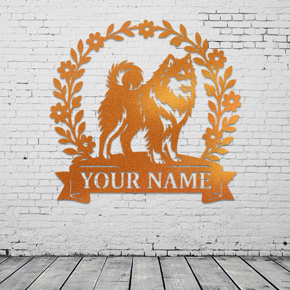 Keeshond Wreath Metal Wall Art Dog Lover Personalized Memorial Metal Sign