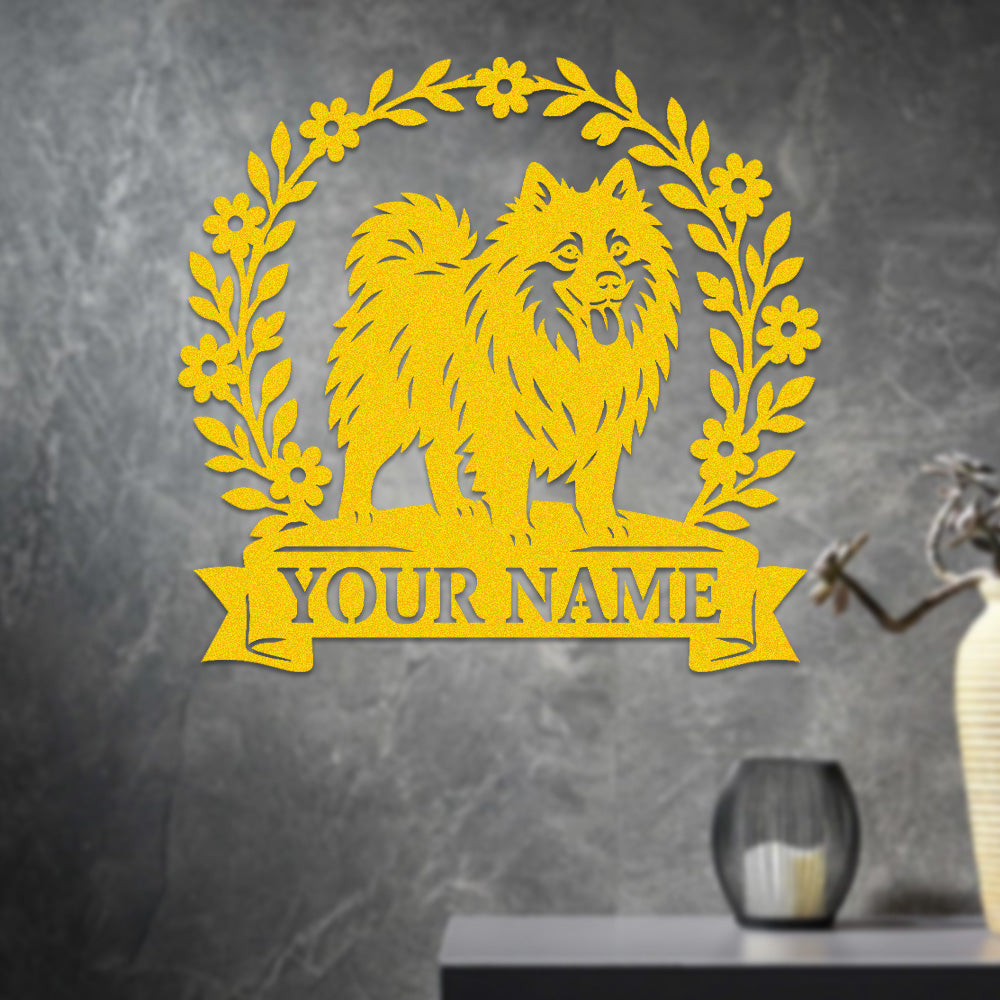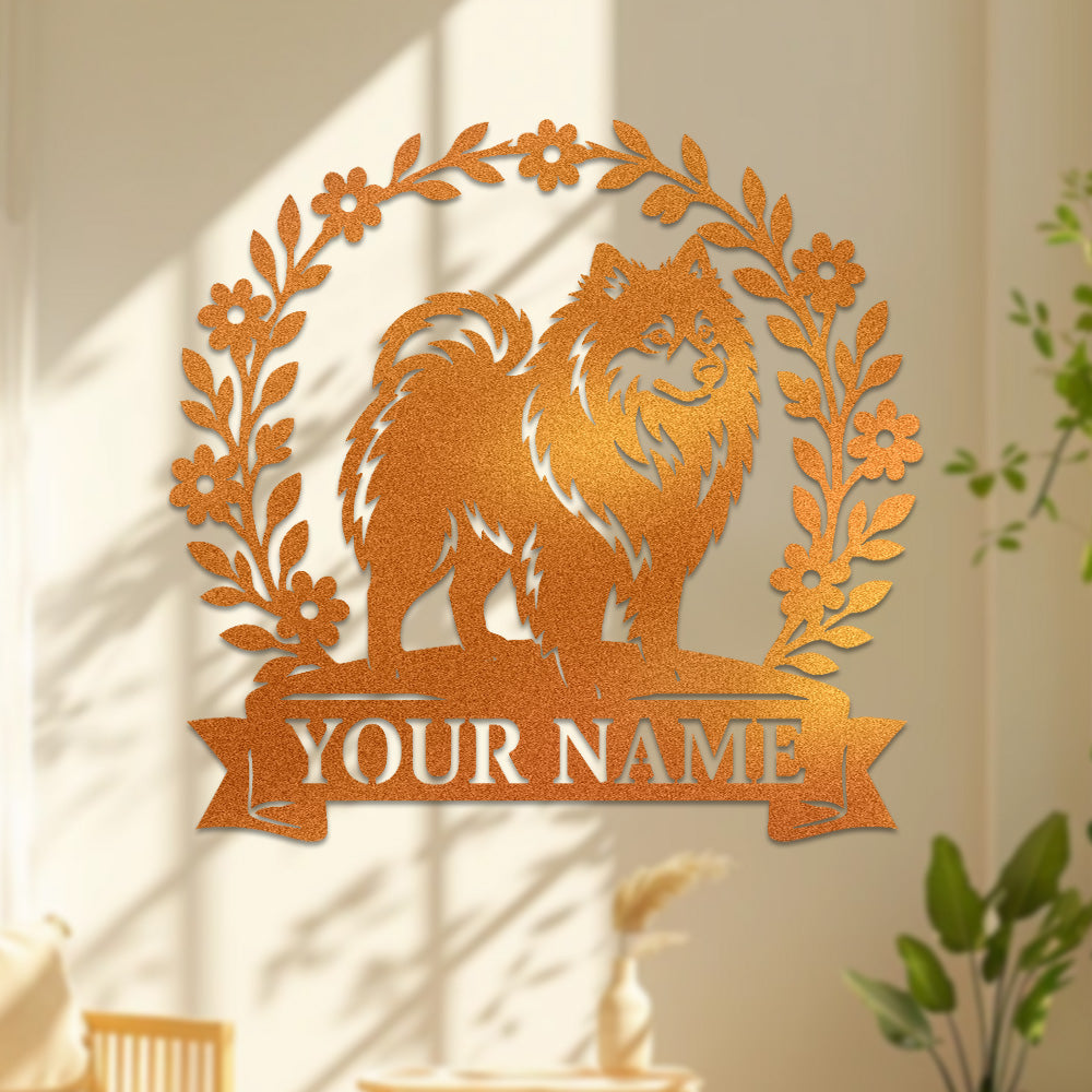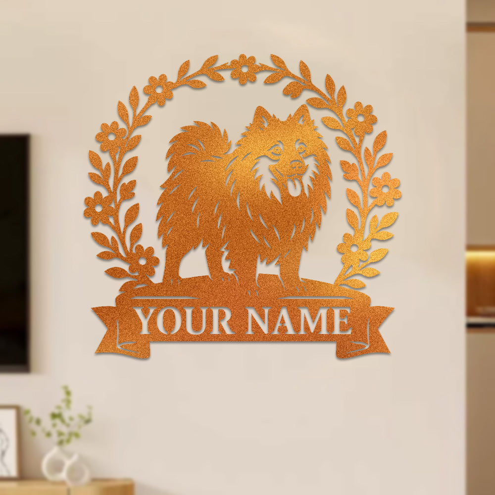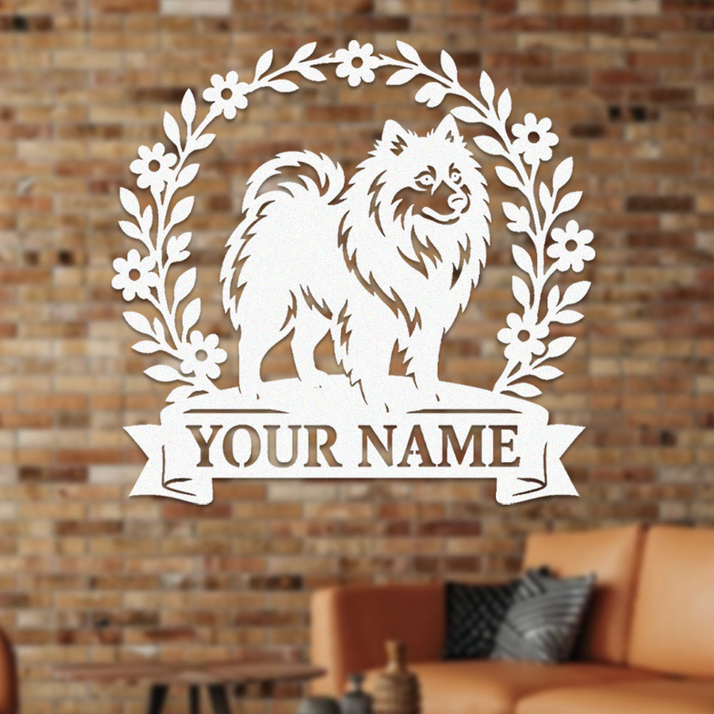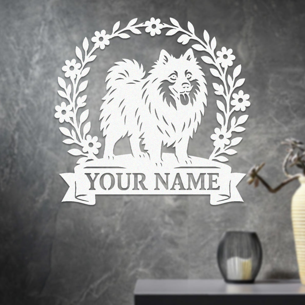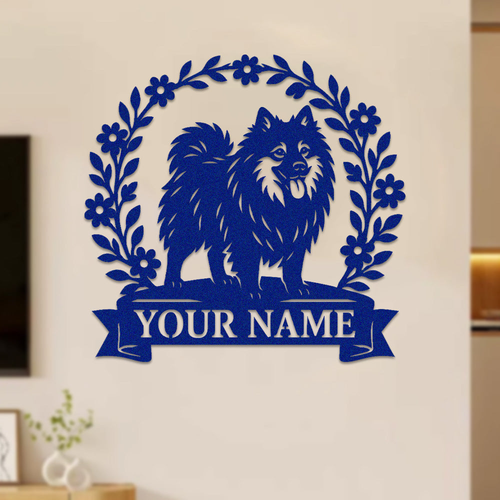 Keeshond Wreath Metal Wall Art Dog Lover Personalized Memorial Metal Sign