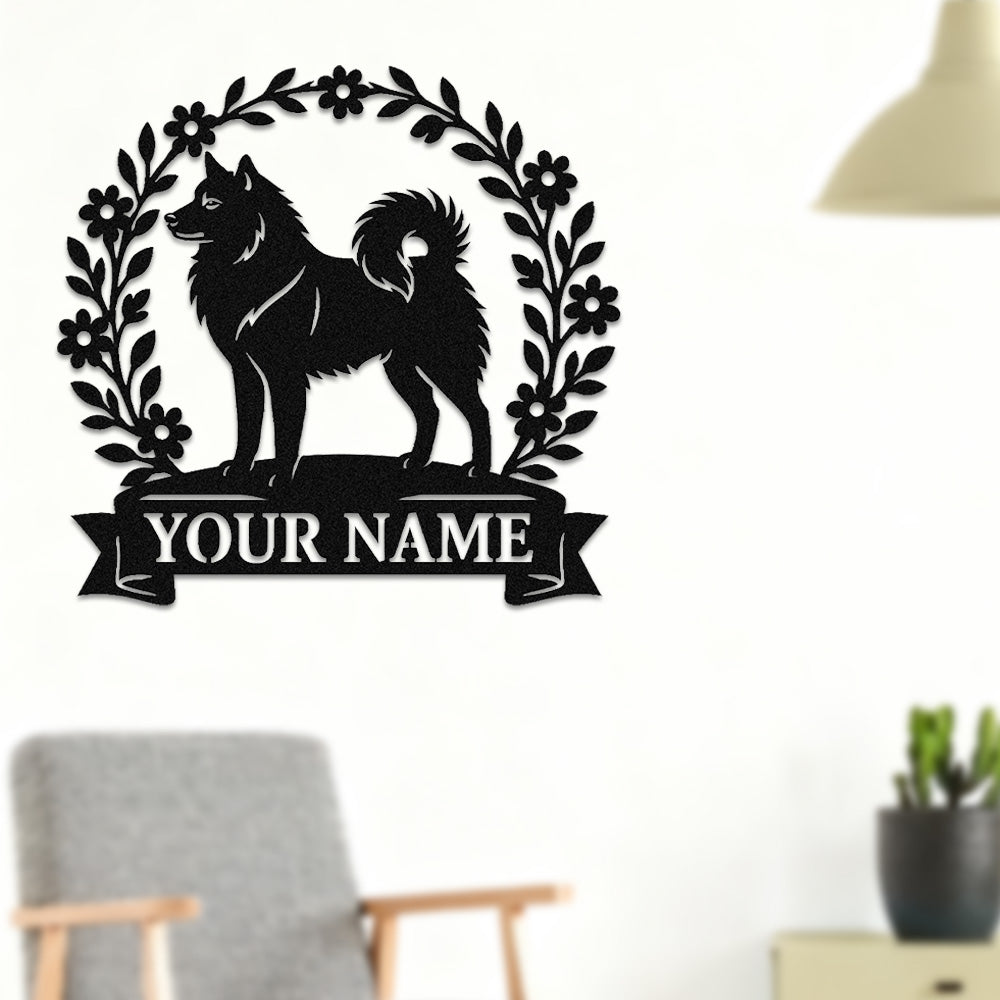 Icelandic Sheepdog Wreath Metal Wall Art Dog Lover Personalized Memorial Metal Sign