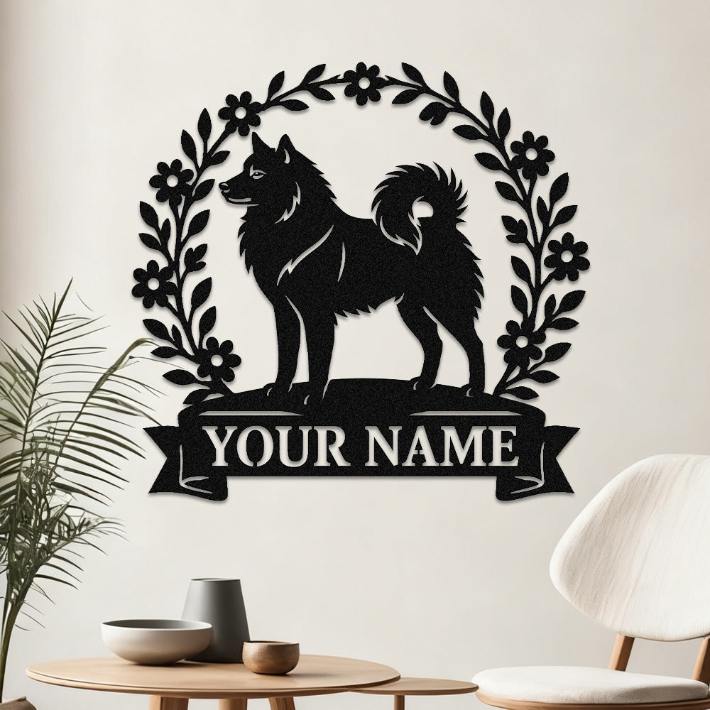Finnish Lapphund Wreath Metal Wall Art Dog Lover Personalized Memorial Metal Sign