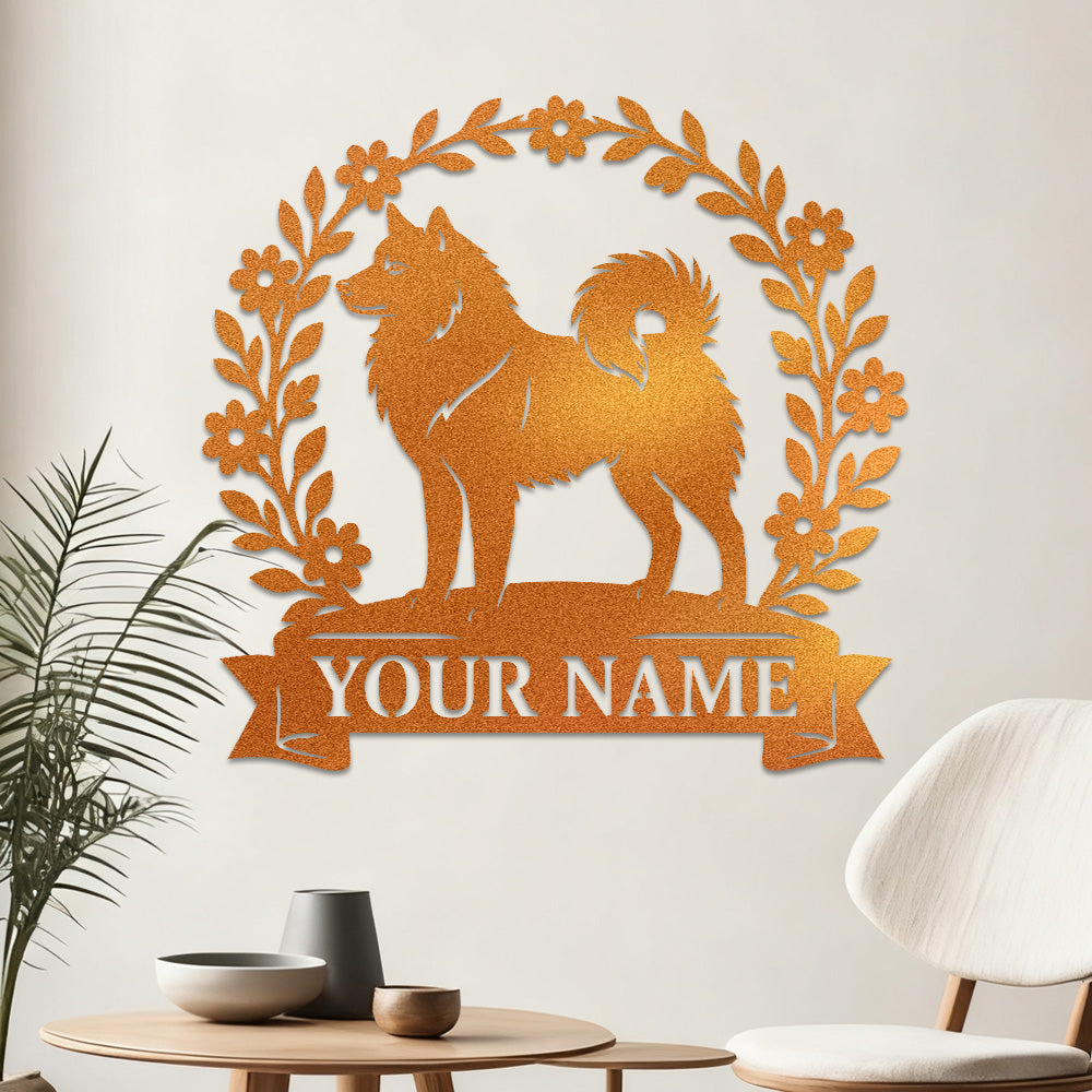 Finnish Spitz Wreath Metal Wall Art Dog Lover Personalized Memorial Metal Sign