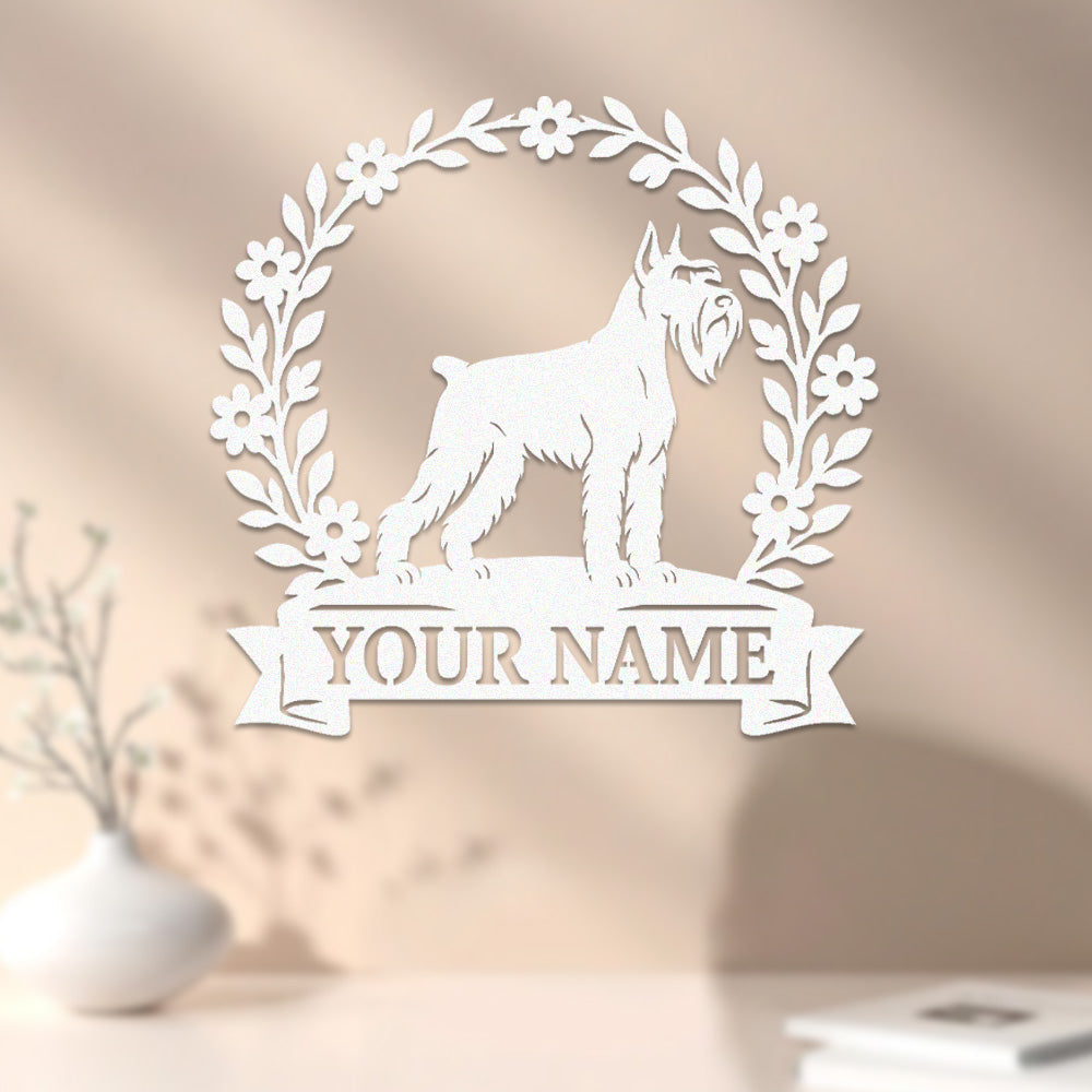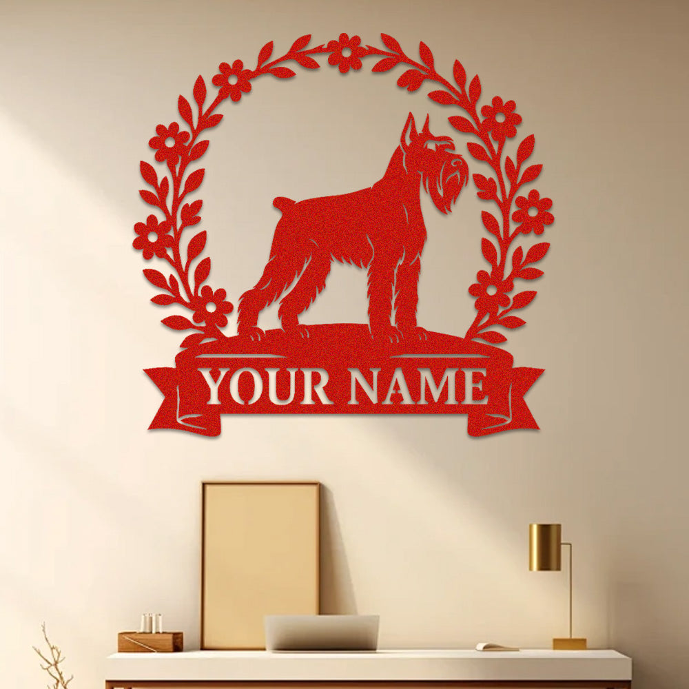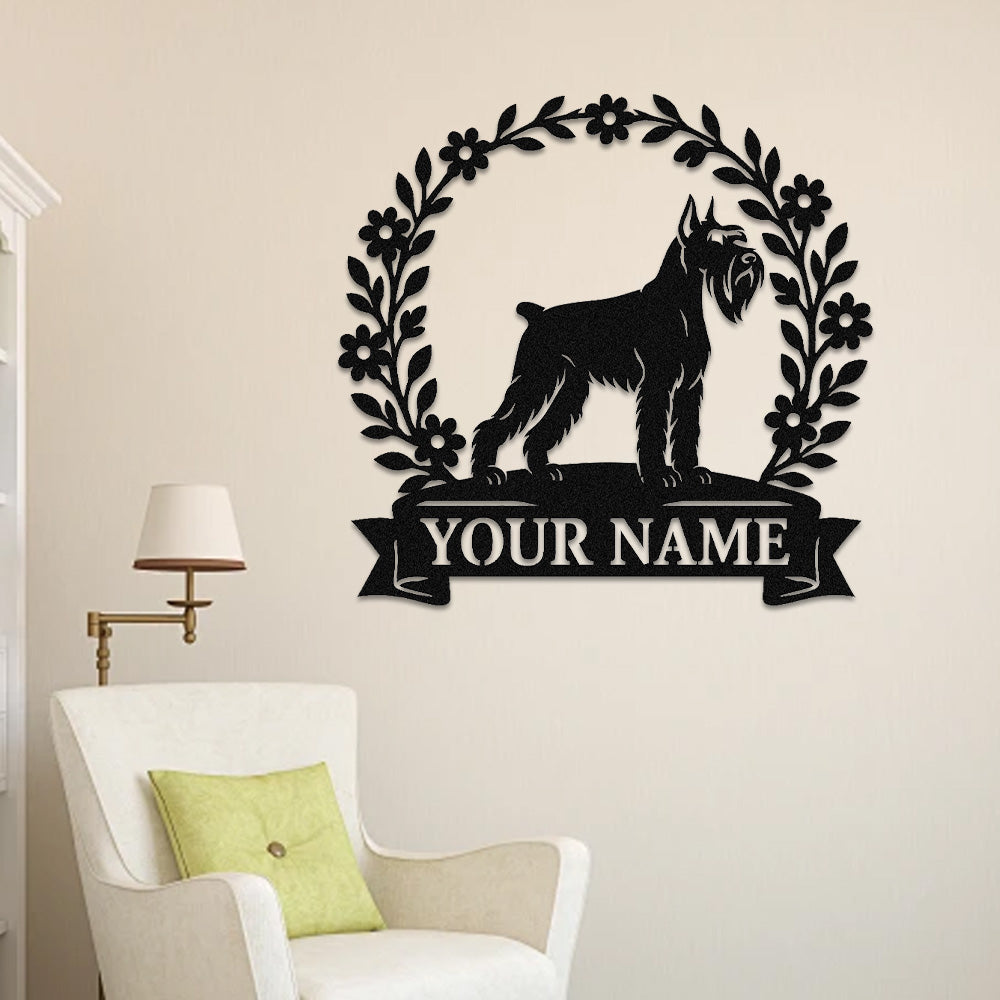 Giant Schnauzer Wreath Metal Wall Art Dog Lover Personalized Memorial Metal Sign
