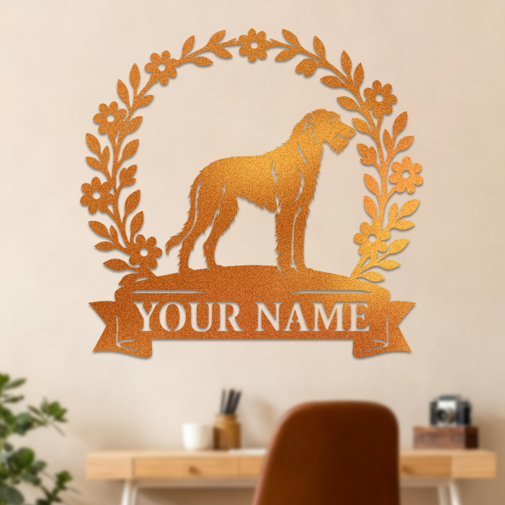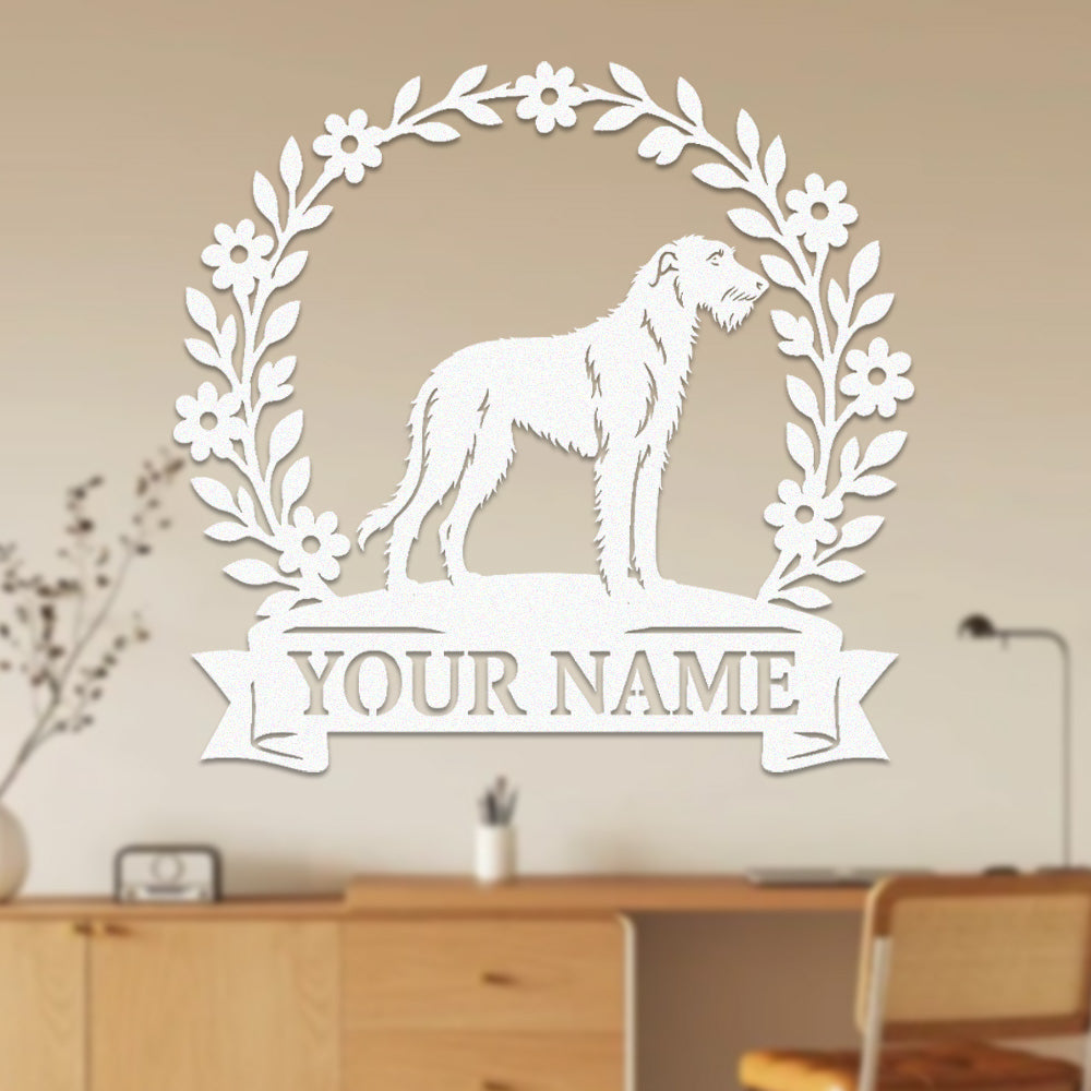 Irish Wolfhound Wreath Metal Wall Art Dog Lover Personalized Memorial Metal Sign