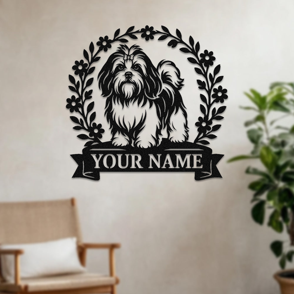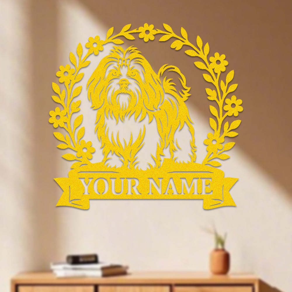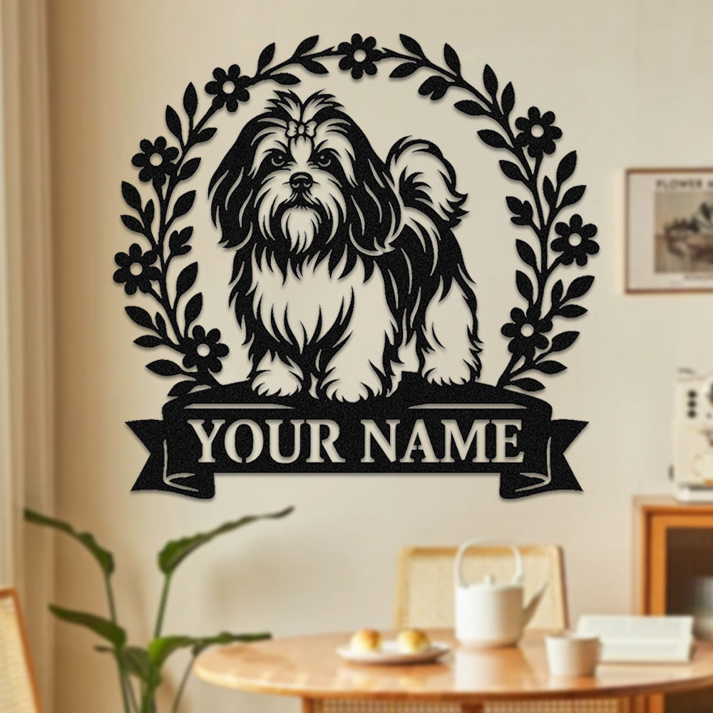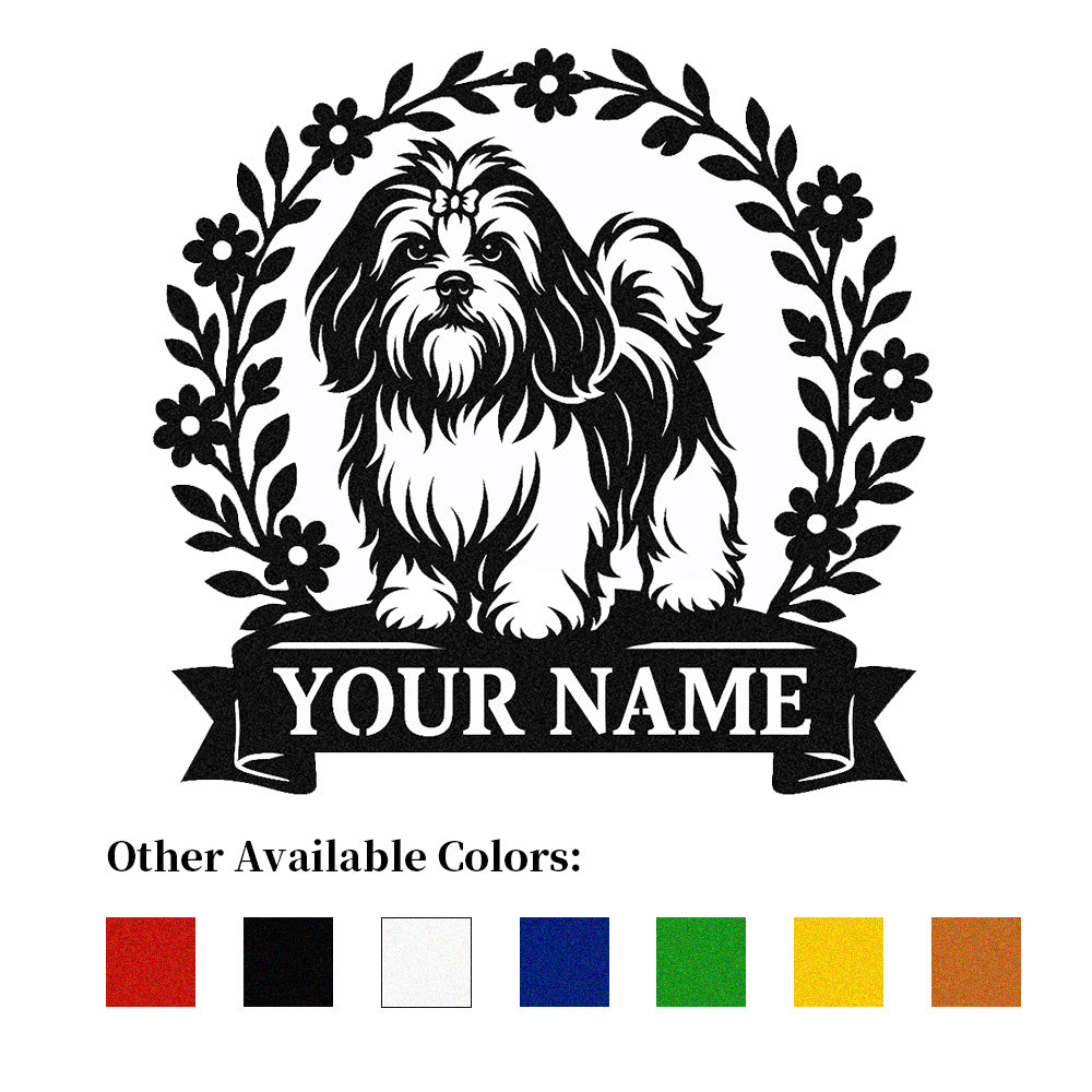 Lhasa Apso Wreath Metal Wall Art Dog Lover Personalized Memorial Metal Sign
