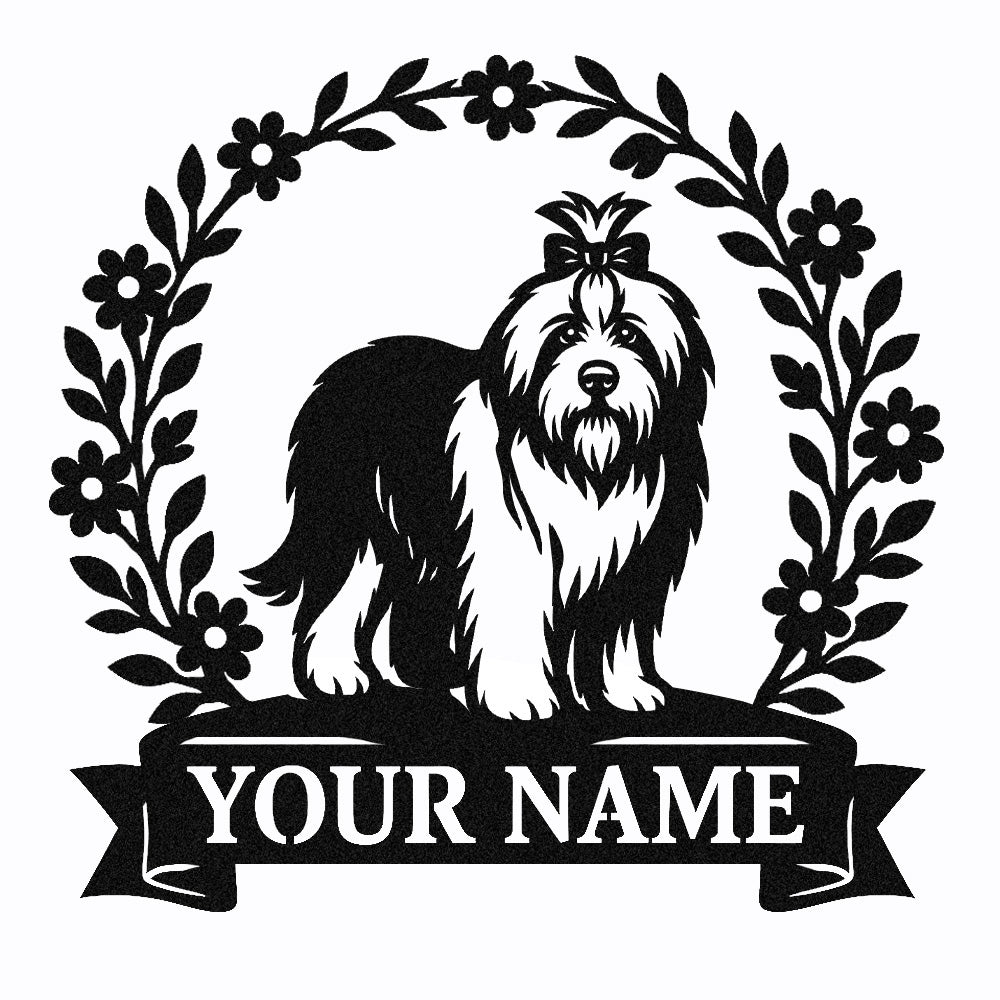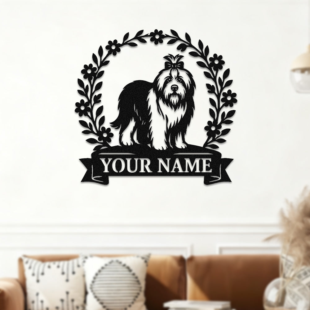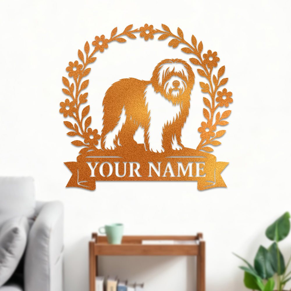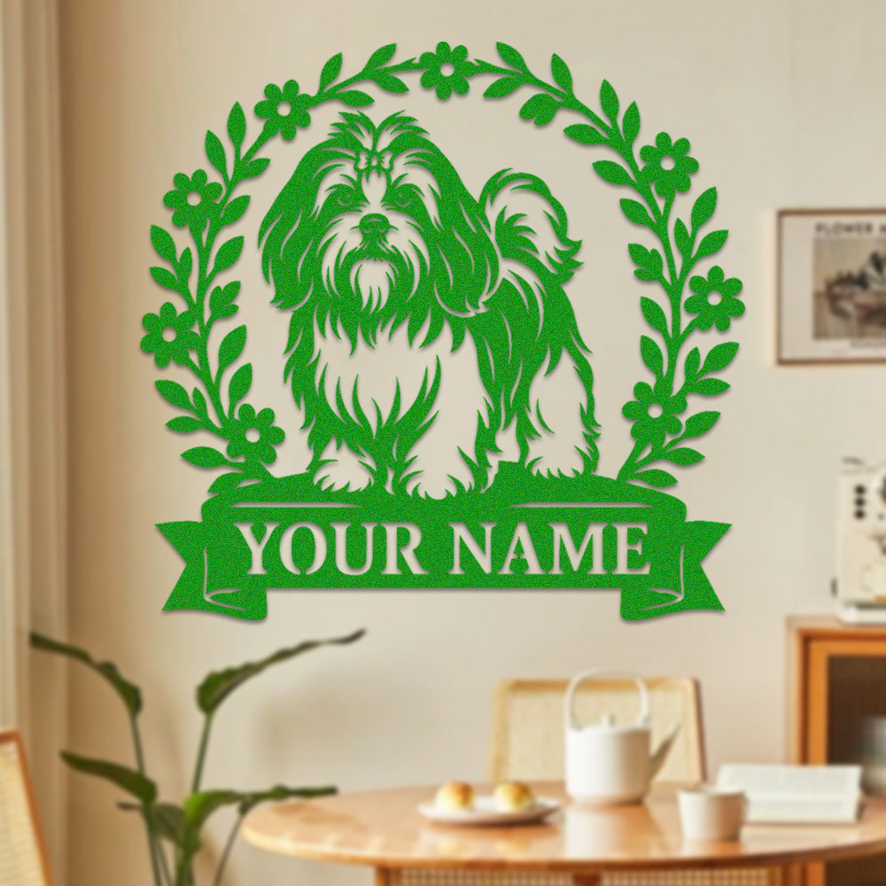 Lhasa Apso Wreath Metal Wall Art Dog Lover Personalized Memorial Metal Sign