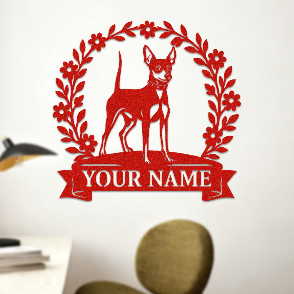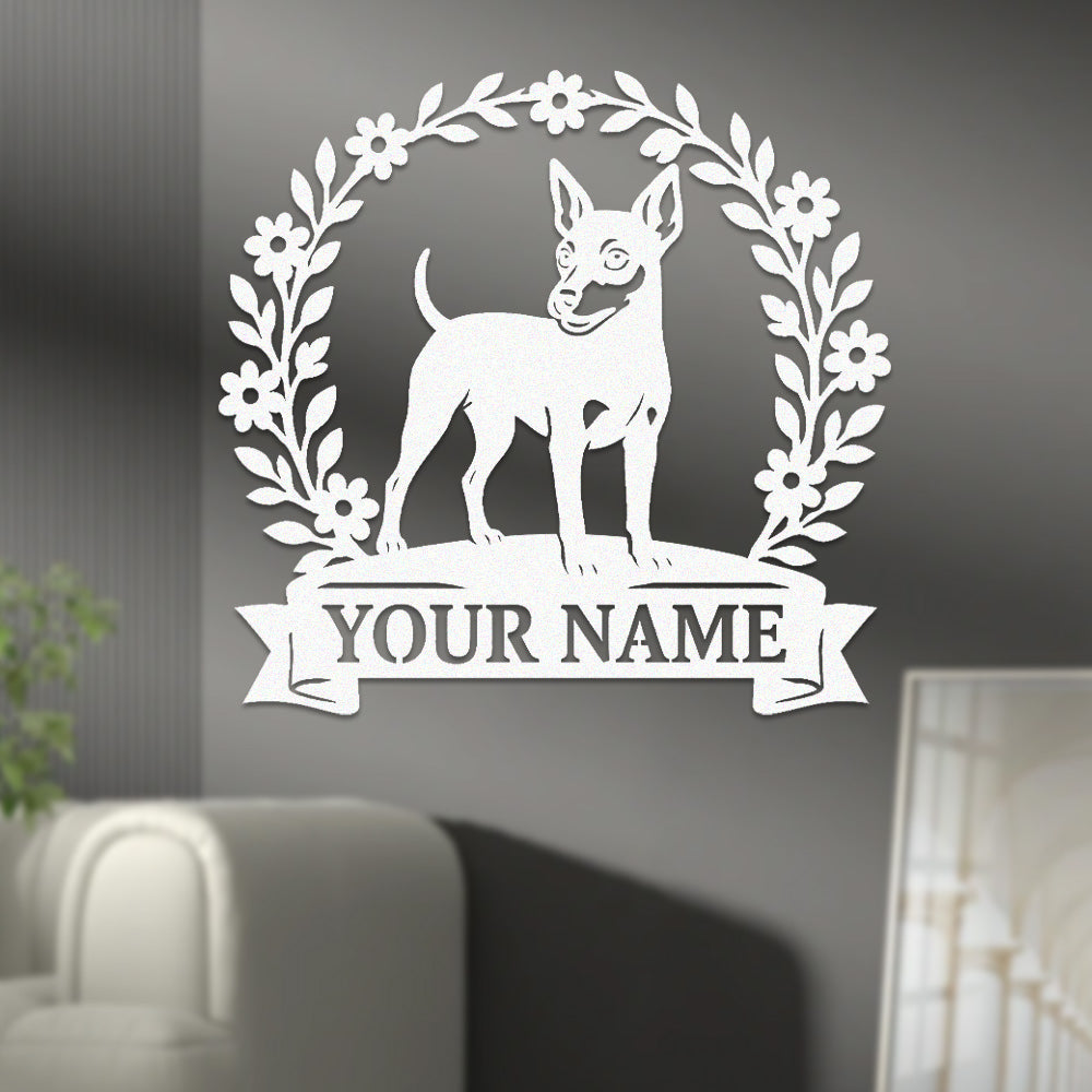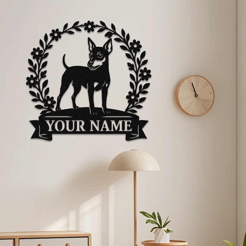 Miniature Pinscher Wreath Metal Wall Art Dog Lover Personalized Memorial Metal Sign
