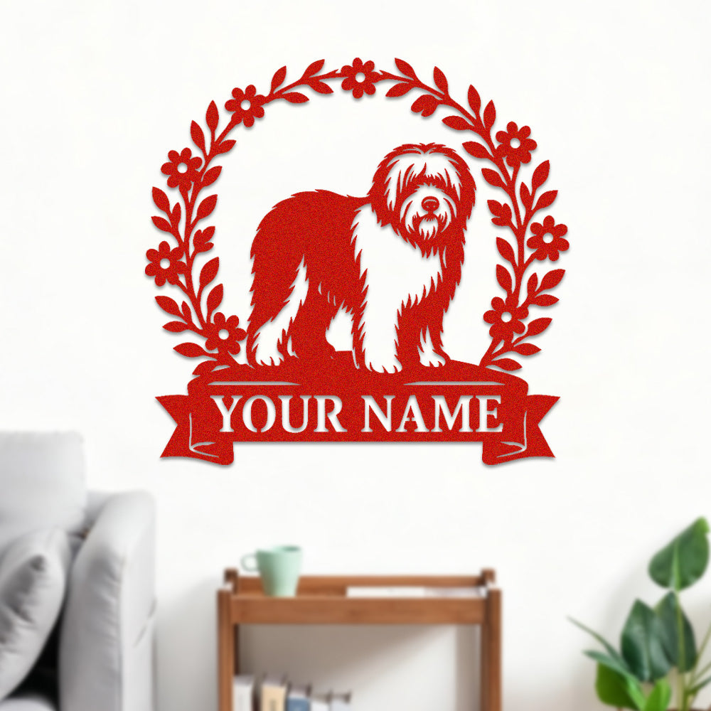Old English Sheepdog Wreath Metal Wall Art Dog Lover Personalized Memorial Metal Sign