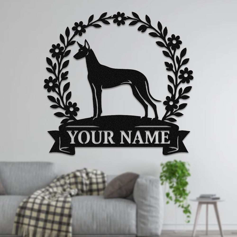Pharaoh Hound Wreath Metal Wall Art Dog Lover Personalized Memorial Metal Sign