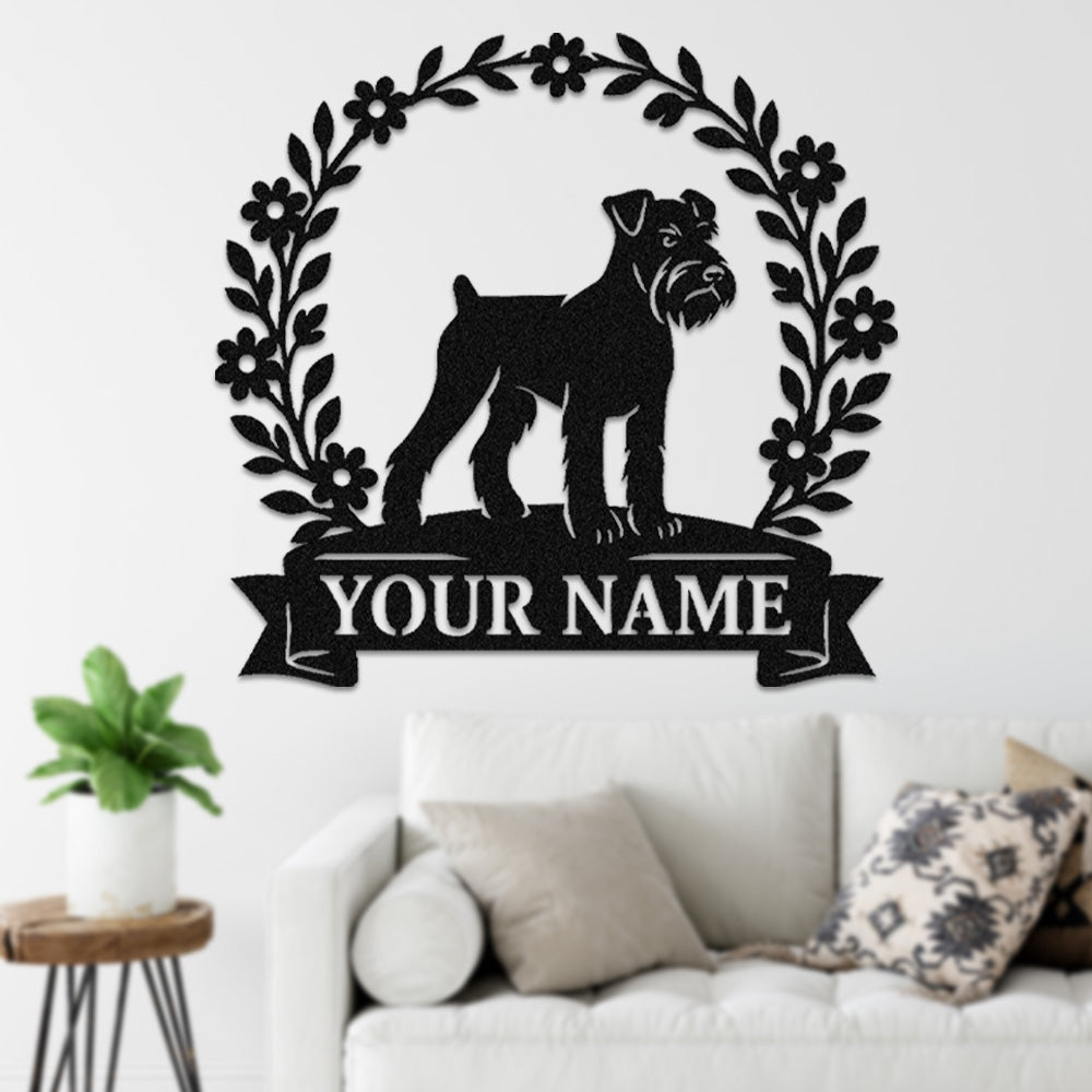 Miniature Schnauzer Wreath Metal Wall Art Dog Lover Personalized Memorial Metal Sign