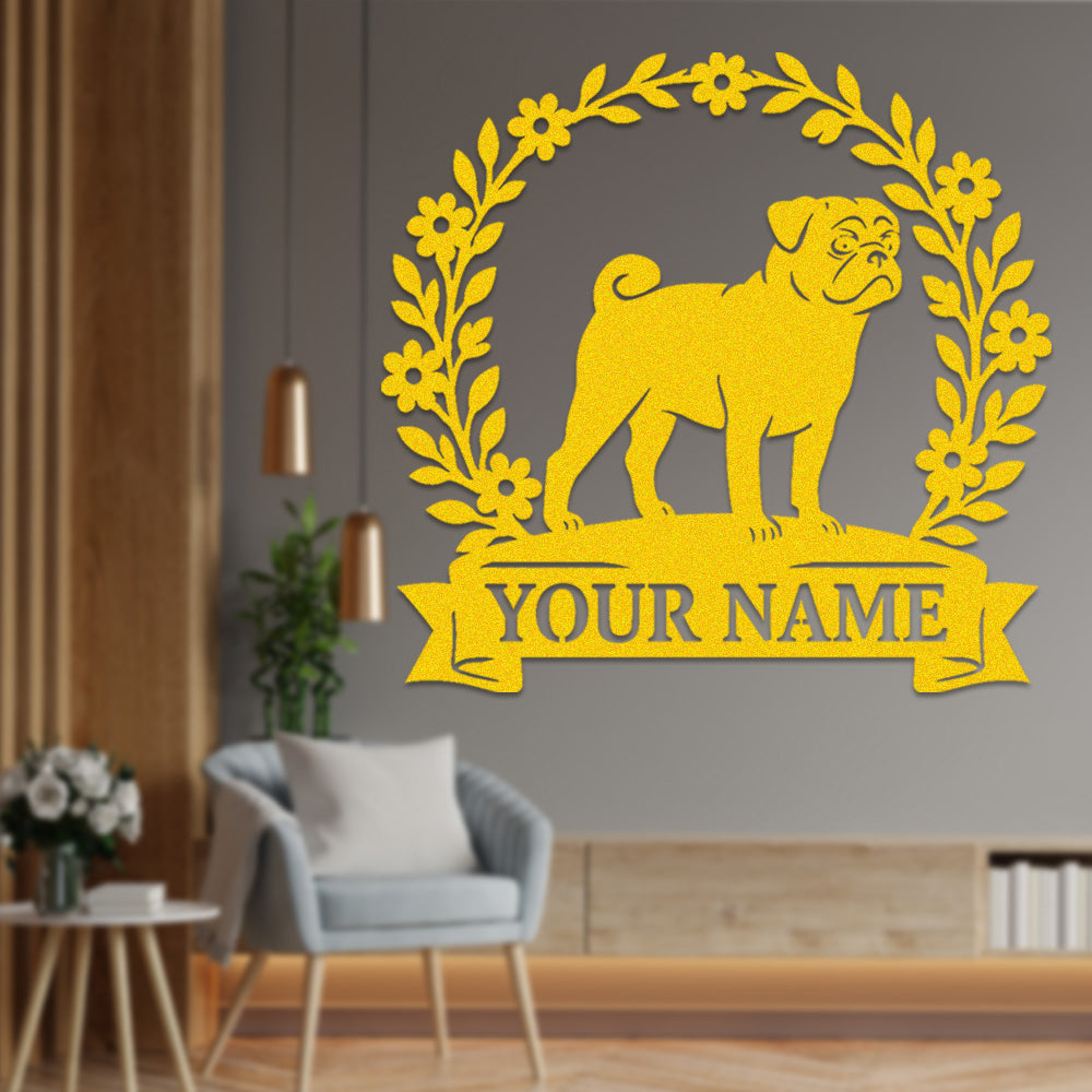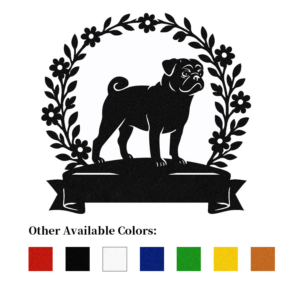 Pug Wreath Metal Wall Art Dog Lover Personalized Memorial Metal Sign