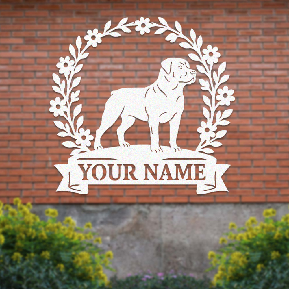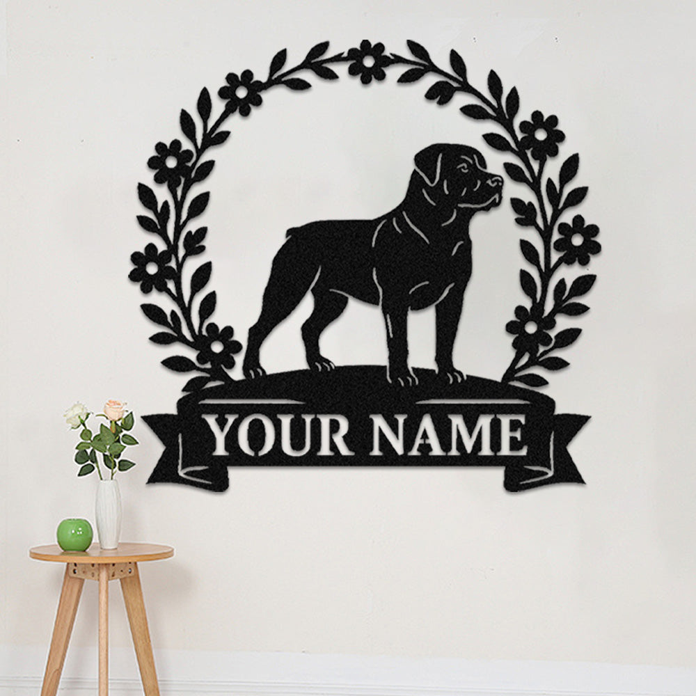 Rottweiler Wreath Metal Wall Art Dog Lover Personalized Memorial Metal Sign