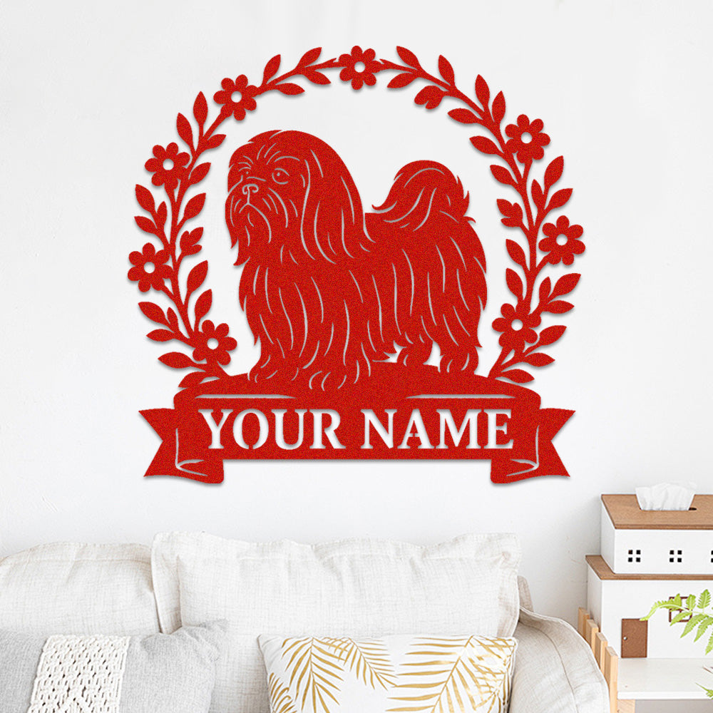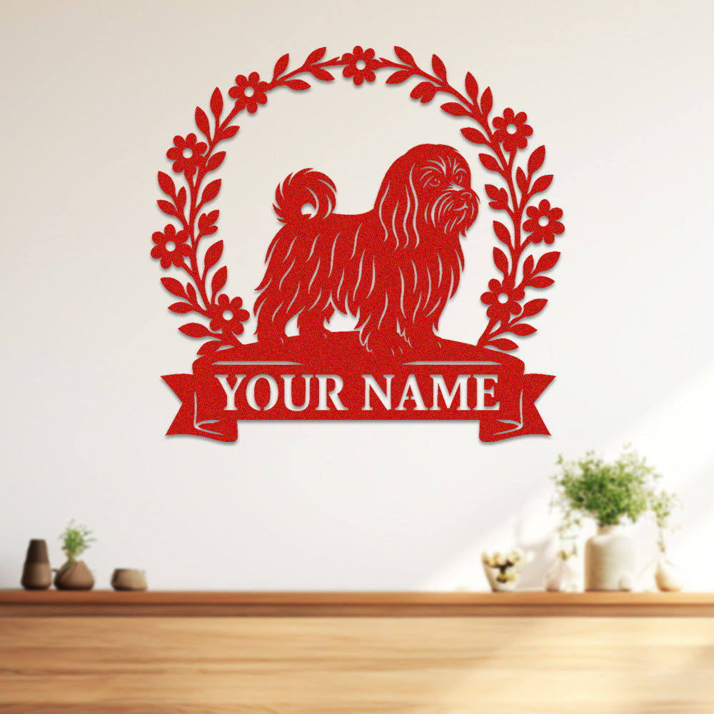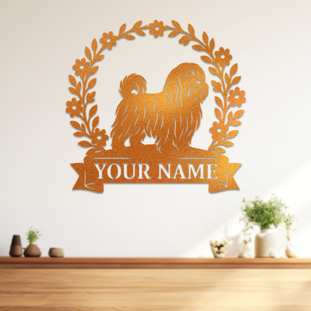 Shih Tzu Wreath Metal Wall Art Dog Lover Personalized Memorial Metal Sign