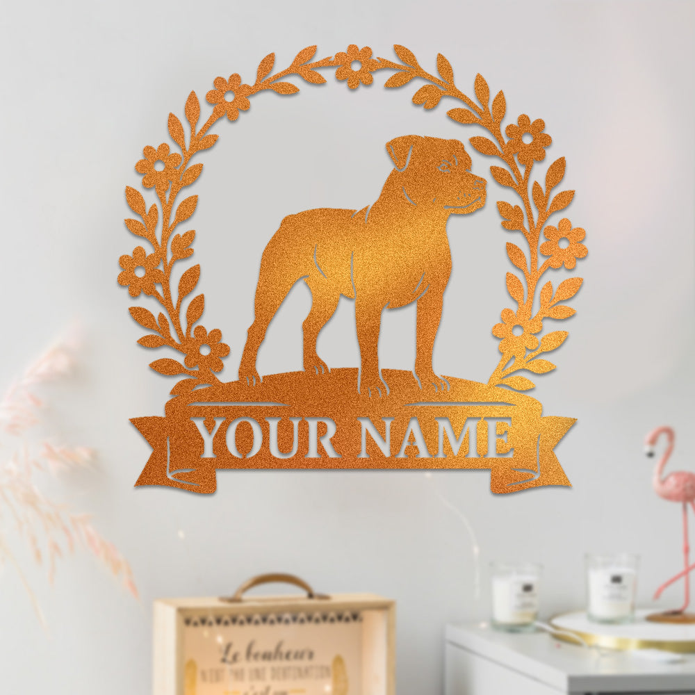 Staffordshire Bull Terrier Wreath Metal Wall Art Dog Lover Personalized Memorial Metal Sign