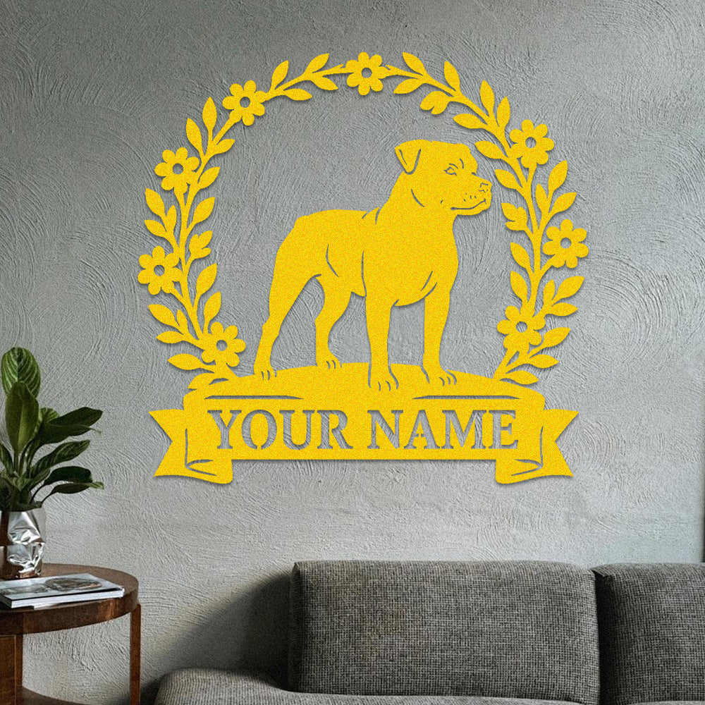American Staffordshire Terrier Wreath Metal Wall Art Dog Lover Personalized Memorial Metal Sign