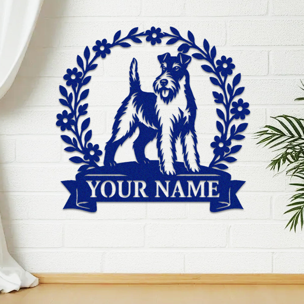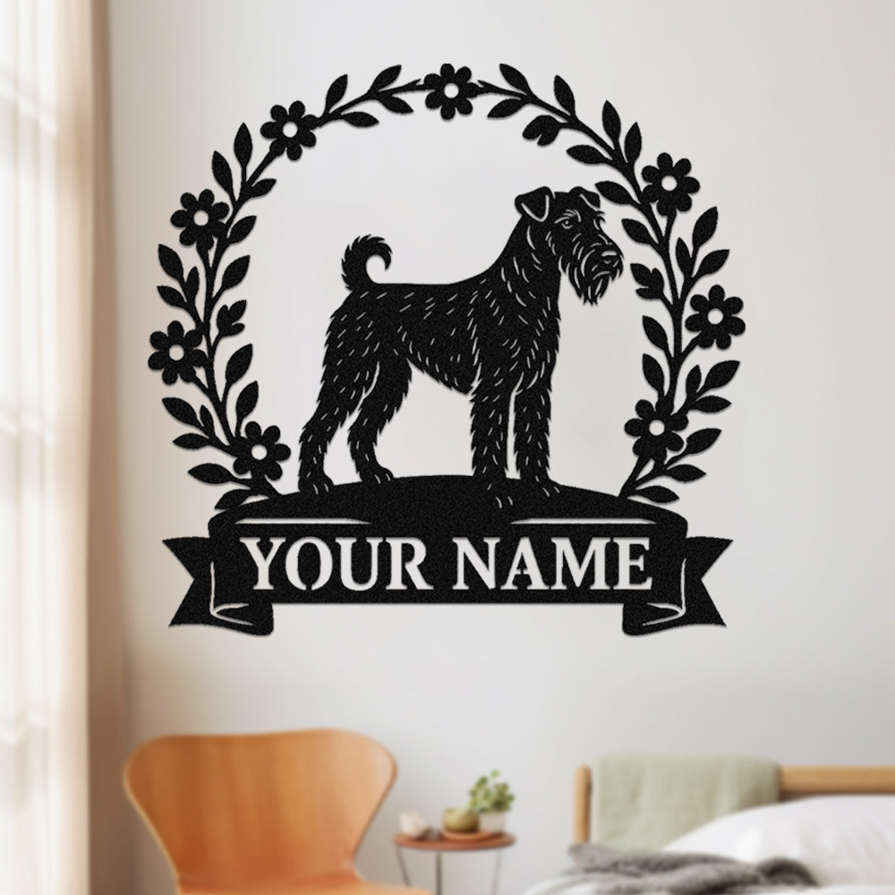 Airedale Terrier Wreath Metal Wall Art Dog Lover Personalized Memorial Metal Sign