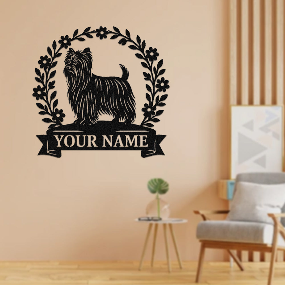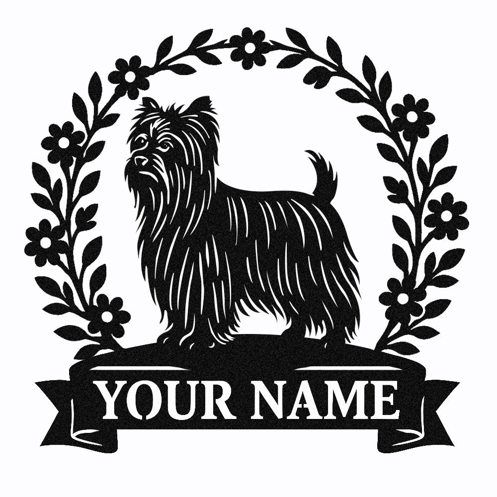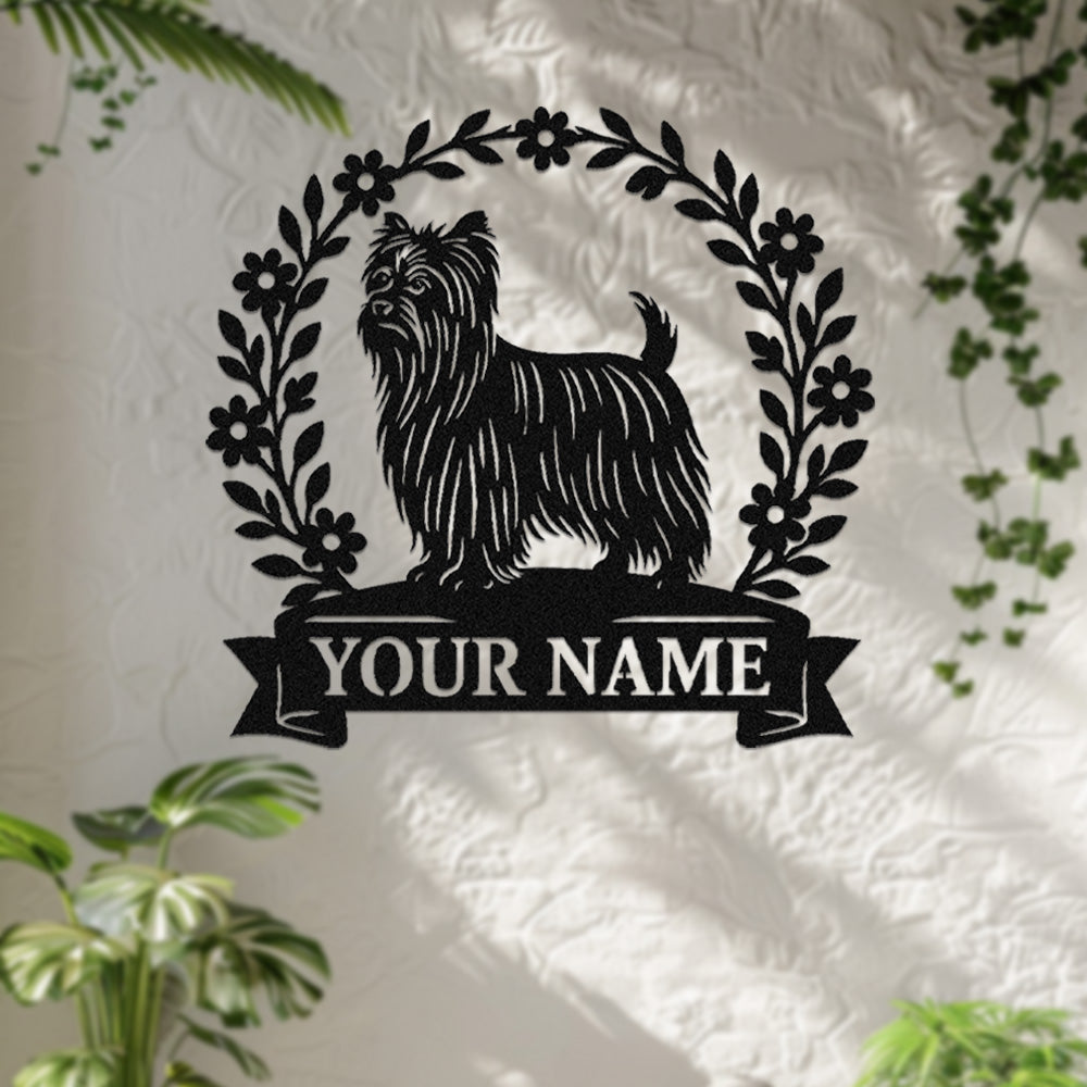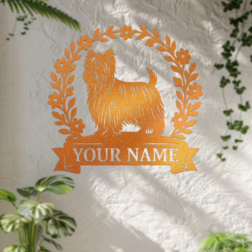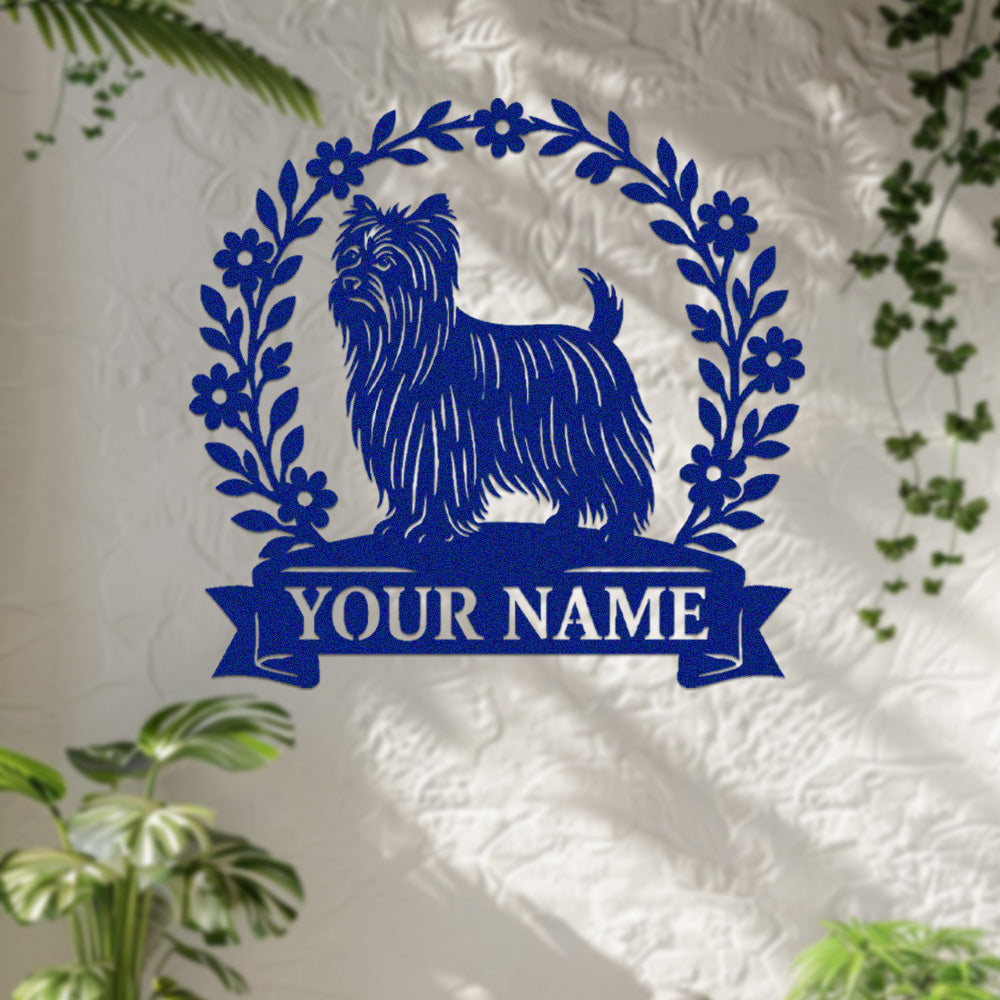 Yorkshire Terrier Wreath Metal Wall Art Dog Lover Personalized Memorial Metal Sign